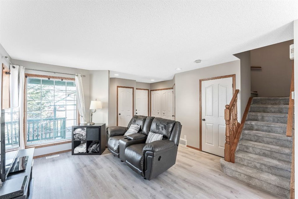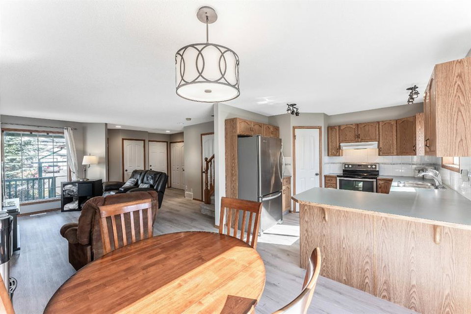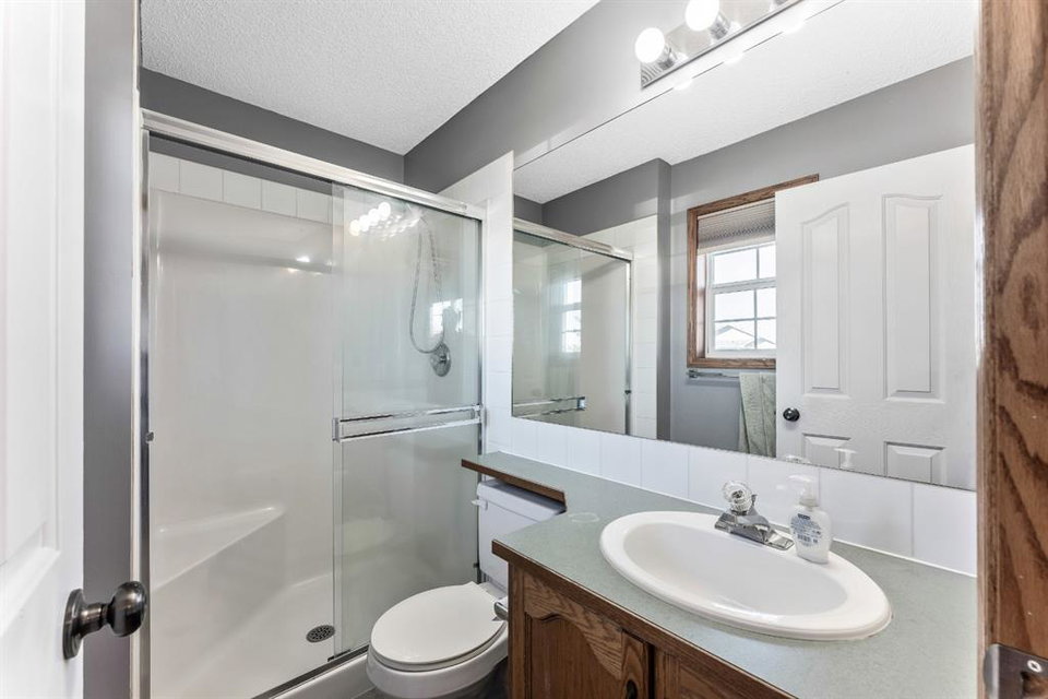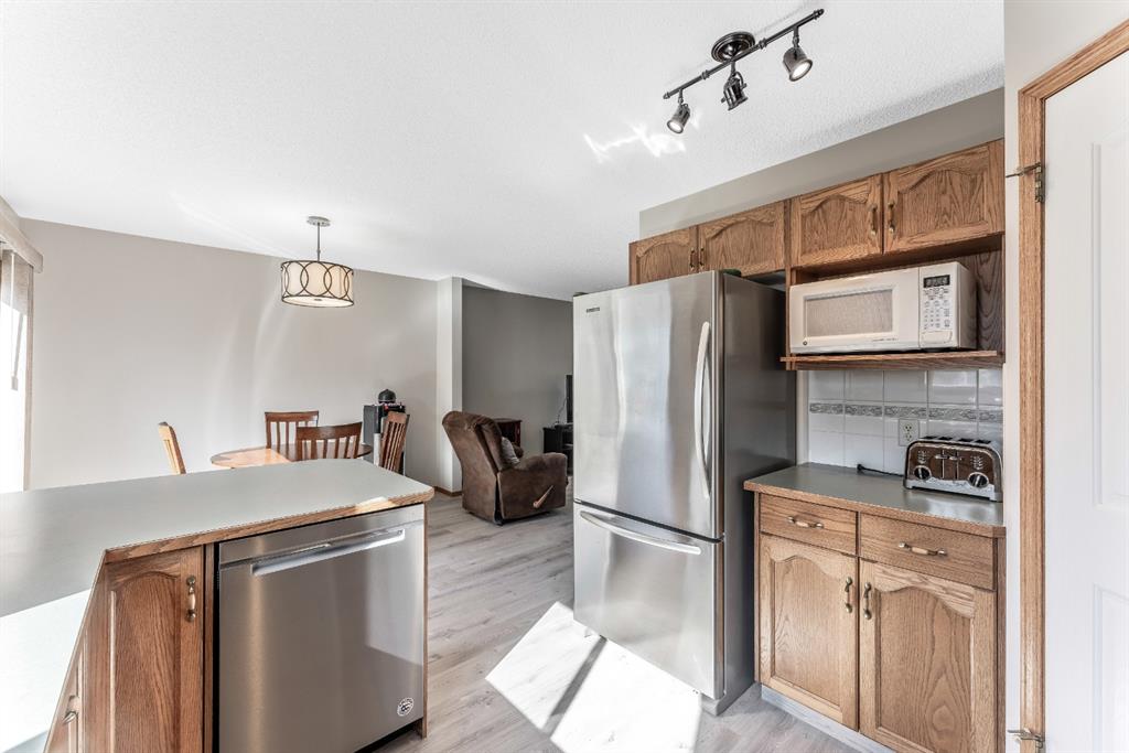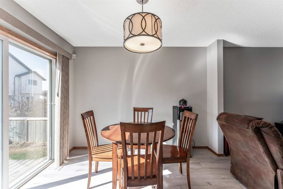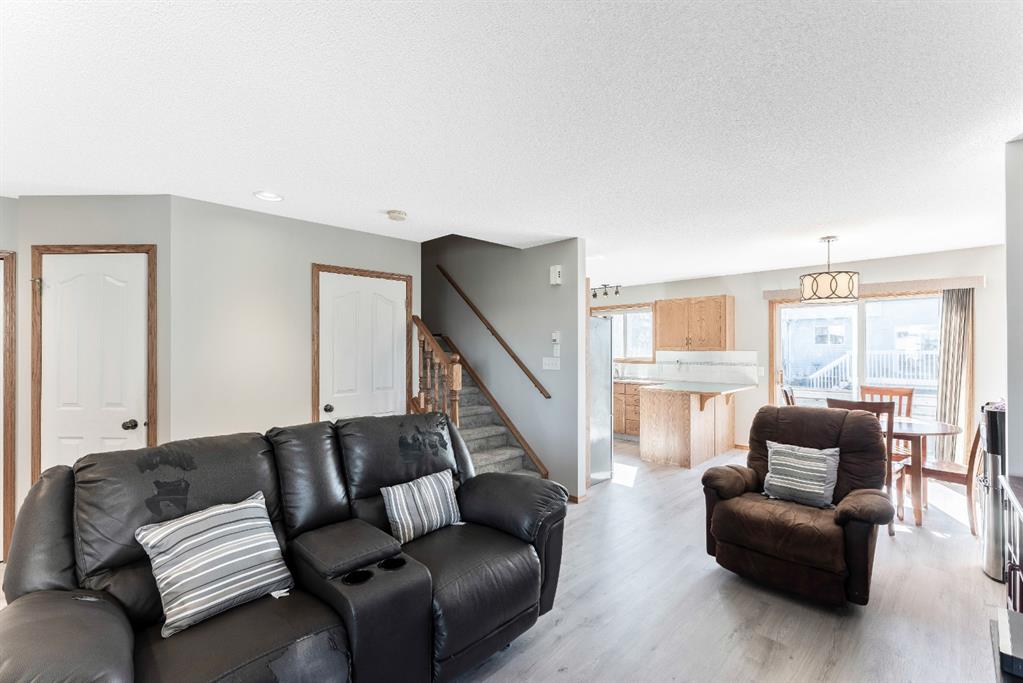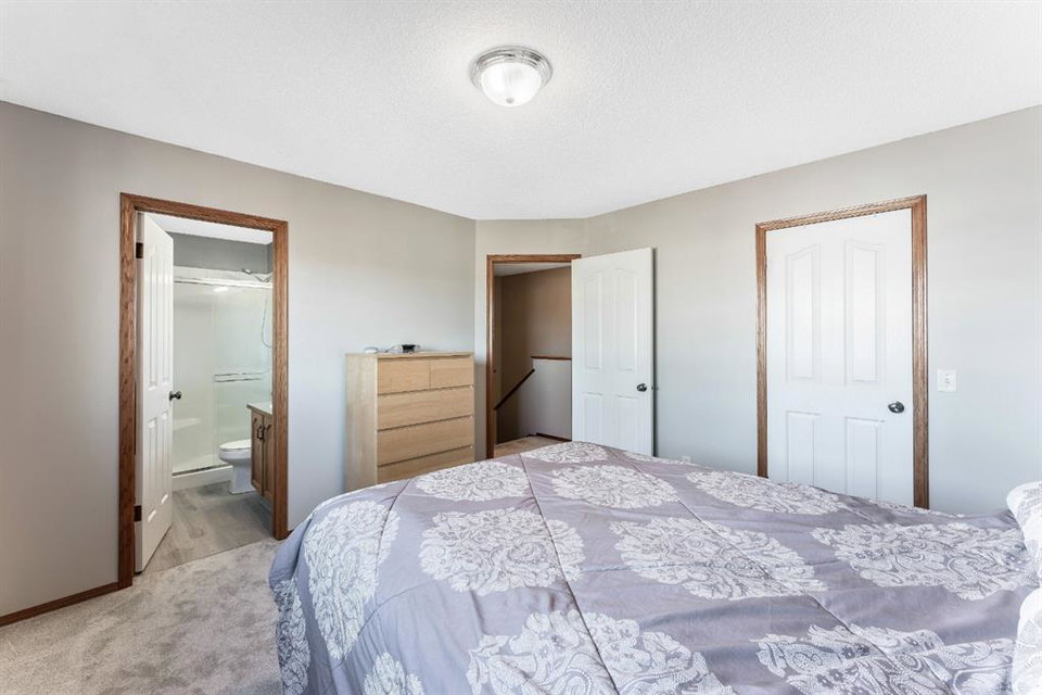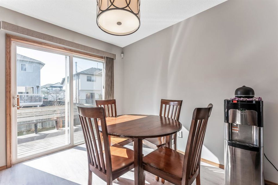 Attention first time buyers or investors! This fully finished two storey home features bright open floor plan, large living room, spacious kitchen with upgraded stainless-steel appliances, island area, breakfast nook and patio door leading to a deck, making this perfect for bbq’s. Upper floor enjoys three generous sized bedrooms with a 3pc ensuite off the primary bedroom and walk-in closet. Basement is unspoiled ready for future development. Note: Brand new luxury vinyl plank flooring on the main floor, brand new carpeting on the upper level, freshly painted through-out and single attached garage. Walking distance to schools, playgrounds, hiking paths and community amenities. Home is “move-in” ready with pride of ownership!