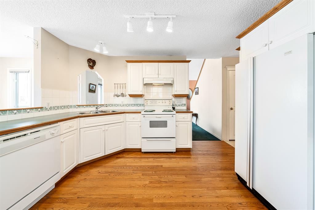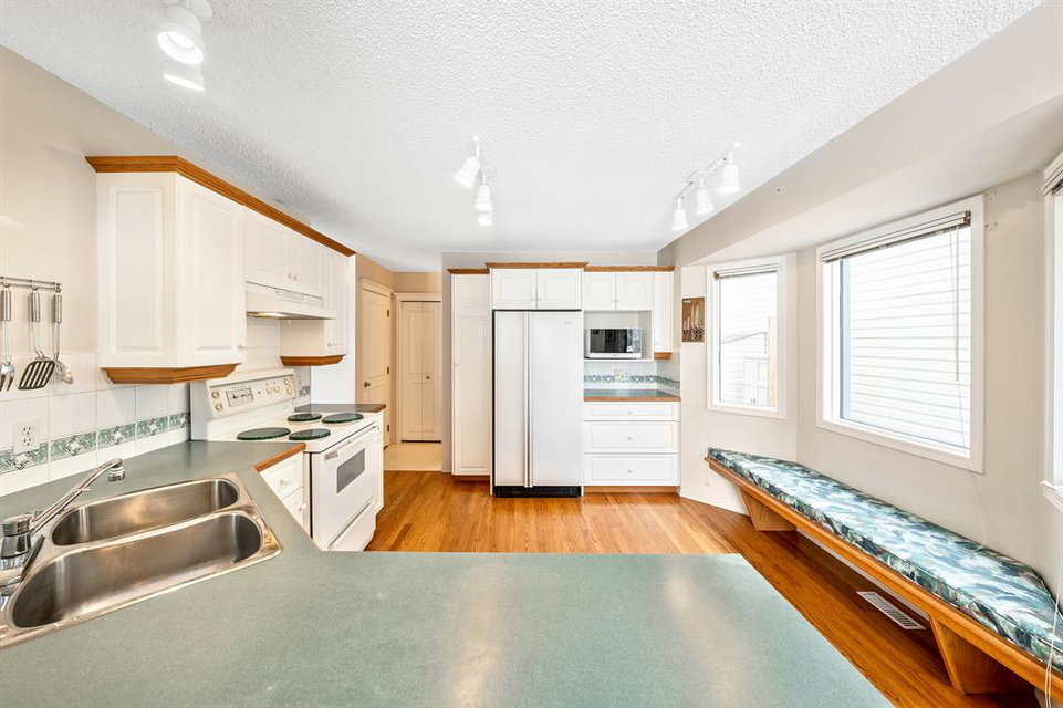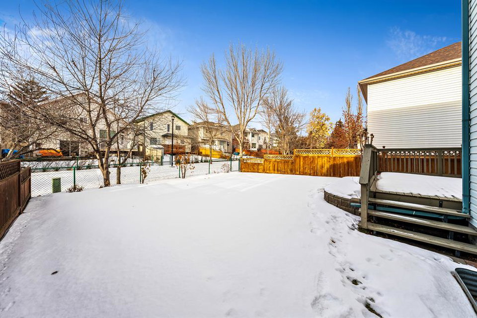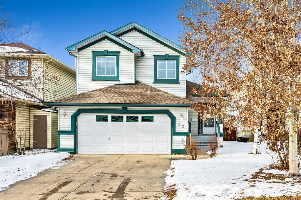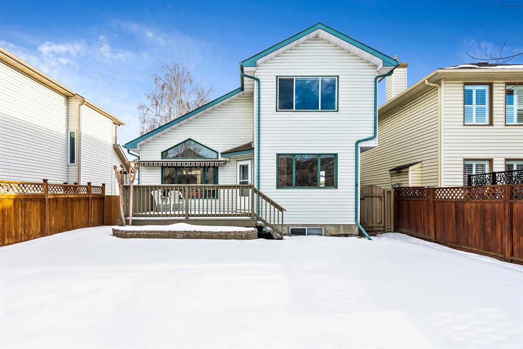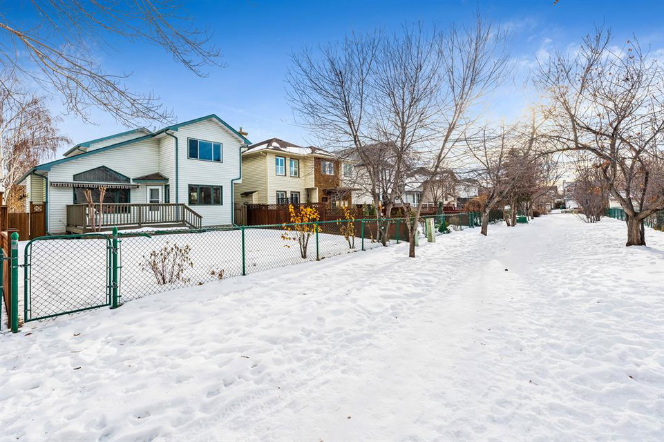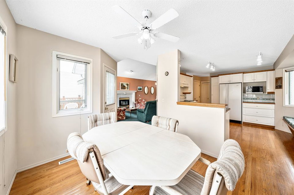 An amazing opportunity to own this well-maintained family home backing onto walkway! Home features open concept floor plan, vaulted ceilings, gleaming hardwood floors & huge living room that enjoys a gas burning fireplace. Spacious kitchen boasts white cabinets, extra counterspace, dining area and breakfast nook. Upper floor enjoys three generous sized bedrooms, 4pc bath and full ensuite off the primary bedroom with a walk-in closet. Basement is fully finished, 4th bedroom, laundry area, rec. room, 4pc bath and storage areas. West backyard is fully fenced, landscaped and perfect for family living. Only minutes away from parks, tennis courts, Remington YMCA, Bow River pathways, shopping, trendy restaurants and easy access to Deerfoot Trail. Property shows extremely well and available for quick possession!
