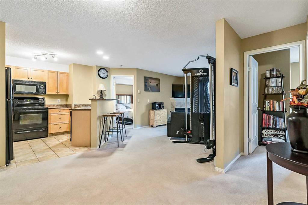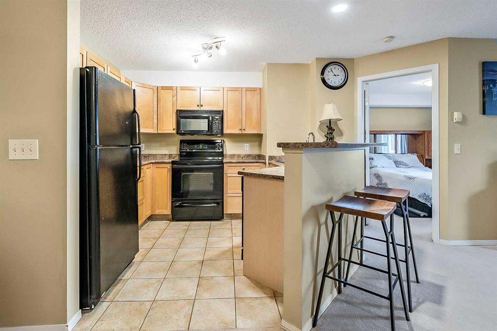 Discover comfort and convenience in this well-designed top-floor condo, nestled just steps away from the picturesque Fish Creek Park. This functional two-bedroom, two-bathroom unit offers a tranquil living experience in a quiet, clean three-level building. The thoughtful layout ensures privacy, with bedrooms and bathrooms situated on opposite sides of the unit. The open-concept kitchen boasts maple cabinets and sleek black appliances, creating a modern and inviting culinary space. Natural light floods the living room during the day, while a cozy corner fireplace provides warmth and ambiance for those chilly winter evenings. Step out onto the spacious west-facing balcony, where you can enjoy stunning views of the expansive green space below. The balcony also features gas hookups for barbecue enthusiasts. The primary bedroom offers a walk-through closet and a private three-piece ensuite bathroom, adding a touch of luxury to your daily routine. Storage is abundant, with an in-suite storage area and a convenient 50-square-foot private storage room located near your titled underground parking stall. In-suite laundry facilities add to the property’s practicality, while reasonable condo fees cover electricity, heat, water and sewer, enhancing the overall value. This condo’s prime location provides easy access to nearby amenities, including the C-Train Station, Millrise Station for grocery shopping, and the beautiful Fish Creek Provincial Park. Experience the perfect blend of urban convenience and natural beauty in this exceptional condo. Don’t miss the opportunity to make this your new home sweet home.