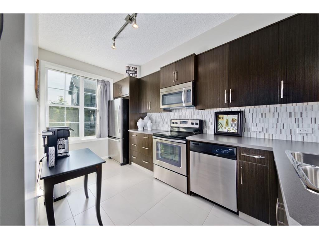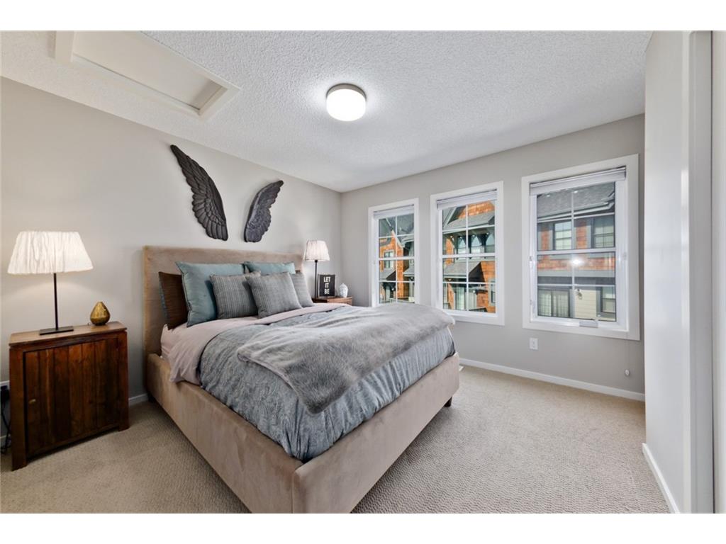 Stunning townhome located in the exclusive area of Castle Keep in the prestigious community of Aspen Woods. This functional open bright floor plan offers 9 foot ceiling, tile/carpet flooring, attached tandem garage with extra storage area. The kitchen features stainless steel appliances, pantry, glass mosaic backsplash with a raised eating bar. Entertaining size dining area, spacious living room with patio doors leading to a west facing court yard exposure, and a 2 piece powder room completes the main floor. The upper level features two king sized bedrooms, both of which are complemented by their own luxurious ensuite and ample storage space. Conveniently located laundry and linen closet conclude the upper level. Close to some of Calgary’s finest schools, the west LRT, great dining, entertaining, shopping and that Aspen Landing has to offer. Great price and a quick possession available!