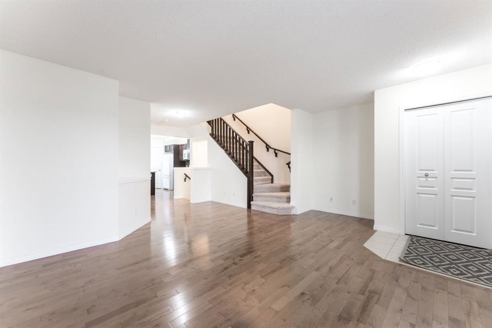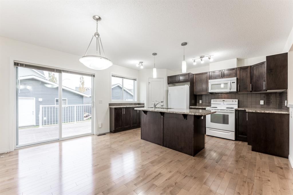Welcome home to this absolutely immaculately maintained home! Immediately upon entering you will discover a beautiful “designer” feel & stunning hardwood that flows seamlessly from the bright & large great room to the wonderful open floor plan featuring a gourmet kitchen & generous dining area, as well as a convenient & stylish half bath. Exquisite granite counter tops with centre island, glass tiled back splash, undermount sink, corner pantry & sleek appliances that compliment the neutral clean modern palette. Upper level offers two large master suites, each with ensuites and large walk-in closets. Large flex/bonus room is perfect for office, den or a T.V./sitting room. The basement is unfinished and awaits your personal touch. The sunny south yard with entertaining size deck leads you to the massive (24×22) garage. Fantastic location – facing a large open field, walking distance to the lake, close to hospital and shopping. Enjoy lake living and all that Auburn Bay has to offer!