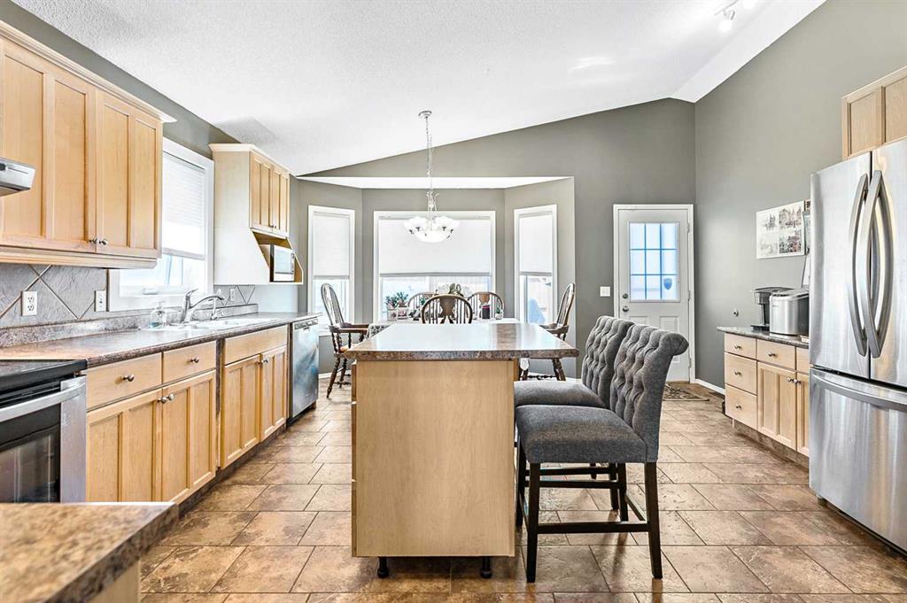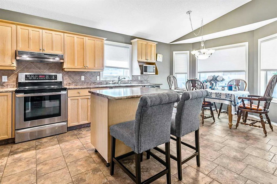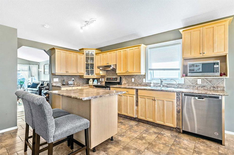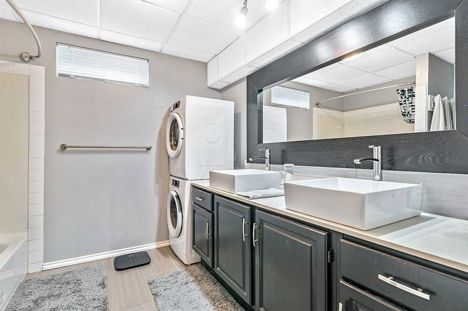 Welcome to this stunning bungalow in the desirable Macewan neighborhood, offering an impressive 1,322 square feet of thoughtfully designed living space. The open concept floor plan is complemented by gleaming hardwood floors and vaulted ceilings, creating an atmosphere of spaciousness and elegance throughout. The heart of this home features a large living room that flows seamlessly into a huge kitchen showcasing abundant cabinet space, a convenient island, walk-in pantry, and premium stainless steel appliances. Two generous bedrooms on the main level provide comfortable living space, while both bathrooms have been beautifully renovated. The convenience of main floor laundry adds to the practical design of this level. Downstairs, the fully finished basement expands your living options with two additional bedrooms, a spacious family room anchored by a cozy gas fireplace, and a lovely updated kitchenette. A second laundry area and ample storage space complete this versatile lower level. Step outside to enjoy a fully landscaped private yard featuring an oversized barbecue grilling station – perfect for outdoor entertaining. The home comes with a double attached garage and displays obvious pride of ownership throughout. This sophisticated Macewan bungalow enjoys an enviable location on a quiet street, just one block from Echo Park’s scenic walking trails, two blocks from Macewan Glen Park with its sports fields, tennis courts, and playground, and a short distance to the expansive Nose Hill Park – offering the perfect blend of tranquility and convenience for your active lifestyle.