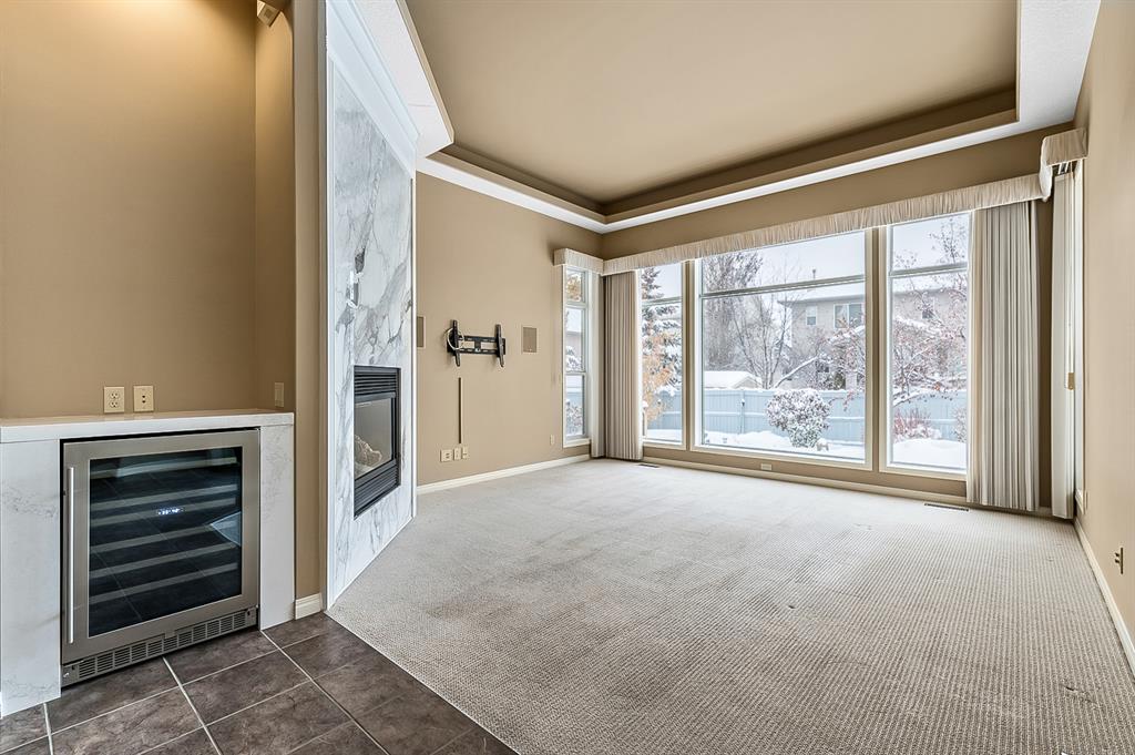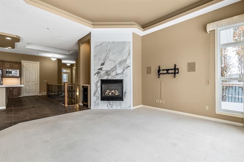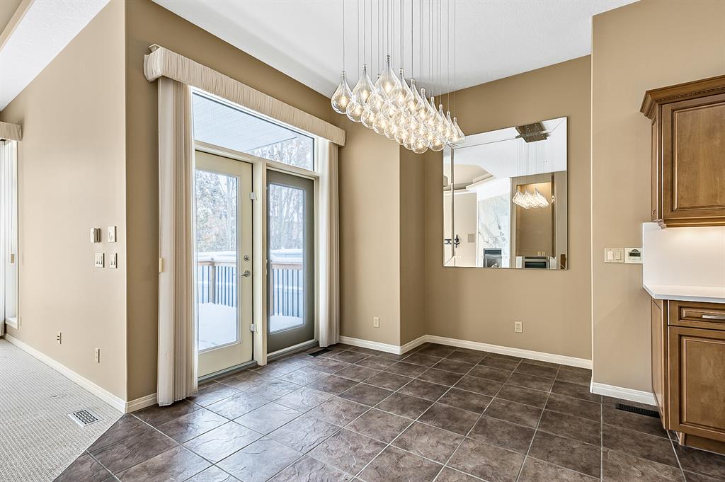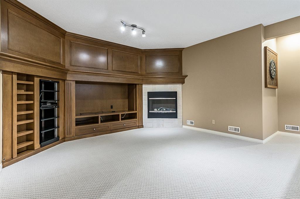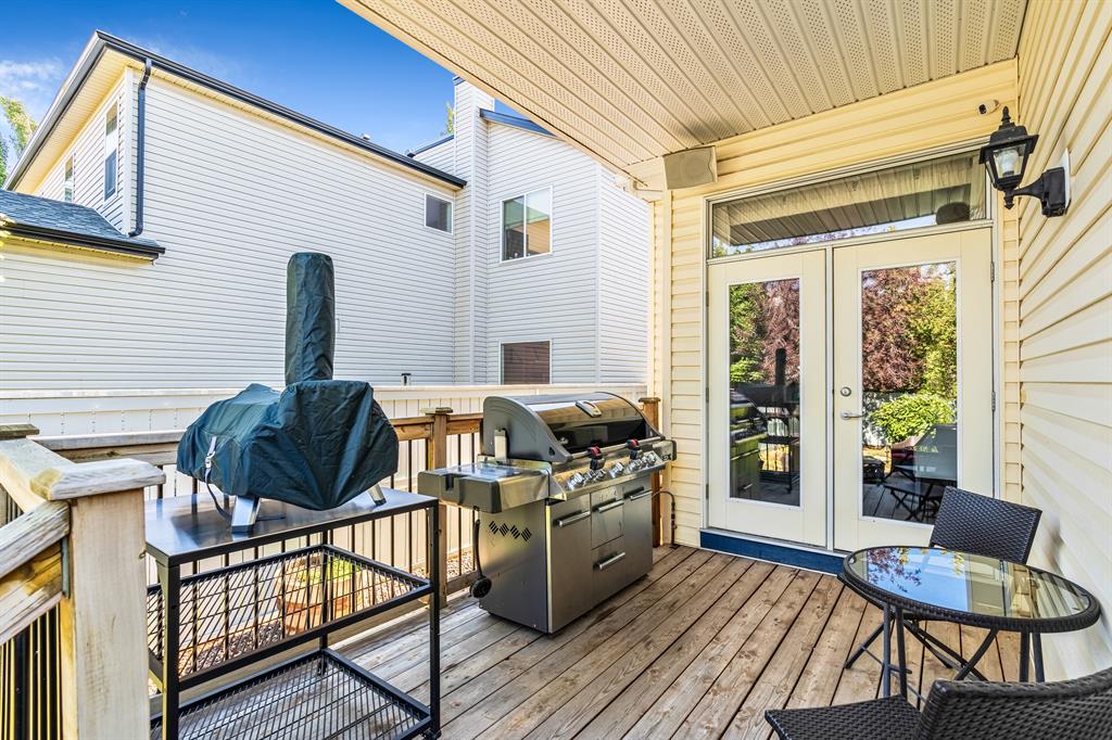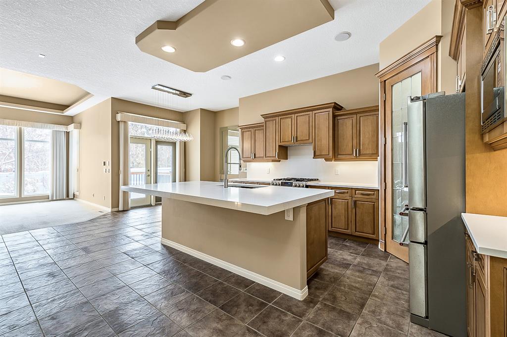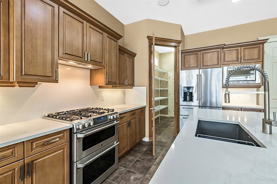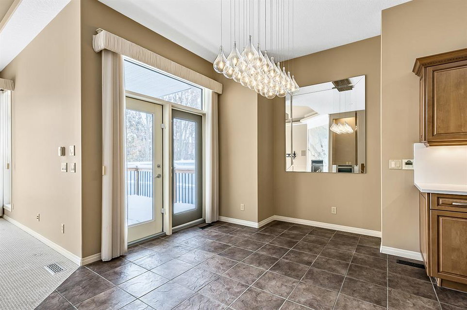 Stunning Albi built Estate Bungalow in a quiet cul-de-sac! This home shows pride of ownership with upgrades. The tile entry & hall leads to the gourmet kitchen featuring an open floor plan, 8ft stone island, maple glazed mocha cabinets, granite under mount sink, gas stove – upgraded appliances, walk-thru pantry to mudroom/laundry. A big skylight allows for a ton of natural light, newly faced Vermont gas fireplace. Huge primary bedroom on main, spa ensuite, dual sinks, granite counter tops, built-in speakers, ceiling fan, jetted tub with separate shower, generous walk-in closet, second door to deck off master. A large office/den at the front of the home, ideal for working at home completes this level. Lower level developed with Moka glaze built in media centre, games room area large enough for pool table and bar, two additional good size bedrooms, 4pc bath, 9 ft ceilings, cedar lined closet, hobby room/workshop and an exercise room with rubber floor. This home has central air conditioning and a new roof in 2017. The mature landscaped yard with Rainbird irrigation is completely fenced, a water feature and beautiful perennials. There is also a putting green for the golfer in the family. Excellent location and only minutes to the pond & pathways. This home shows great!