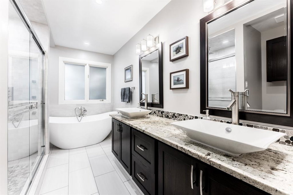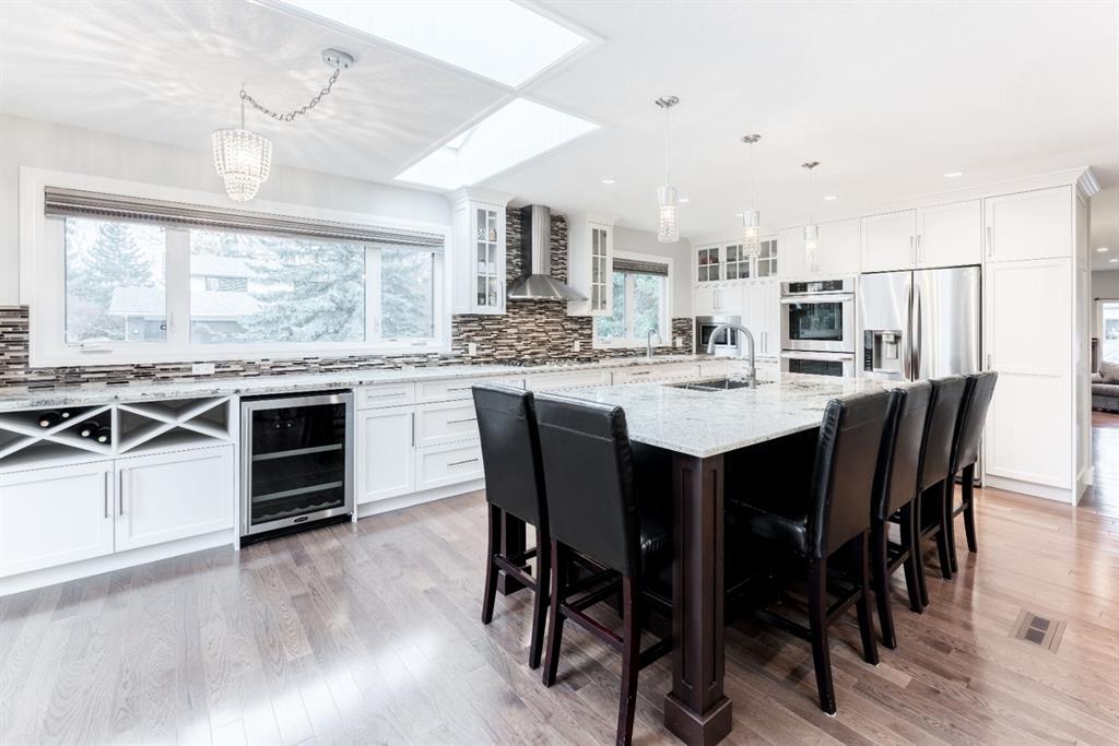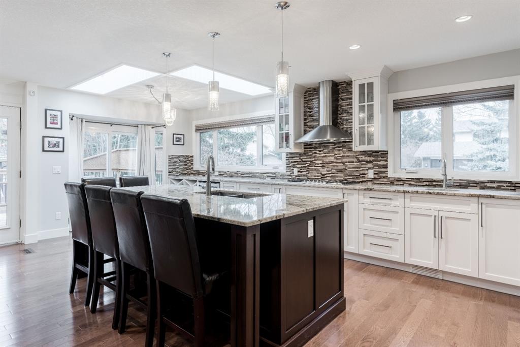 Beautifully renovated bungalow on quiet cul-du-sac in the heart of Canyon Meadows Estates!!! This extensively updated bungalow is over 2000sqft and features a total of 5 bedrooms and 4 fully renovated bathrooms. The massive gourmet granite kitchen features custom cabinetry that is accompanied by s/s appliances, double ovens, gas cook top, beverage centre, custom wine rack, prep sink, under mount lighting, and the list goes on! A formal dining area, living room w/ stone faced fireplace (3 fireplaces in total), two generous bedrooms, the master features a massive closet with laundry (easily converted back into the third bed up), and the 5pce bath/spa complete the main level. The fully developed lower level has two additional bedrooms with walk-in closets (one with its own ensuite), two large entertaining areas with a full amenities wet bar, a second staircase to make the entrance from the garage quiet and private. Additional updating includes: high efficiency furnaces, two hot water tanks, asphalt shingles, three new skylights, upgraded insulation, garage door, gas insert fireplace, stamped concrete, central A/C, newer electrical panel (plus 220 in garage), windows, two sets of sliding doors, deck, stamped concrete, wired for hot tub, fence, lighting, base & casings, doors, carpet, hardwood, tile, ceilings, and so much more. Excellent location in the community, walking distance to all levels of schools and the new fitness centre. *** This house shows pride of ownership, it’s a must see if you want a large renovated bungalow in Canyon Meadows Estates!