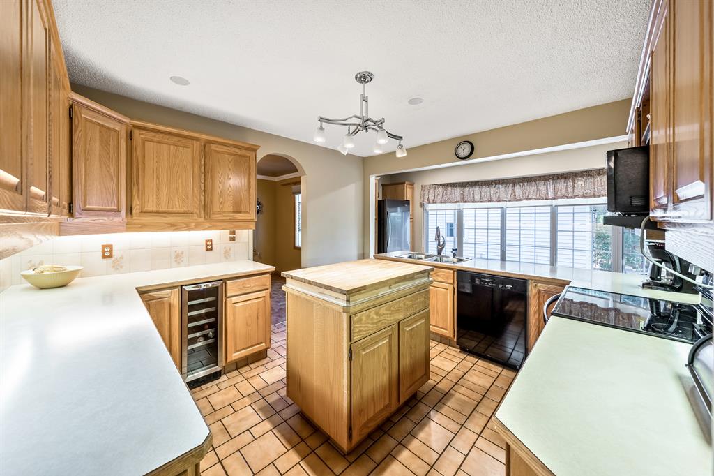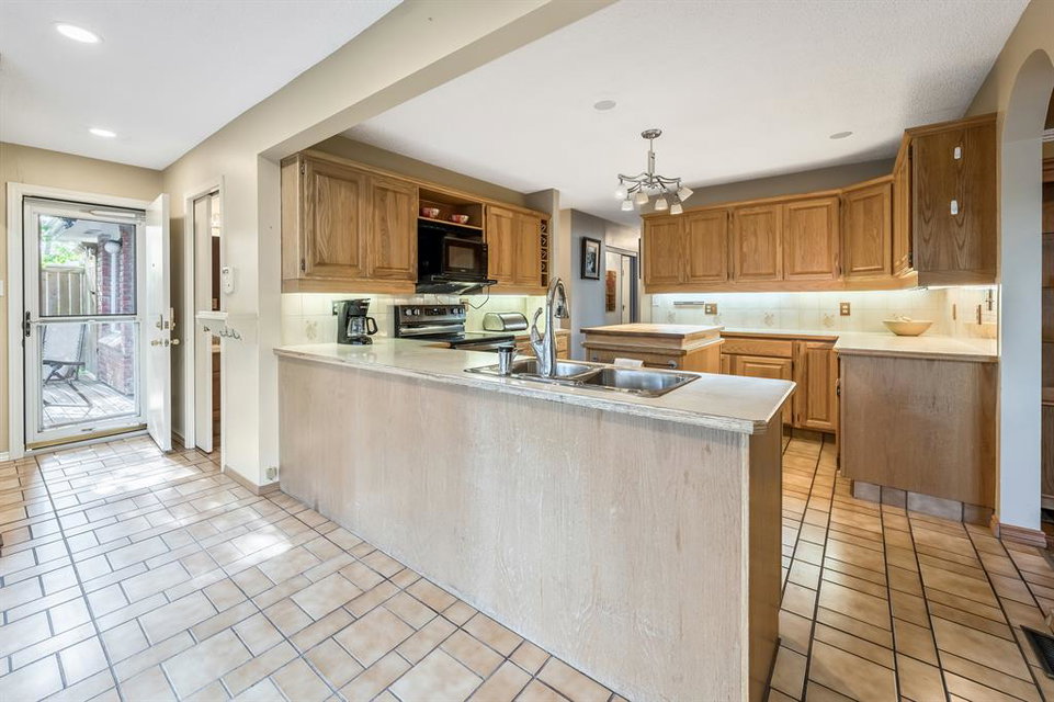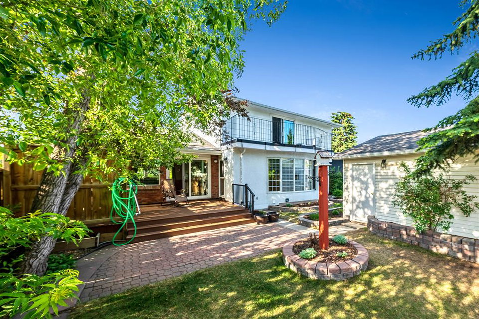 This beautiful 2144sqft two storey located in the heart of Canyon Meadows! Main floor features huge living room with oversized windows, open concept kitchen enjoys solid oak cabinets, black appliances, island area with 2nd cooking source, extra countertop space and breakfast nook. A large formal dining room is great for entertaining or everyday family gatherings, cozy family room includes gas burning fireplace, den, laundry area and 2pc bathroom complete this level. The upper floor has four generous sized bedrooms with a “king sized” primary bedroom that boasts 3pc ensuite and patio doors to your own balcony. The basement is fully developed offering a rec/games room, hobby room and mechanical/utility room. Note: House asphalt shingles replaced 2021, vinyl windows, double oversized garage (22’x24’) with paved lane access. Private south facing backyard, mature trees, fully fenced great for summer BBQ’s. Walking distance to all levels of schools, public transit, LRT, playgrounds, outdoor hockey rinks, Canyon Meadows city owned indoor pool and fitness center, shopping, and Fish Creek Park. What a wonderful opportunity to own this home, at this price!