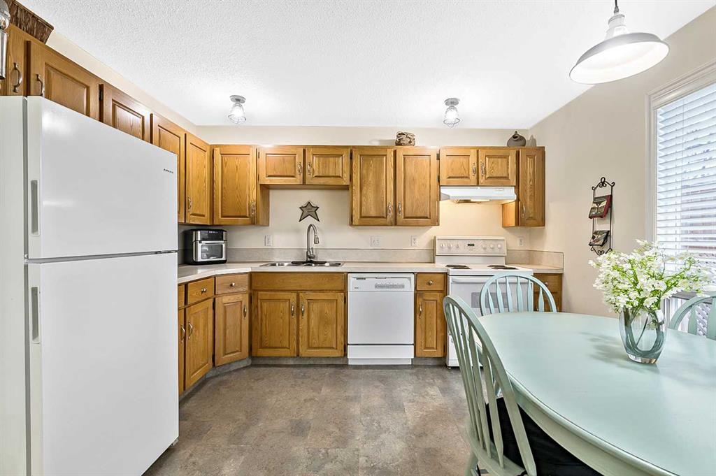 Welcome to this 1404sqft two storey home nestled in the peaceful community of Woodbine. The main floor invites you with beautiful, laminated flooring throughout, creating a warm and inviting atmosphere. Relax in the spacious living room centered around a cozy wood-burning fireplace, perfect for those chilly Calgary evenings. Natural light floods the interior through large windows, highlighting the open and airy layout. The kitchen offers ample space for culinary creativity with a convenient dining area for family meals. A powder room and laundry facilities complete the main level. Upstairs, you’ll find three generously sized bedrooms, including an oversized primary bedroom with a private 4pc ensuite. The main bathroom on this level provides additional convenience for family and guests. The fully finished basement expands your living options with a comfortable family room, dedicated office space, and practical storage solutions. Step outside to enjoy the fully fenced backyard with sunny southern exposure and a convenient parking pad. This outstanding property places you within easy reach of everything your family needs. Enjoy nearby parks, including Fish Creek Provincial Park just minutes away. Schools, shopping centers including Safeway, and public transit stops are all conveniently accessible. A short drive connects you to Costco and additional amenities, creating the perfect balance of residential tranquility and urban convenience!