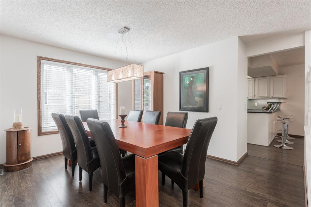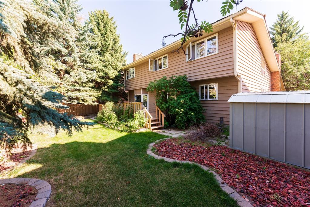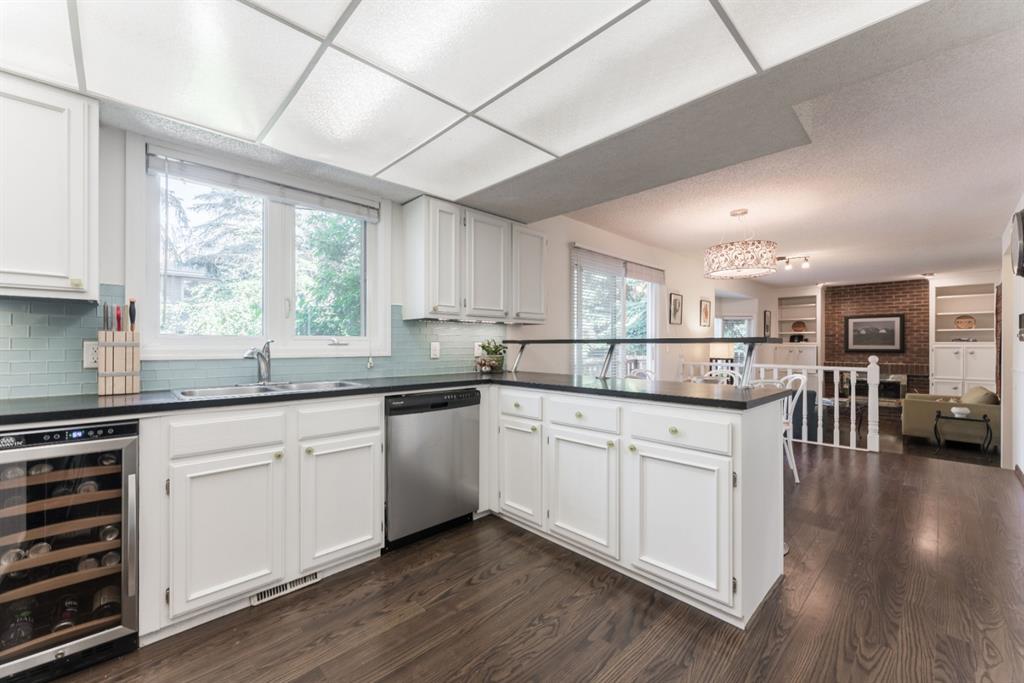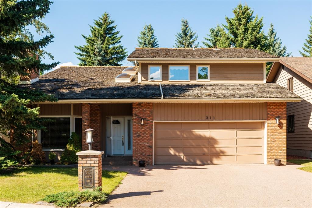 Super family home in a super family estate neighbourhood on a quiet cul-de-sac. This two storey home features open vaulted ceiling, bright floorplan, gleaming Torly engineered wood floors, grand foyer, inviting living room with gas insert fireplace and entertaining sized dining room. Updated kitchen enjoys white cabinetry, modern glass backsplash, stainless steel appliances plus a beverage fridge, oversized breakfast nook with patio doors leading to a very large deck perfect for family barbecuing. Cozy family room with a 2nd fireplace surrounded by custom cabinets and built-ins. Main floor laundry, 2pc powder room. Upper level boasts four generous sized bedrooms plus airy bright bonus/loft room. King sized master bedroom has a large walk-in closet, 4 pc ensuite that includes separate shower & tub. Lower level is fully finished with rec. room, 3pc bath, storage area & utility room. Beautiful mature trees on a flat lot. Oversized insulated/drywalled garage that accommodate two trucks if needed. Home is walking distance to schools, Canyon Meadows indoor pool/fitness center, tennis courts, LRT, public transit, shopping, new Tsuu T’ina Costco and Fish Creek Park. Home is ready for quick possession if needed and show extremely well!!