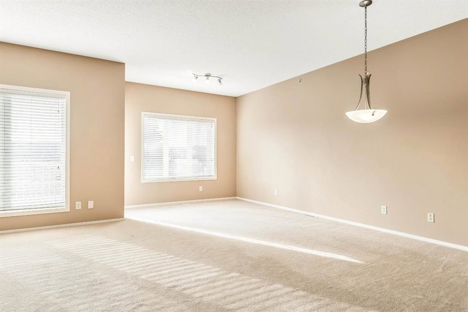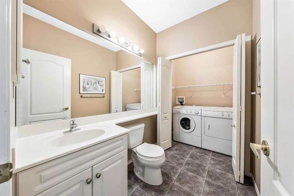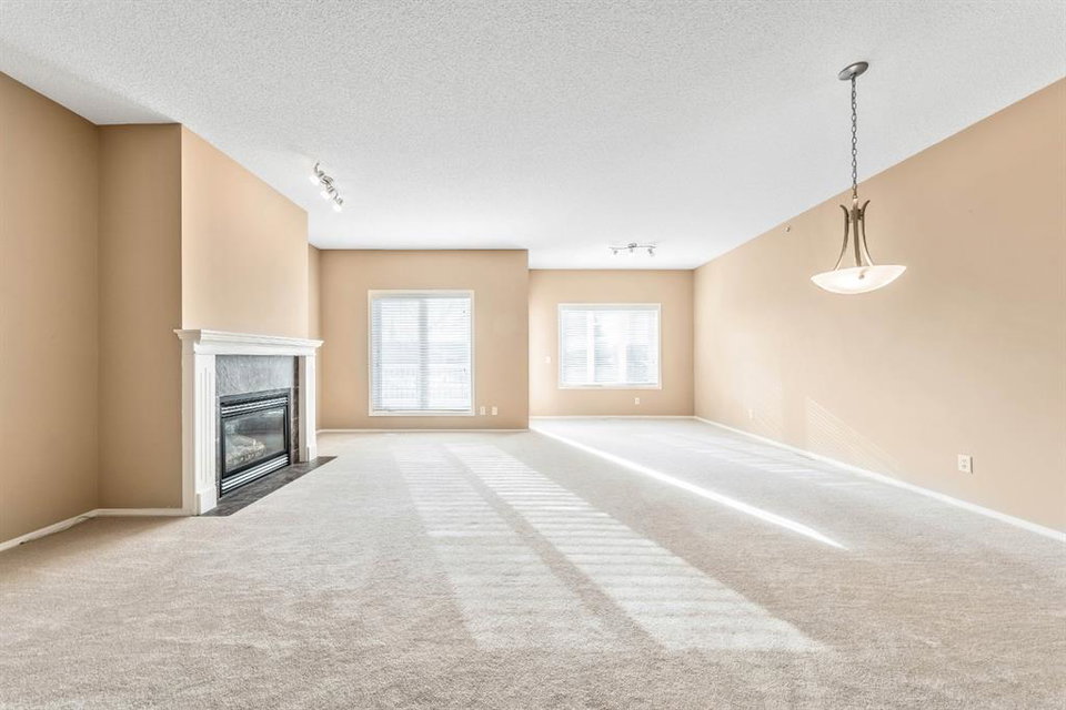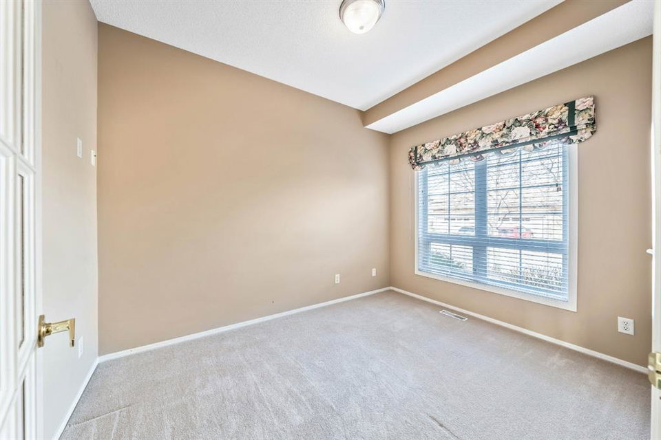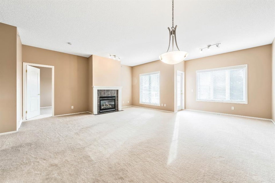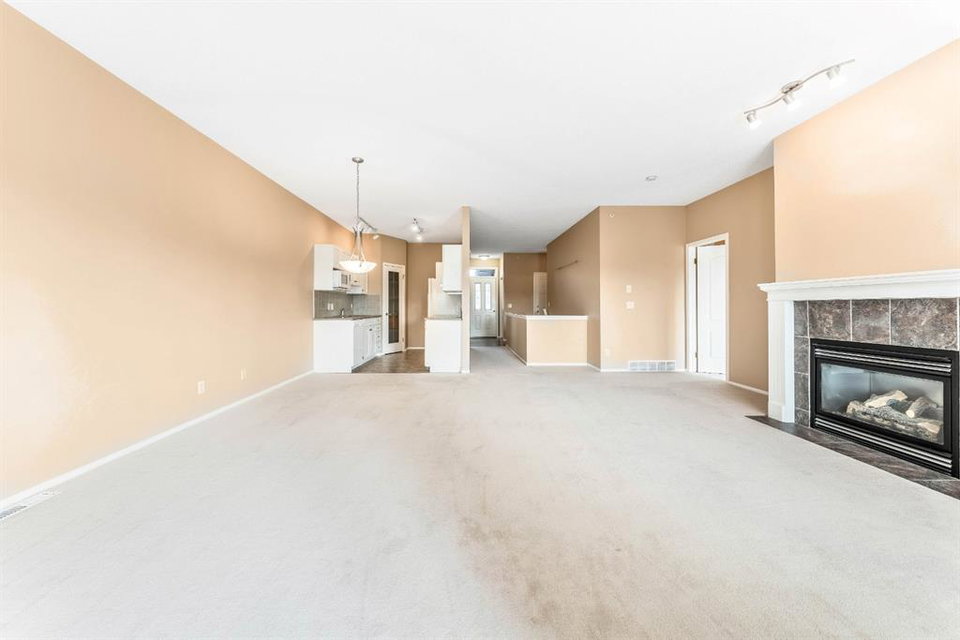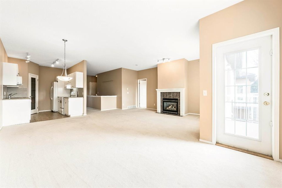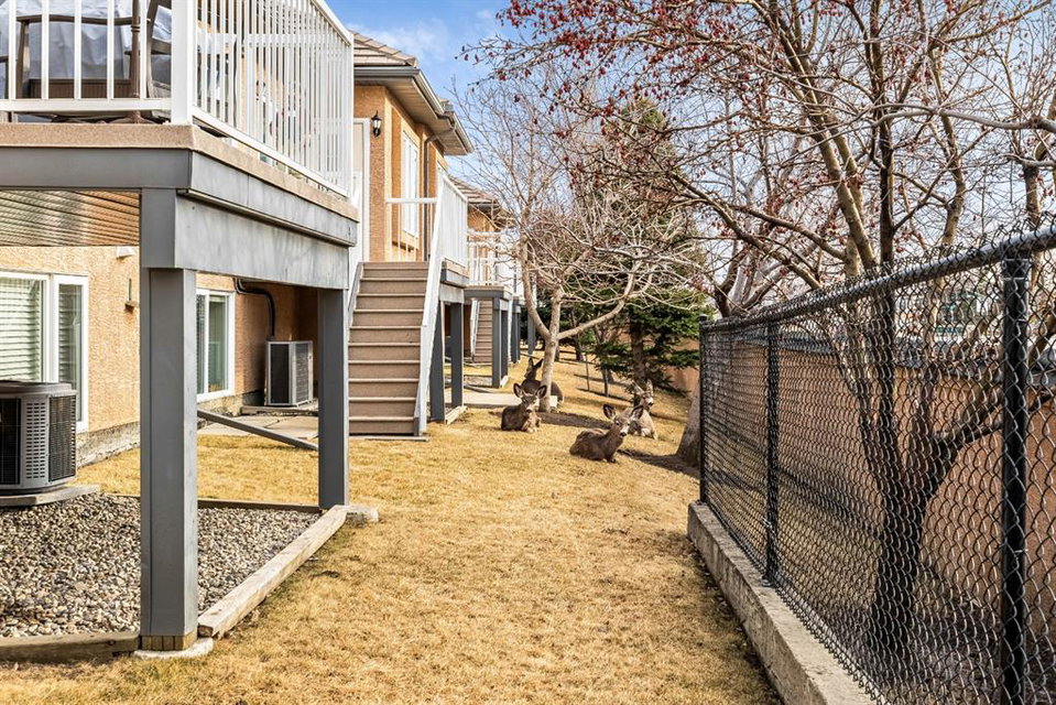 Adult Villa living at its finest perfect for empty-nesters or someone looking for that ideal maintenance free adult living, retirement home – lock and go! Very spacious bright open floor plan with large living room features a wall gas fireplace, combined dining room, plus cozy readings leading to the west facing deck. Functional white gallery kitchen with newer appliances and walk-in pantry/closet complete with organizers. There is a king size master bedroom that has a four piece ensuite with jetted tub plus a separate shower, large walk-in closet with organizers. Conveniently located main floor laundry and two piece powder room, plus an office den complete the main floor. Double attached garage is fully insulated, dry-walled and painted. The lower level awaits your personal touch for development and has 9 foot ceilings, some framing insulation, roughed-in (plumbing, fireplace, vacuum), two oversized daylight windows ideal for a bright basement. Extras include interior sprinkler system, pre-wired for alarm system, ample visitor parking. The beautiful green spaces and pathway in the complex winds it’s way to the community barn with year round events and activities, also numerous shops and restaurants in the Shawnessy Shopping District. Fantastic wonderful complex to call home!