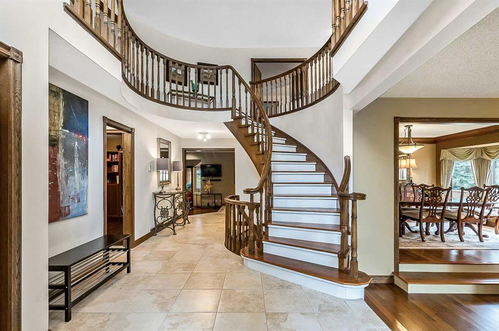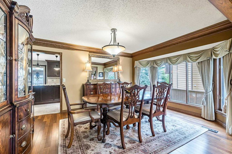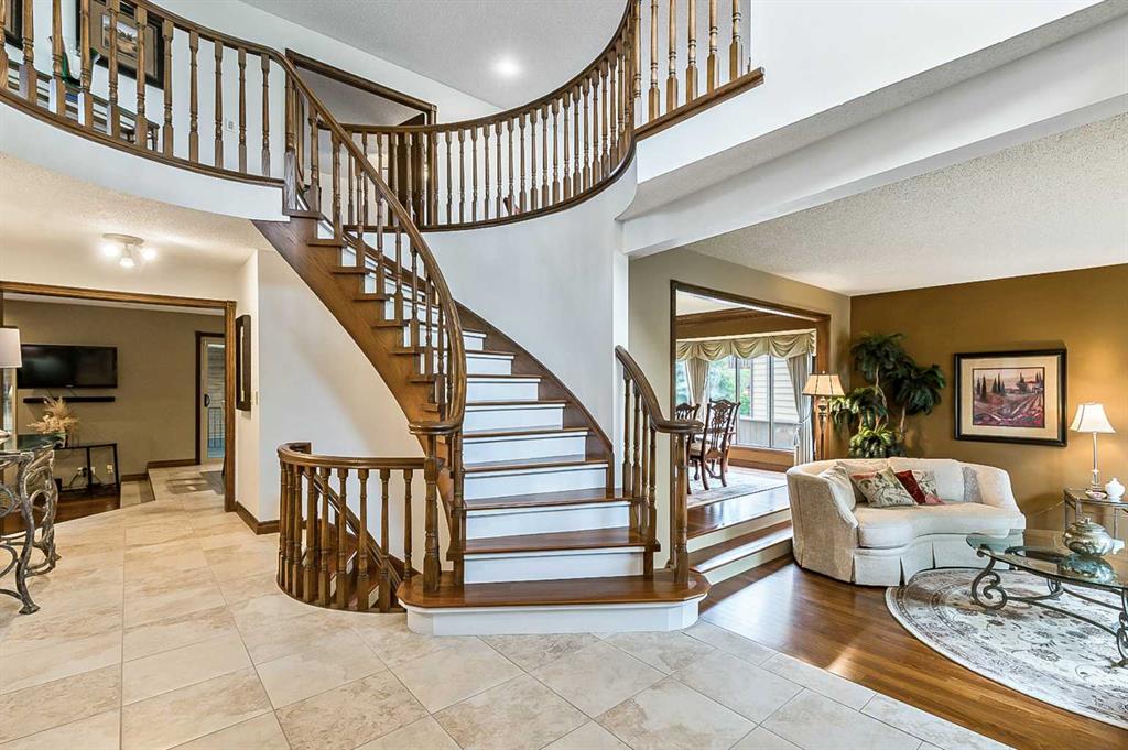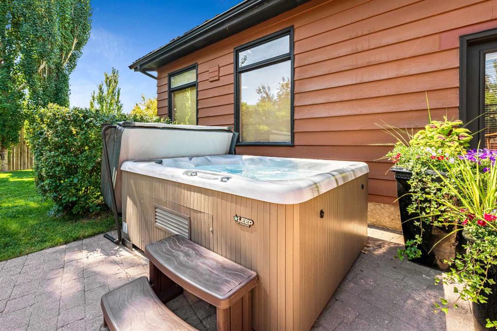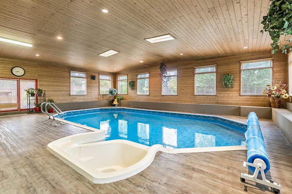 Enjoy your own piece of Paradise in this executive custom built 4765 sqft two storey home! This stunning five-bedroom home offers an unparalleled living experience. Nestled in a tranquil neighborhood of Canyon Meadows Estates. This property presents a unique blend of luxury and comfort that will surely captivate your heart. Main floor features a curved staircase that serves as a centerpiece, adding a touch of grandeur, soaring vaulted ceilings, gleaming Brazilian hardwood floors, formal dining room for elegant dinners and sunken living room that exudes charm and character. Kitchen is a culinary enthusiast’s dream come true. Boasting granite countertops, upgraded stainless steel appliances, gas stove, trendy backsplash, oversized island and custom cabinets. A large family room enjoys wood burning fireplace, newer 2pc powder room, spacious den and laundry area. The upper floor includes four generous bedrooms and a huge bonus area. Retreat to the new “spa like” 5pc ensuite in the primary bedroom, where you can indulge in relaxation after a long day. The basement is fully finished with an extra bedroom, bar, family room, rec/games area and two mechanical rooms. The 1580 sqft indoor pool is a true oasis, inviting you to relax and unwind at any time of the day. Imagine starting your mornings with a refreshing swim or ending your evening with a soothing dip in the outdoor hot tub. Step outside onto the fabulous outdoor patio, ideal for hosting gatherings or simply basking in the sunshine while surrounded by nature’s beauty. Note: Oversized triple attached garage (newer concrete floor, freshly painted with moisture resistant paint), high ceilings that can accommodate a car lift and central air conditioning. Walking distance to Fish Creek Park, Canyon Meadows Golf and Country Club, Fitness center, schools, shopping and tennis courts. Don’t miss this opportunity to own this exceptional property that seamlessly combines luxury, functionality, and tranquility. Embrace the beauty of resort living within the comfort of your own home. Schedule your private showing today and prepare to be amazed!
