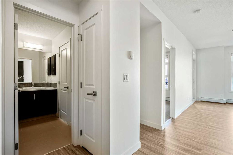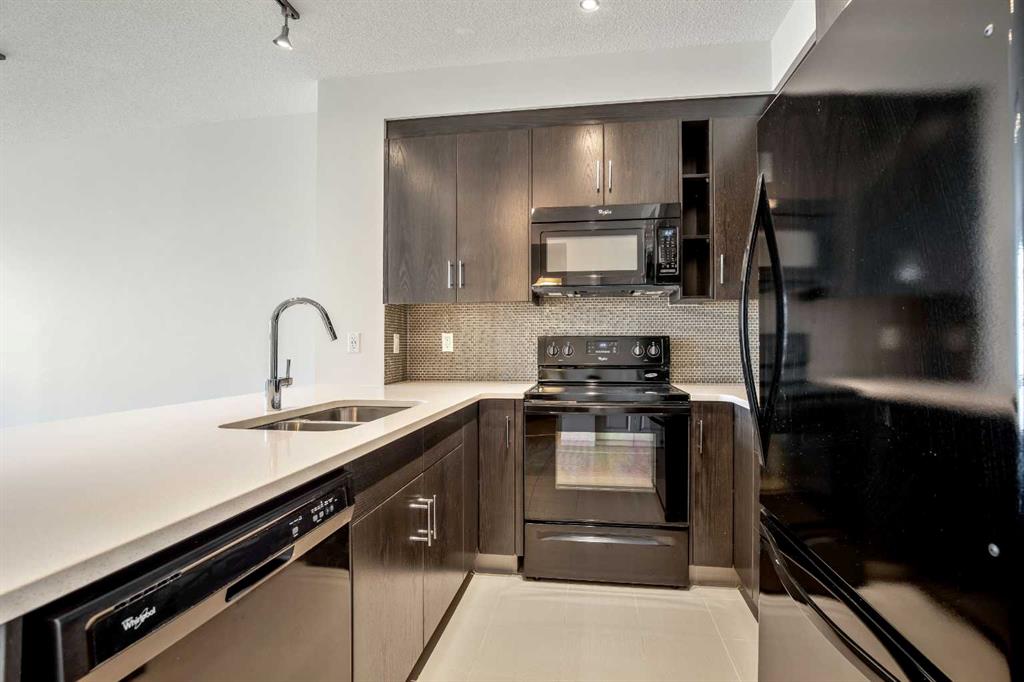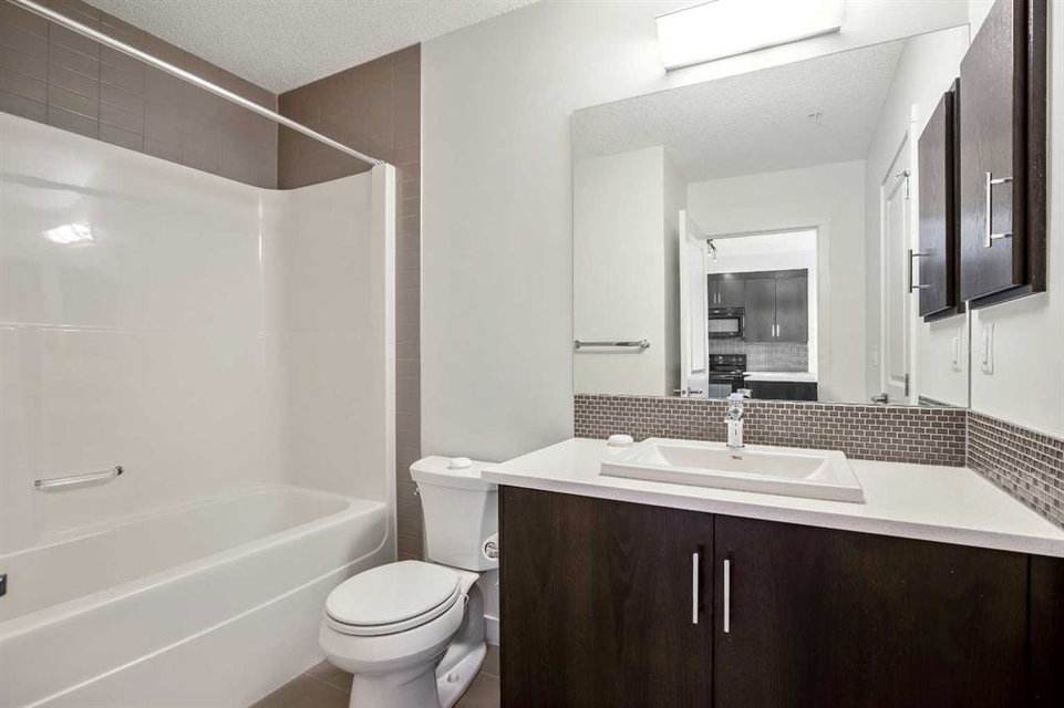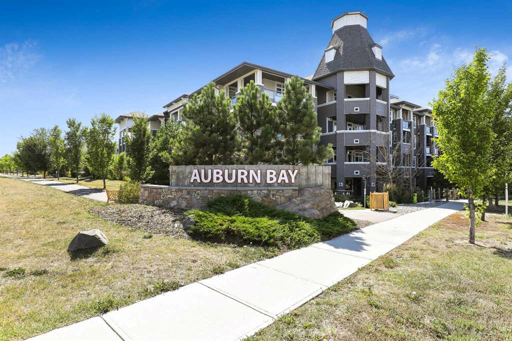 TURN KEY PROPERTY! Beautiful renovated one bedroom condo located in desirable Auburn Bay. Main floor features gleaming laminated floors, open concept kitchen boasts upgraded appliances, designer cabinets, trendy backsplash, and quartz counter tops. Large dining/living room combo perfect for everyday living with easy access to private patio. Oversized primary bedroom enjoys a walk thru closet to 4pc bath. Note: Immediate possession available, new laminated flooring, freshly painted, in-suite laundry room, pet friendly building with board approval, one titled underground parking stall, assigned “caged” storage locker. Walking distance to schools, public transit, dog park, clubhouse, lake, parks, playgrounds, shopping, and trendy restaurants. Quick access to South Campus Hospital, major roadways, YMCA, and theatre. Unit shows extremely well with pride of ownership!!