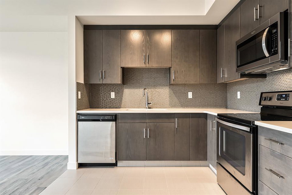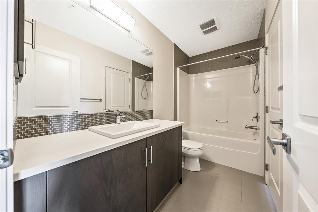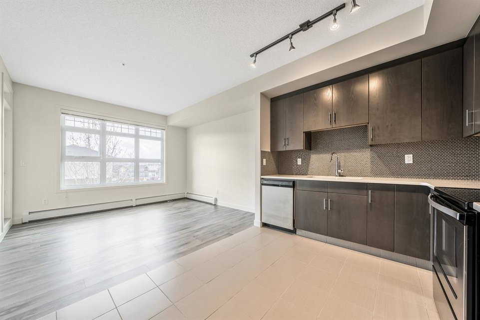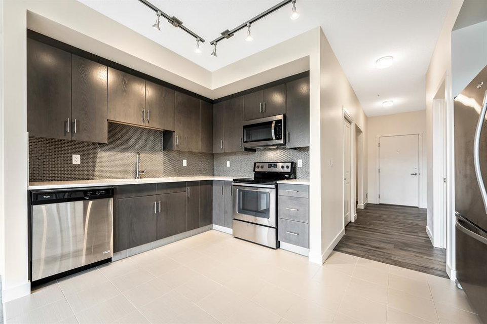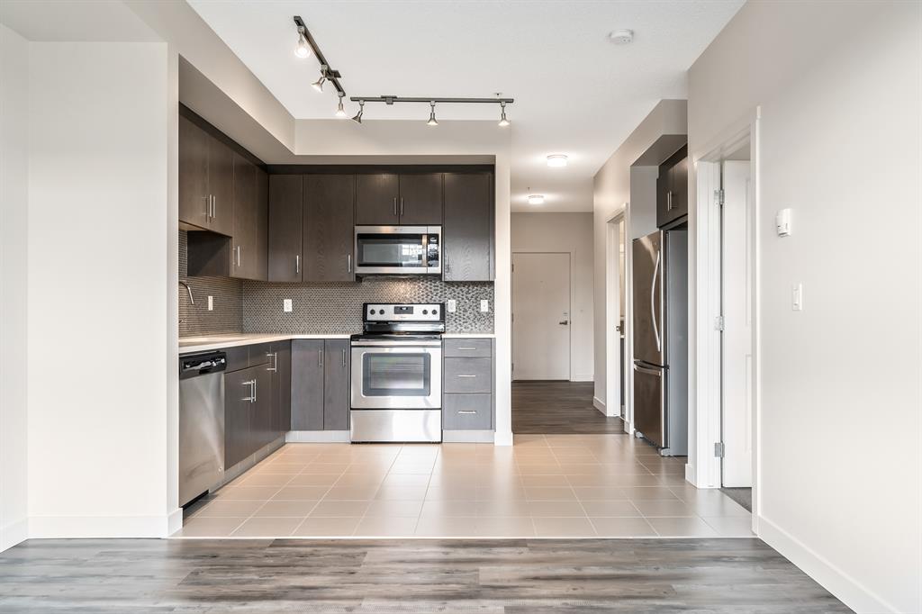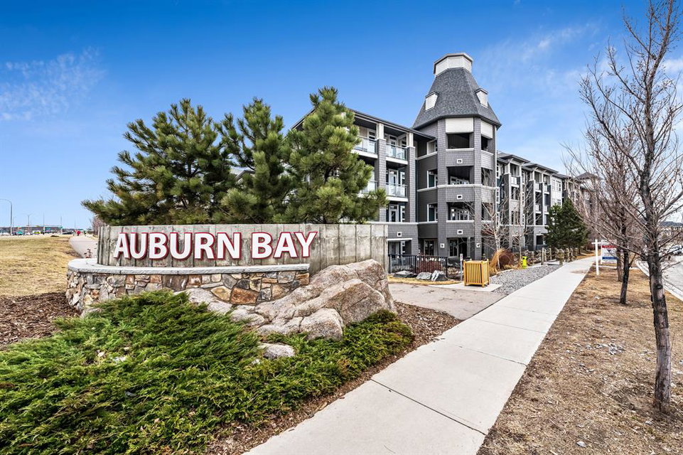 Anything else is a COMPROMISE! Beautiful renovated one bedroom plus den located in desirable Auburn Bay, backing onto courtyard. Main floor features gleaming laminated floors, open concept kitchen boasts stainless steel appliances, designer cabinets, trendy backsplash, and quartz counter tops. Large dining/living room combo perfect for everyday living with easy access to sunny south patio. Oversized primary bedroom enjoys a walk thru closet to 4pc bath. Note: New laminated flooring, freshly painted, in-suite laundry room, pet friendly building with board approval, one titled underground parking stall, assigned “caged” storage locker. Walking distance to schools, public transit, dog park, clubhouse, lake, parks, playgrounds, shopping, and trendy restaurants. Quick access to South Campus Hospital, major roadways, YMCA, and theatre. Unit shows extremely well with pride of ownership!!