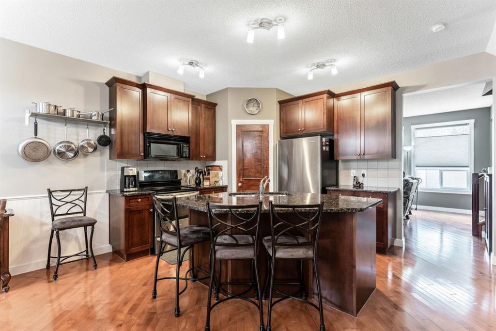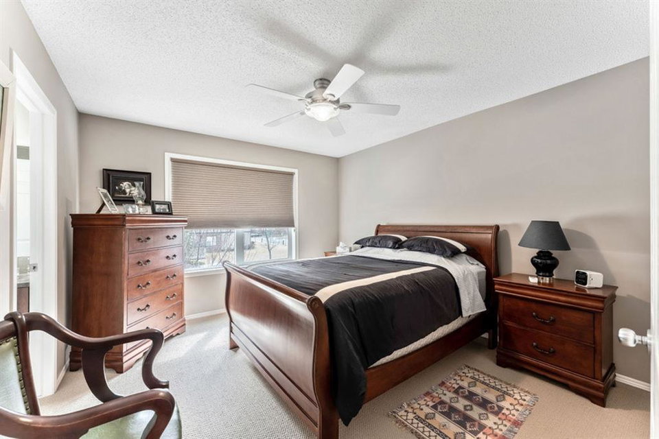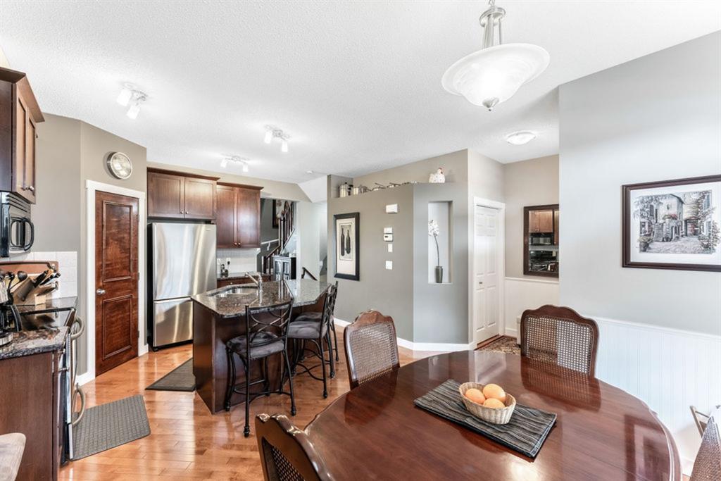 This fabulous 2 story townhouse has so much to offer! Highlights include the bright, open floor plan, neutral color palette, corner gas fireplace w/ tile surround and the cozy kitchen with maple cabinetry, granite countertops, S/S appliances, walk-in pantry and center island w/ seating. Throughout the main floor and transitioning upstairs into the loft, you will notice the beautiful hardwood flooring, upgraded wood trim and attractive wainscoting details. The upper level hosts a loft area that is perfect as a workstation and 2 large bedrooms, each with their own ensuites and walk-in closets – ideal for guests! The fully finished basement has a comfortable living area, laundry facilities and an additional bedroom that could work well as a home office. And lastly, the backyard has a great brick patio and double detached garage with abundant above floor shelving! Conveniently located to the McKenzie Towne water park, shopping, schools and transit! This home shows pride of ownership – non-pet/non-smoking!