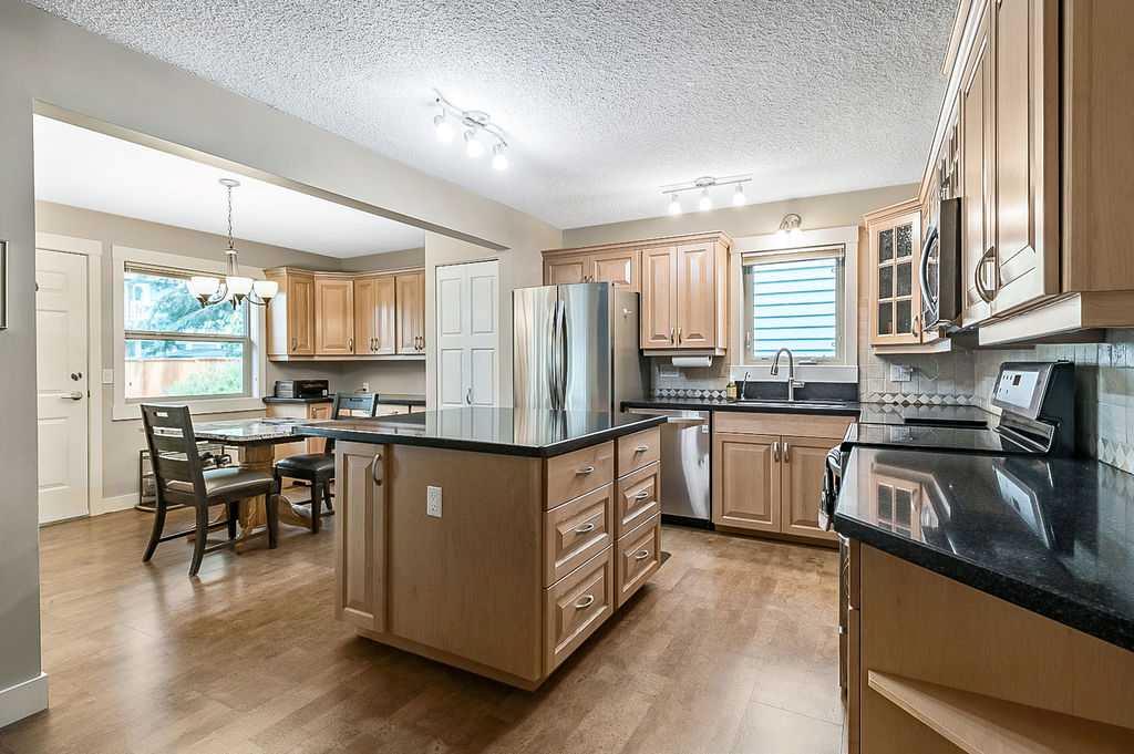 Discover this exceptional two storey home with extra single garage/workshop, RARE find in today’s market. This meticulously maintained property showcases stunning slate and exotic hardwood flooring throughout the main level, complemented by dramatic vaulted ceilings that create an impressive sense of space. The heart of the home features a beautifully updated kitchen with quartz countertops, premium stainless steel appliances with convection oven . The thoughtfully designed layout includes an island workspace and breakfast nook, flowing seamlessly into a cozy family room, anchored by a welcoming gas fireplace. Formal dining and living areas provide elegant spaces for entertaining, while an oversized addition accommodates both laundry facilities and a dedicated hobby room. Upstairs, three generously proportioned bedrooms await, including a spacious primary bedroom featuring a completely renovated four-piece ensuite and abundant closet storage. The main 4pc bathroom serves the additional bedrooms with style and functionality. The fully finished basement extends the living space with a fourth bedroom, recreation room, four-piece bathroom, and practical storage areas. This level maximizes the home’s potential for family living and entertaining. Step outside to discover a professionally landscaped backyard oasis featuring mature trees, thoughtful landscaping, and an expansive deck perfect for outdoor gatherings. The low-maintenance yard design ensures more time for enjoyment and less time on upkeep. Exceptional features include central air conditioning for year-round comfort, an oversized shed connected to the double garage, and striking exposed aggregate concrete driveway. The property’s crown jewel is the detached single garage with workshop space, providing endless possibilities for hobbies, storage, or projects. Properties of this caliber and character seldom become available, making this an extraordinary opportunity for discerning buyers seeking quality, functionality, and unique features in one remarkable package!