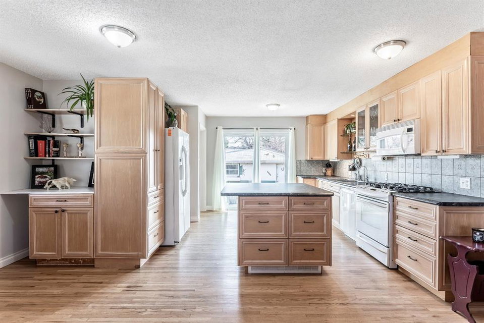 Fantastic opportunity to get into this highly desirable community! Property is also ideal for a rental or holding property for future development, the lot is 60×100. This 988 sqft bungalow has a had numerous updates/renovations over that last few years and features and open floor plan with updated cabinetry, large island with seating, patio doors to the sunny south yard and deck, hardwood floors, two generous bedrooms, and a 4pce main bath that completes this level. The fully finished basement has a large family/rec room, a third bedroom (windows need to be expanded), 4pce bath, massive laundry room, and tons of storage. Other great features include newer windows, shingles, tankless hot water, furnace, and single detached garage. Don’t miss your chance to own and live in this wonderful community!