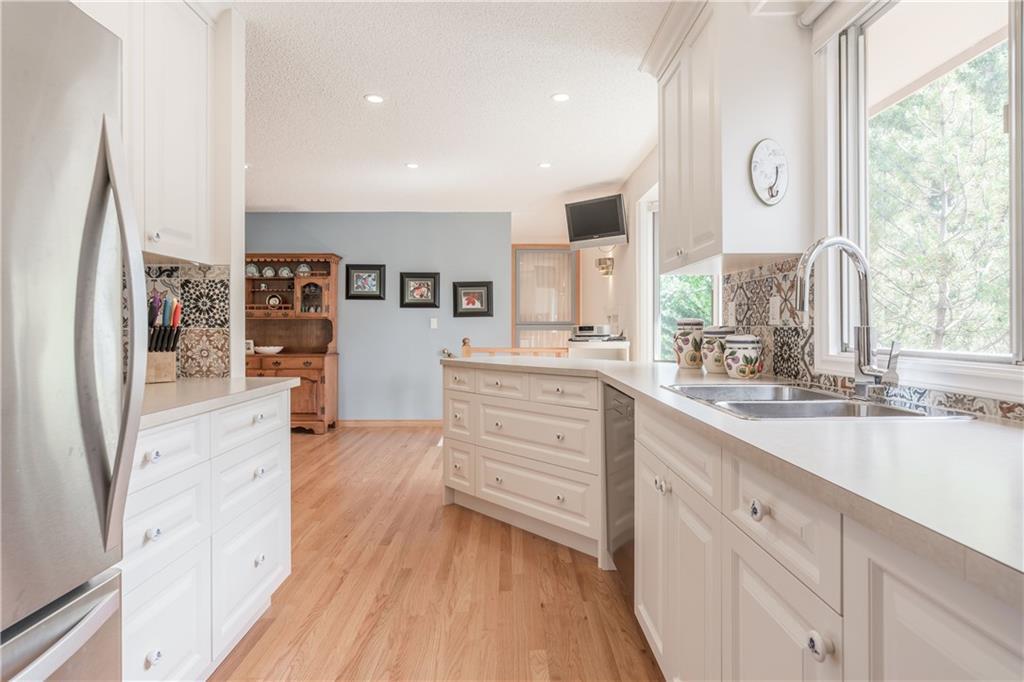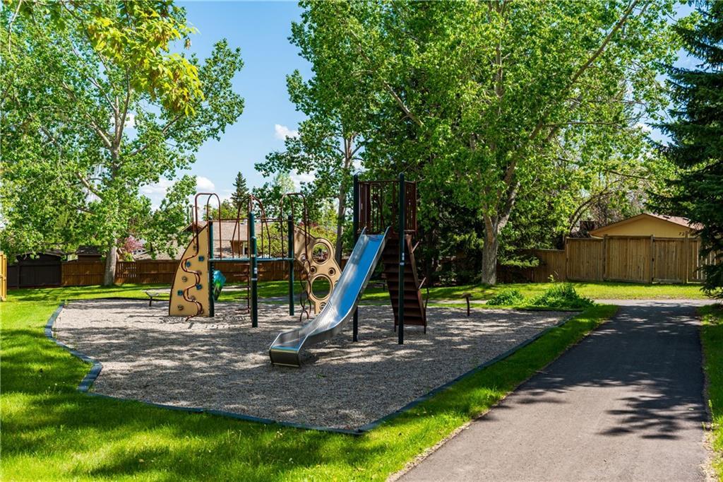 Rare walkout bungalow backing onto a park with a playground! This large 1440sqft bungalow has been meticulously maintained and updated over the years. The unbelievable backyard is like an English garden. This home feature hardwood floors, beautiful white kitchen with newer appliances, there is an expanded master bedroom with a 2pce ensuite, updated main 3pce bath, large office/den can easily converted back to 2nd & 3rd bedrooms, titled front entry way addition. The fully developed basement has a bedroom, 5pce bathroom with jetted tub, large shower, sauna and features a stone wall, spacious family room that overlooks the garden. Other updates include windows, doors, roof, furnace, Kinetico water system. Excellent location, walking distance to all levels of schools, Canyon Meadows Pool/Fitness Centre, Fish Creek Park, and LRT. This beautiful property shows pride of ownership thru out. A must see!!