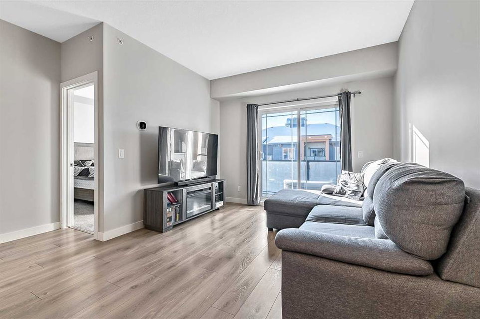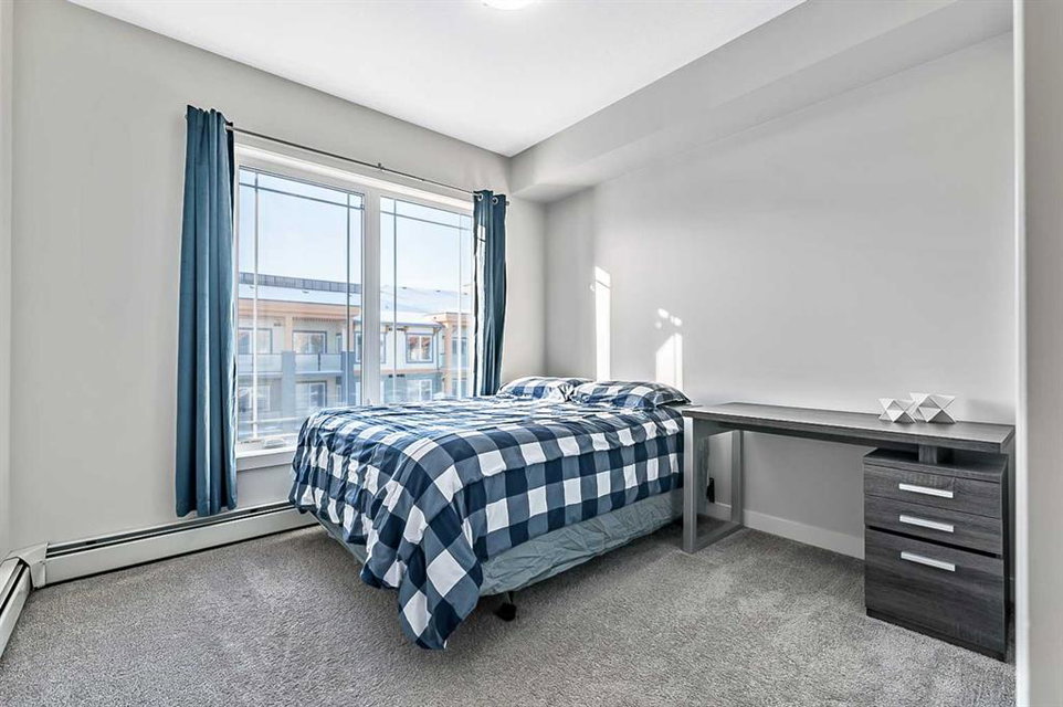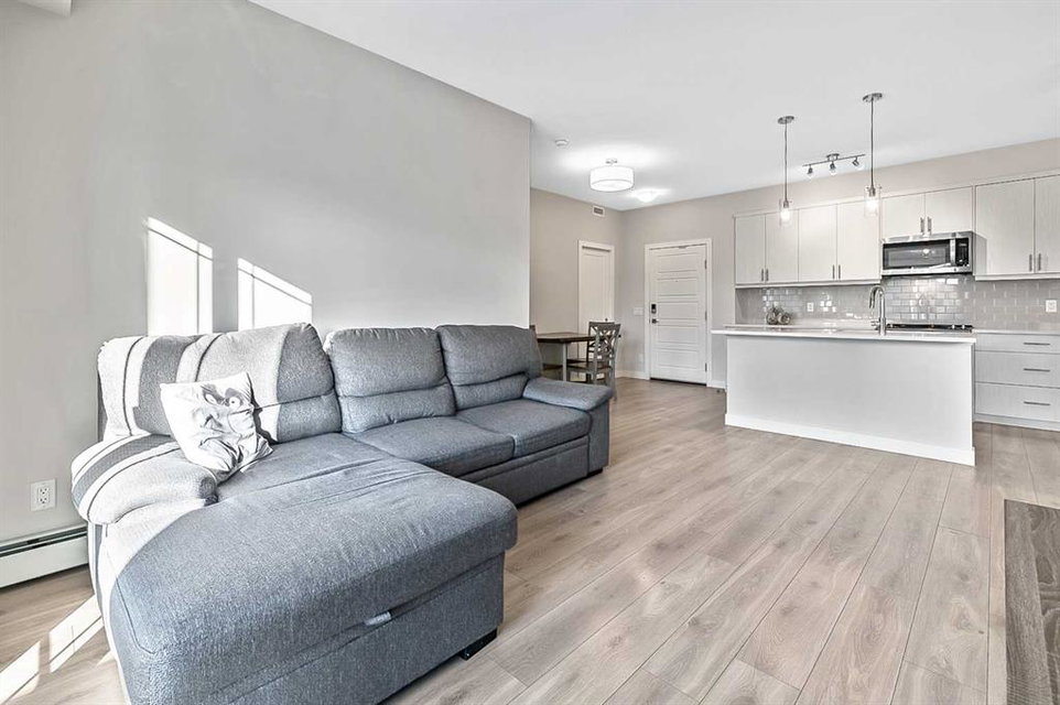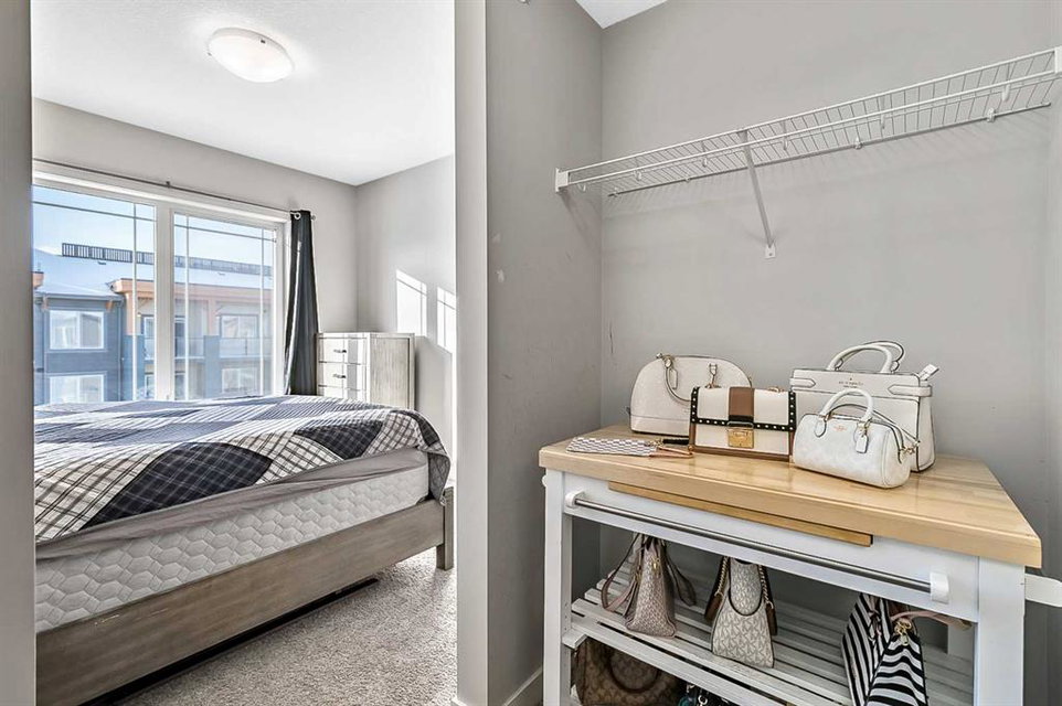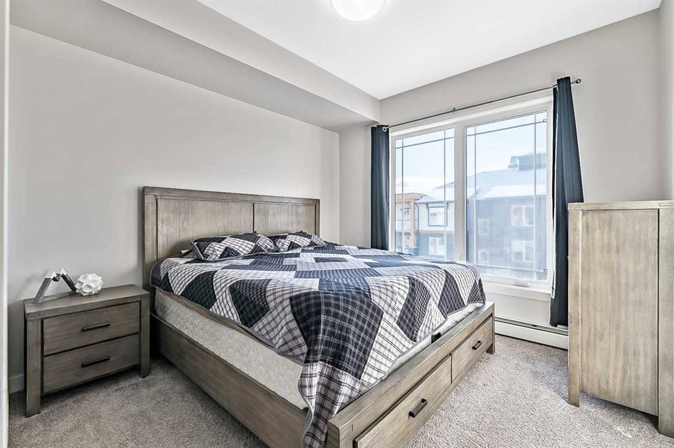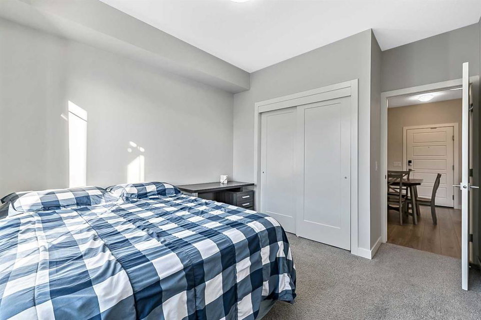 Discover luxury living in this exceptional top-floor corner unit showcasing breathtaking Rocky Mountain vistas and downtown views. The thoughtfully designed open-concept layout creates an inviting atmosphere perfect for both entertaining and everyday living. The heart of this home features a gourmet kitchen with premium finishes, including elegant quartz countertops, stylish backsplash, and a generous island that serves as an ideal gathering spot. This pristine residence offers two well-appointed bedrooms, including a primary bedroom with an ensuite bathroom and walk-in closet. The second full bathroom and in-unit laundry add convenience to daily living. Step out onto your private balcony to enjoy stunning panoramic mountain views – an ideal setting for morning coffee or evening relaxation. This modern condo maintains its like-new appeal with fresh paint throughout. Practical amenities include titled underground parking and dedicated storage space. The pet-friendly community provides exclusive lake access, creating a true resort-style living experience. The location offers the perfect balance of tranquility and convenience, with easy access to major transportation routes. Residents enjoy proximity to shopping, dining, and all the benefits of lake community living. This first-time-offered property presents a rare opportunity to own a slice of modern luxury with unmatched mountain views. Experience the pinnacle of contemporary condo living – schedule your private viewing today.