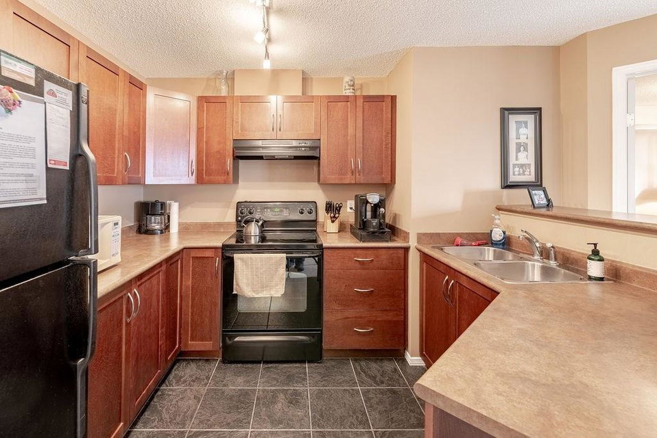 Best priced unit in the complex, with top floor location! This clean, cozy home features 2 bedrooms, 2 – 4pc bathrooms, walk-in closet, neutral colors, spacious kitchen w/ black appliances & cinnamon stained maple kitchen cabinets, separate laundry space and tile in entrance, kitchen and bathrooms. Oversized patio to enjoy summer and bbq. An underground, heated titled parking stall for winter is perfect! Walking distance to all shopping makes this a great place to call home! Quick access to Deerfoot and all stores and restaurants. Condo fees include electricity, heat and water/sewer.