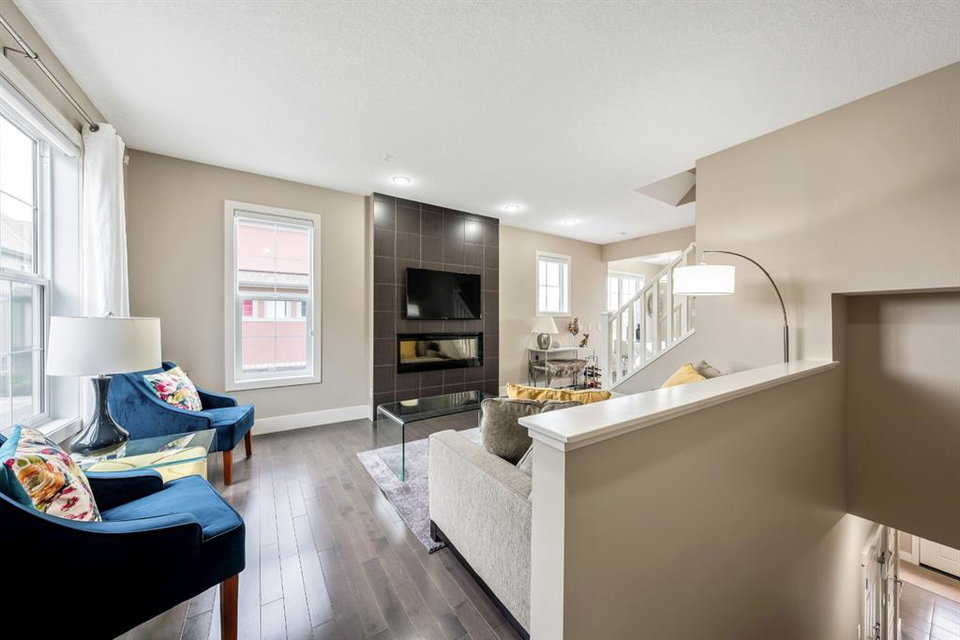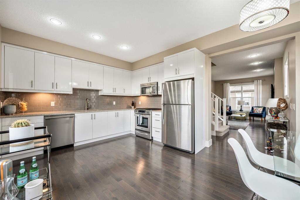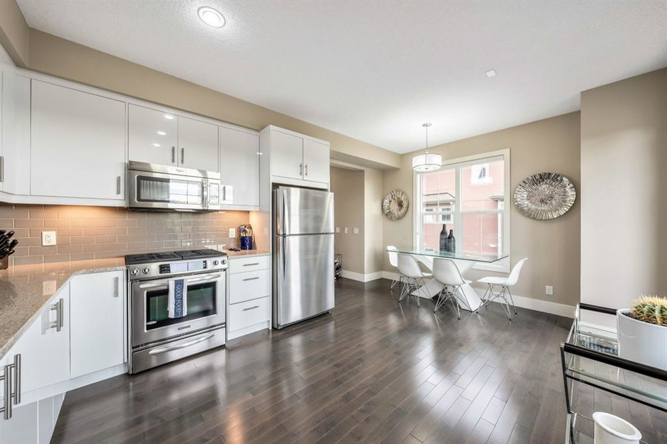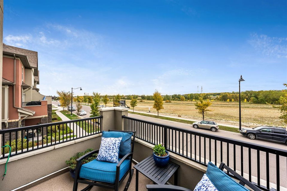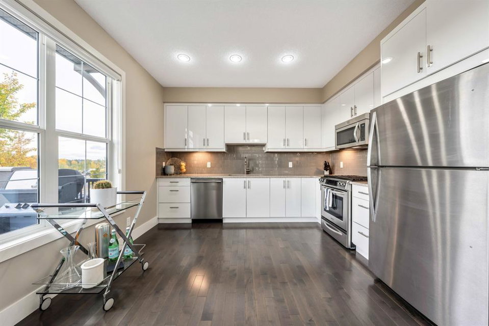 This stylish two bedroom townhouse in Quarry Park has lots of upgrades, a neutral color palette and a second to none location across from the Bow river pathway system! Working from home? You’ll find an office/den just off the main level foyer – currently being used as gym/yoga equipment & tv room. The main living space is drenched in sun (the only end unit in this complex to have additional side windows), beautiful hardwood floors, high ceilings, and cozy fireplace to warm you up the in the evenings. The high end silhouette window coverings found throughout add to the upscale feel to the property. Gorgeous kitchen with upgrades like glass tile backsplash, quartz counters, stainless steel appliances with gas cook top, tons of full height white cabinetry and space for your table. You also have access to the deck and river views with west exposure – a tranquil spot to enjoy stunning sunsets! As you head upstairs, you’ll find two bedrooms both with ensuites and walk-in closets. Ideally located between both bedrooms is the laundry room with full size washer & dryer. The home owners just added central air conditioning with a Nest thermostat. Although there is an attached garage with loads of storage space, you may find yourself walking to the many community amenities like Starbucks, restaurants, YMCA and work. You’ll find quick access to anywhere in the city with Deerfoot, Barlow, Glenmore, Stoney trail at your doorstep and the South Hospital and Chinook Mall are mere minutes away. To top it all off, this beauty is impeccably maintained and move-in ready.