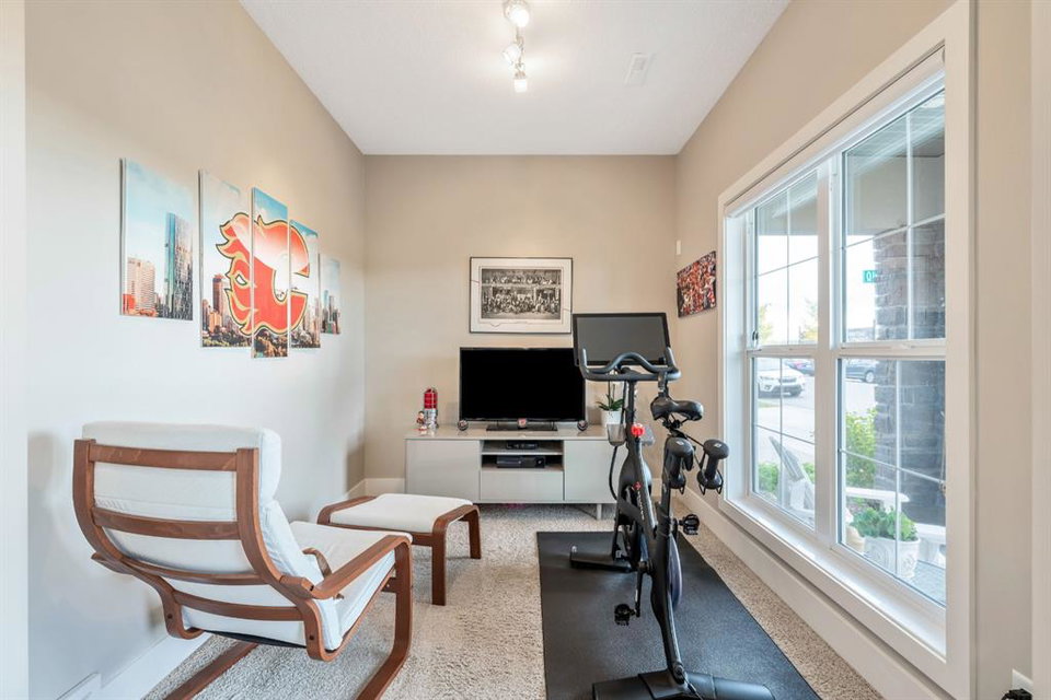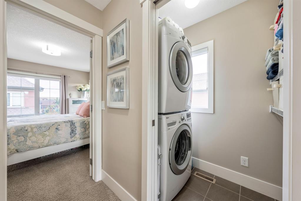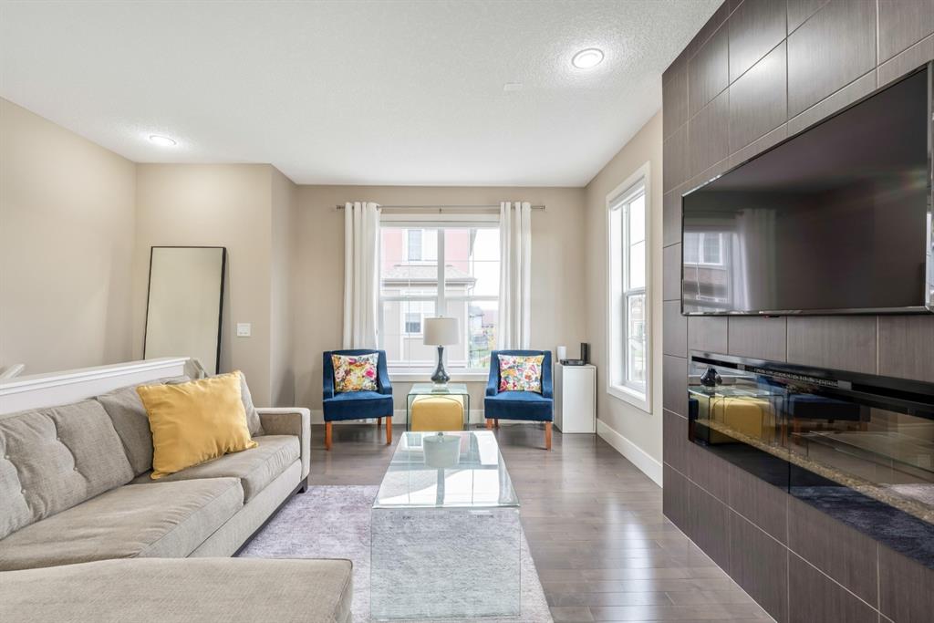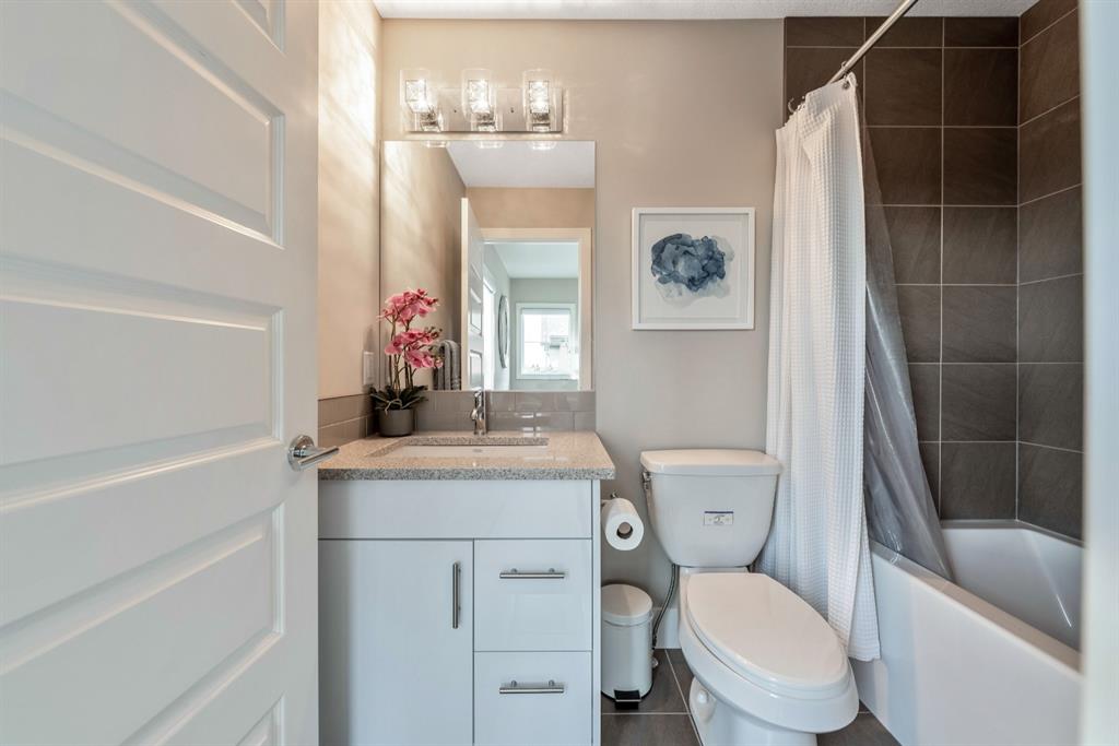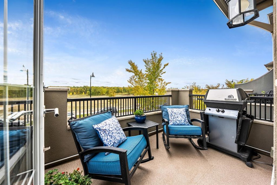 This stylish two bedroom townhouse in Quarry Park has lots of upgrades, a neutral color palette and a second to none location across from the Bow river pathway system! Working from home? You’ll find an office/den just off the main level foyer – currently being used as gym/yoga equipment & tv room. The main living space is drenched in sun (the only end unit in this complex to have additional side windows), beautiful hardwood floors, high ceilings, and cozy fireplace to warm you up the in the evenings. The high end silhouette window coverings found throughout add to the upscale feel to the property. Gorgeous kitchen with upgrades like glass tile backsplash, quartz counters, stainless steel appliances with gas cook top, tons of full height white cabinetry and space for your table. You also have access to the deck and river views with west exposure – a tranquil spot to enjoy stunning sunsets! As you head upstairs, you’ll find two bedrooms both with ensuites and walk-in closets. Ideally located between both bedrooms is the laundry room with full size washer & dryer. The home owners just added central air conditioning with a Nest thermostat. Although there is an attached garage with loads of storage space, you may find yourself walking to the many community amenities like Starbucks, restaurants, YMCA and work. You’ll find quick access to anywhere in the city with Deerfoot, Barlow, Glenmore, Stoney trail at your doorstep and the South Hospital and Chinook Mall are mere minutes away. To top it all off, this beauty is impeccably maintained and move-in ready.