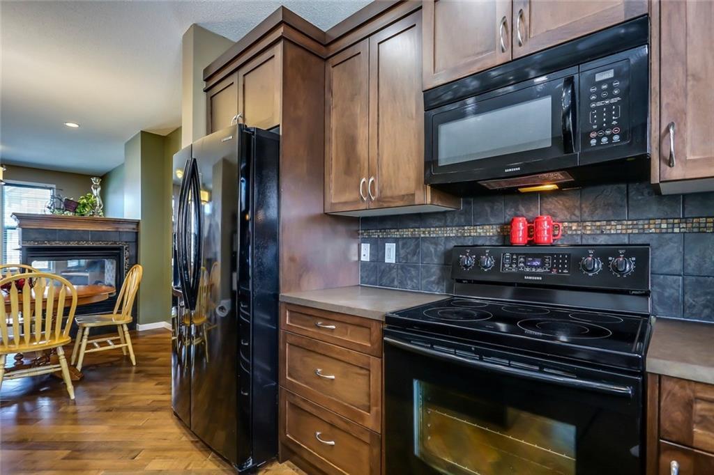 Fabulous Family Home! Pride of Ownership! Very popular “Greenwich” model built by Cedarglen. This 2 storey features an open floor plan, 9′ ceilings, three sided fireplace, huge kitchen and counter space with extended eating ledge, family sized eating nook/dining area, walk-in pantry, dark rich cabinets & hardwood floors. Upper level has 3 good sized bedrooms, master with full 3pc ensuite and walk-in closet, another full 4pc bathroom, and a conveniently located computer work station with shelves. The lower level has been professional developed with the builder and provides a recreation room, another full 4 pc bath, an additional 4th bedroom, plus storage area. The beautiful yard is full fenced and has massive reinforced decks that’s perfect for entertaining or family gatherings also an ideal spot for a hot tub. The double garage is heated with 60 amp service and still has room for RV parking. Awesome quiet location, close to schools, parks and shopping. Other features are: tankless hot water system, high efficiency furnace, built-in Dolby surround sound system in basement, concrete pour porch and side walks***OPEN HOUSE SUN 2-4pm***