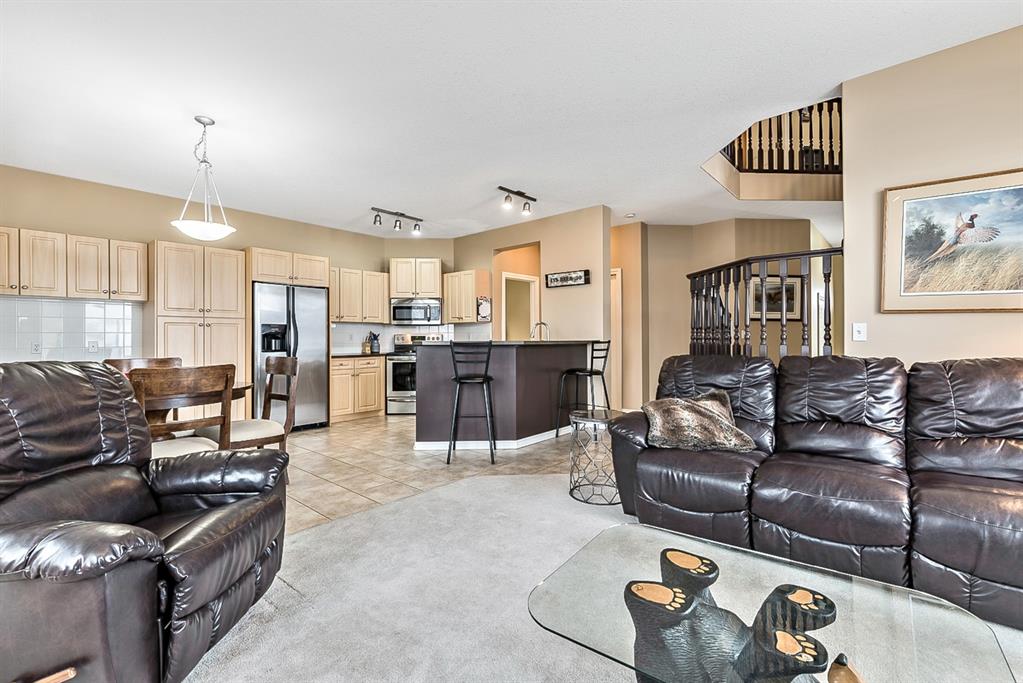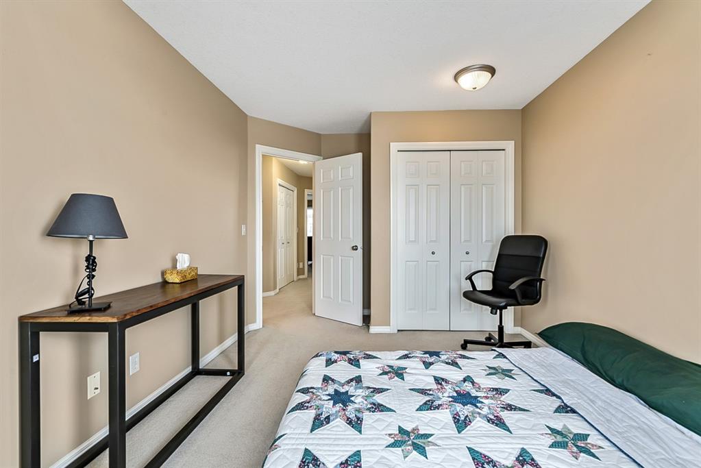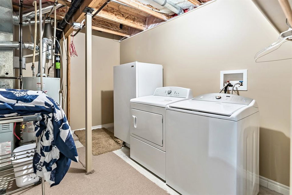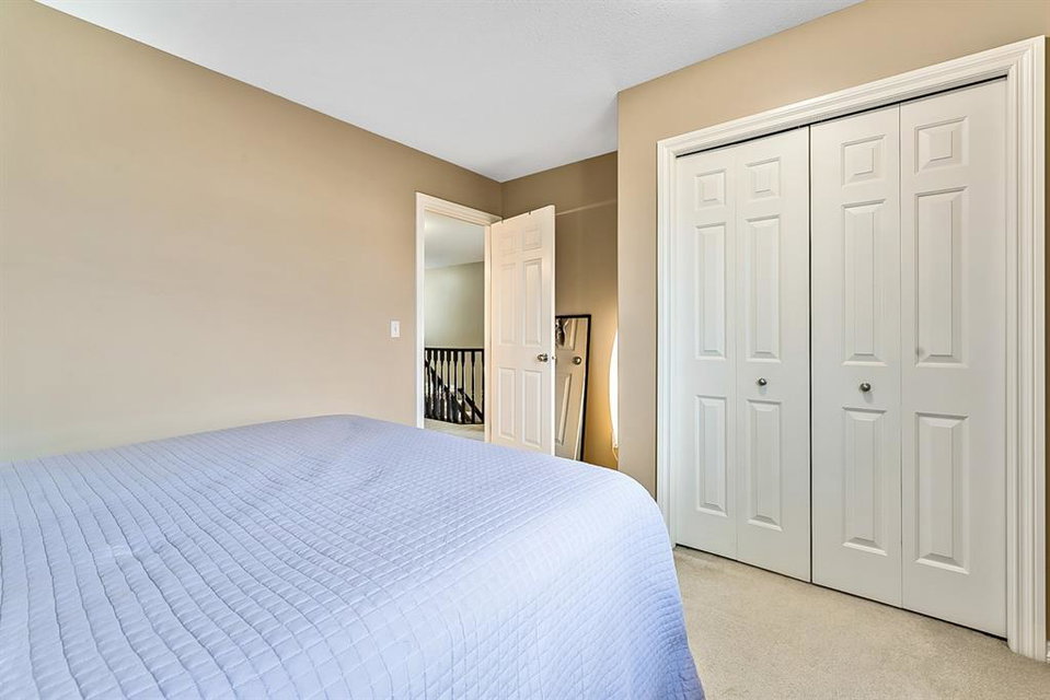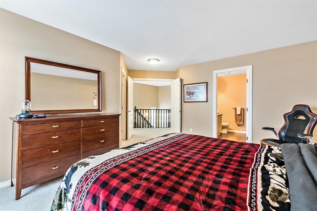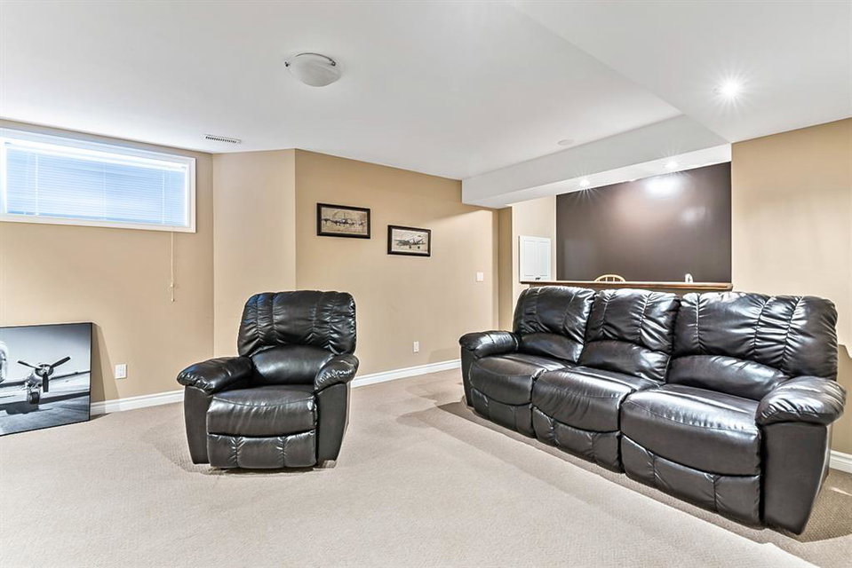 Beautiful END unit located in West Springs with sunny south exposure! This three-bedroom townhouse offers over 2100 sqft of living space with a double attached garage and a fully finished basement. Main floor features large entry way, open concept kitchen, breakfast bar island, stainless steel appliances, dining area, powder room and huge living room that enjoys gas burning fireplace. Three generous sized bedrooms on the upper floor with work-station area and 4pc bath. Master bedroom is massive with a 4pc ensuite that boasts a jetted tub, separate shower, heated tile floors and huge walk-in closet. This home is conveniently located close to abundant green spaces, schools, shopping, public transit, trendy restaurants, quick access to downtown and all major routes. Quick possession is available, if needed. Home shows extremely well with pride of ownership!