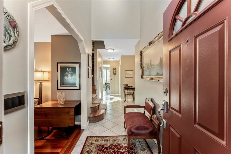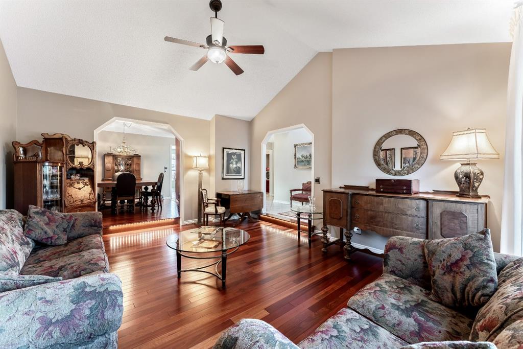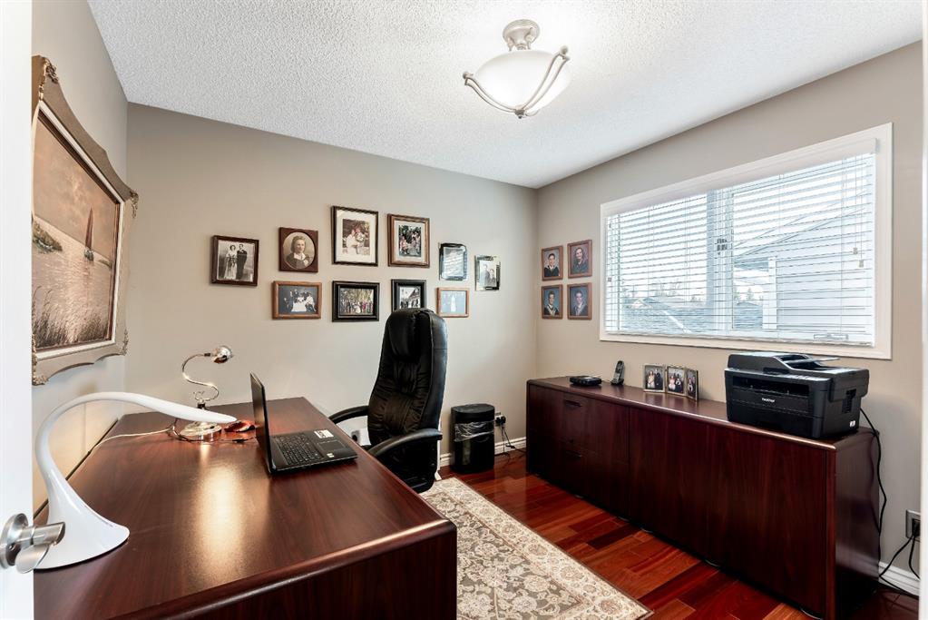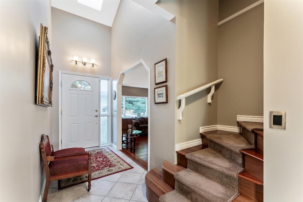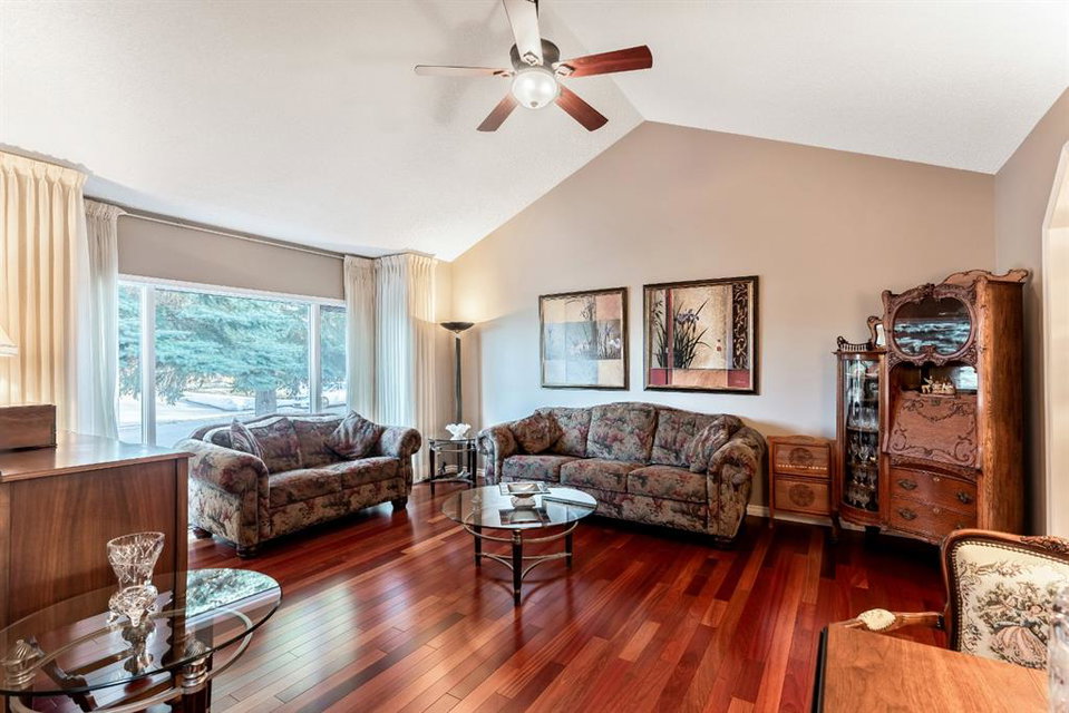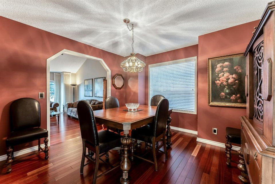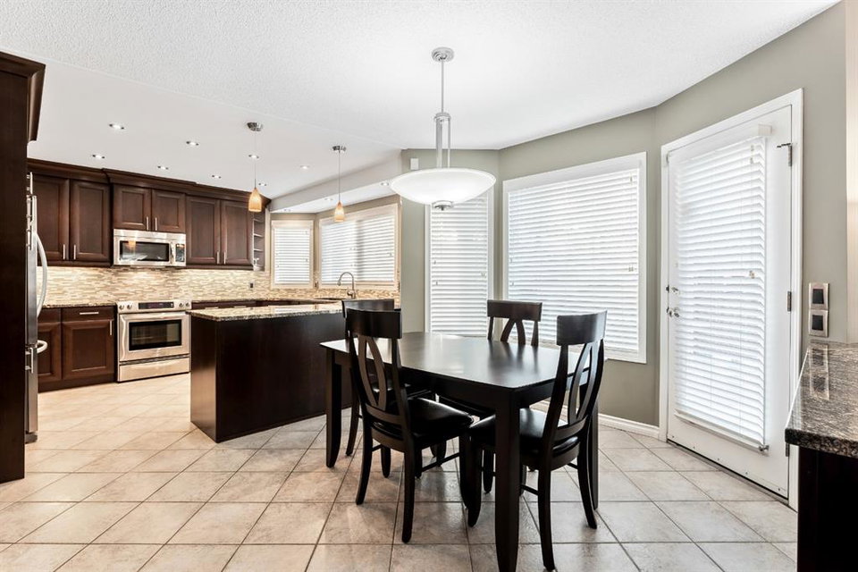 Anything else is a compromise! This fabulous two storey home offers over 2400 sq ft with four bedrooms upstairs. The main and upper floors feature gleaming Brazilian cherry hardwood floors. Main floor displays a large living room, formal dining room, kitchen, breakfast nook, 2pc bathroom, bedroom, and family room. Spacious kitchen boasts high-end granite counter tops, including a beautiful peninsula. Granite continues with a divider cap between the breakfast nook and family room, as well as granite on the wine bar. The main counter is complemented with a trendy tile backsplash and under-cabinet lighting. Kitchen includes a matching stainless-steel refrigerator, dishwasher, microwave, and stove. All this is complemented with a black undermount silgranit sink with a garburator. The family room includes oversized windows, renovated granite wood burning fireplace and attractive glass shelving and cabinets. There are four bedrooms on the upper floor, a renovated 4pc bath, including an oversized master bedroom featuring a gorgeous “spa like” ensuite; (dual sinks, free standing soaker tub, heated tile floors, 10mm glass sided shower and walk-in closet). The lower level is unspoiled and ready for future development. Note: Visit 3D virtual tour, roof shingles updated to 50 yr, central air conditioning, newer exposed and stamped driveway/walkways and underground sprinkler system. Fully landscaped yard that enjoys a massive deck with west exposure perfect for family gatherings and BBQ’s. Walking distance to lake, schools, public transit, shopping, restaurants and Fish Creek Park. These types of homes rarely come on the market!!