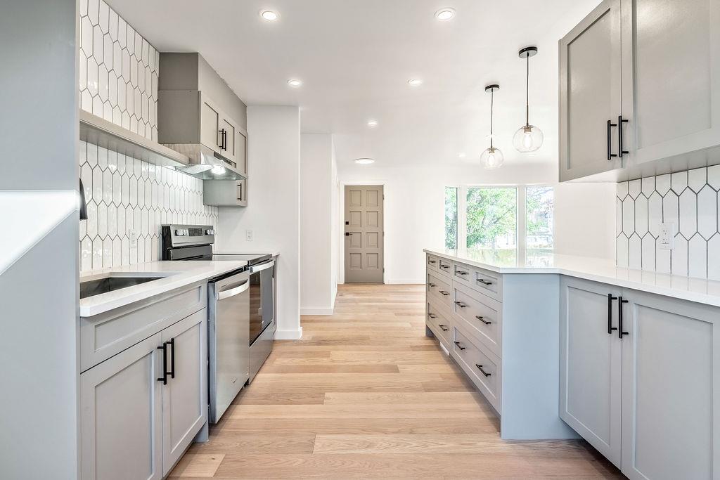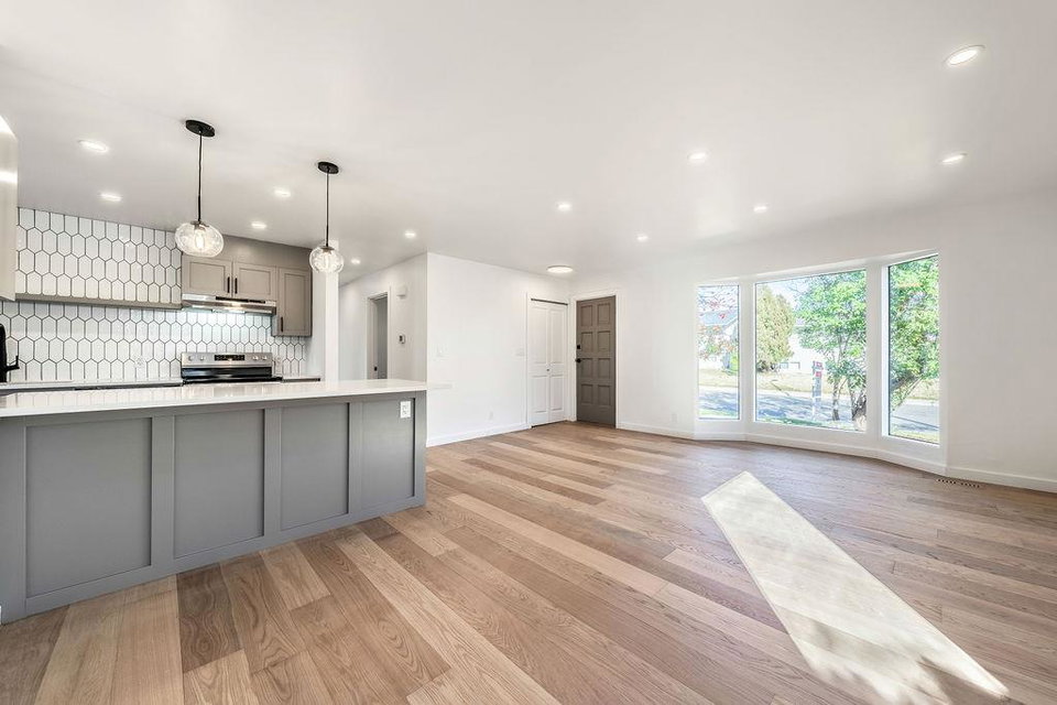 Looking for the perfect place to call home? Here is your chance to move in to a completely renovated bungalow! This home has undergone extensive renovations, including a strip down to the studs, updated mechanicals new furnace and new asphalt shingles. Upon entering this home, you are greeted with wide plank hardwood flooring, an open concept living area with an abundance of windows for natural light, neutral color palette, large galley kitchen featuring beautiful gray cabinetry w/ white quartz countertops, modern tile backsplash and stainless-steel appliances. Main floor also boasts 3 generous sized bedrooms, with the master including 2pc ensuite w/ trendy barn sliding door and patterned floor tile and an additional family room with vaulted ceiling and wood burning fireplace. Fully finished basement hosts 2 additional bedrooms, rec room area, wet bar and 4 pc bath. Please note – basement has electrical for separate washer/dryer, fridge and stove and may have potential for a secondary suite subject to approval and permitting by the city. Home has great curb appeal and mature trees large south backyard, as well as a new fence, wood deck/concrete pavers, firepit and paved RV parking. Lots of room to accommodate one’s dream garage! This renovation was professionally done, with perfection in every detail, and all permits pulled. Conveniently located close to schools, shopping, transit and all amenities. Call today to book your showing!