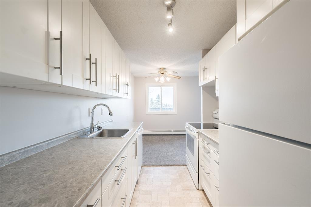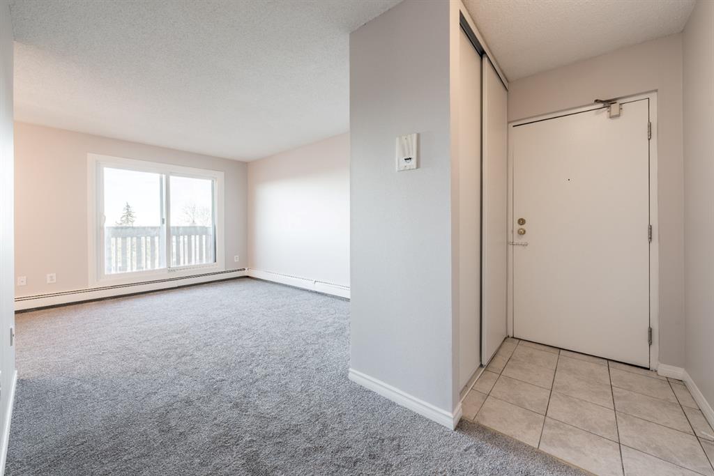 Welcome home to this renovated two-bedroom unit located in Anderson Place. Home enjoys a large living room, bright east facing windows & balcony, spacious dining room and updated kitchen area. Two generous sized bedrooms, newer 4pc bath and huge storage room. Note: Vinyl windows, new carpet, freshly painted, condo fee of $491 includes heat, water, sewer, electricity, pets are allowed with board approval and one assigned parking stall. Walking distance to all levels of schools, LRT, public transit, community center, outdoor hockey rinks, tennis courts and Fish Creek Park. Property shows extremely well with pride of ownership, quick possession is available if needed!