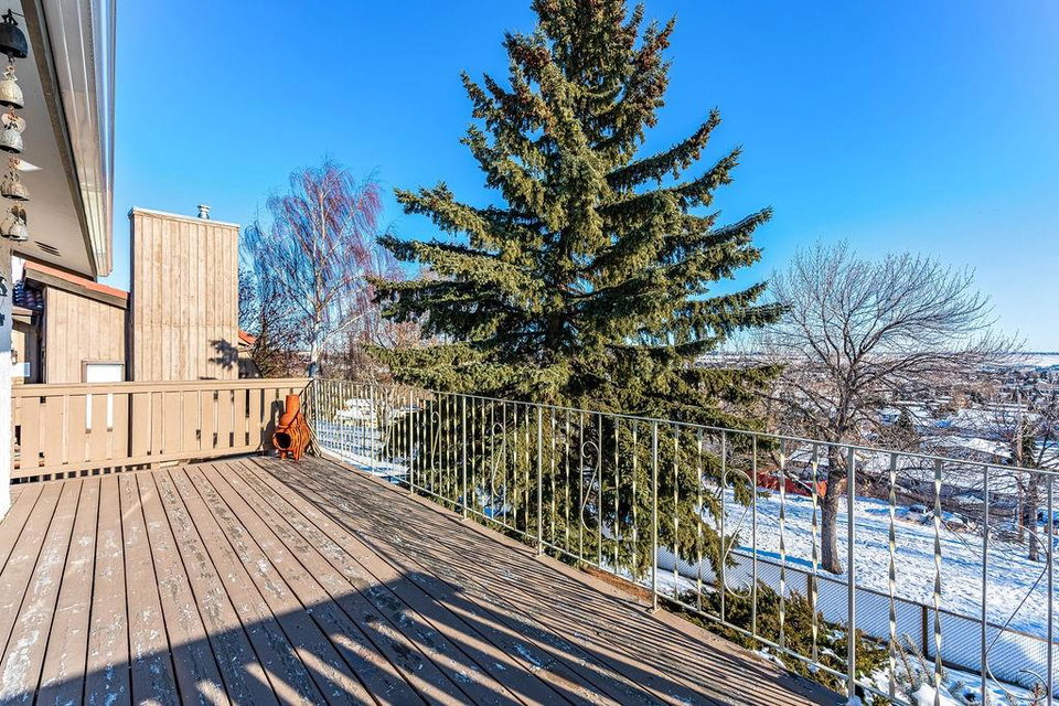 Located in the heart of Thorncliffe, this well cared for Hillside walk-out bungalow is sure to impress! This home features neutral colors, an abundance of natural light, hardwood floors, spacious kitchen with lots of white cabinetry and upper bay window, larger bedrooms, including master with another bay window and 2 pc. ensuite, 2 wood burning fireplaces with unique beautiful surrounds and wonderful views of the surrounding neighborhood and distant horizon, that can also be enjoyed from the huge deck out back. The warm and inviting walk-out basement includes a 4th bedroom, full bath, games area, laundry/storage and a rec room with sliding doors into the backyard. As well, lots of outdoor parking with 2 car detached garage and extended driveway. Newer furnace and select newer windows. Backing onto Thorncliffe off-leash park, you are just minutes from schools and shopping!