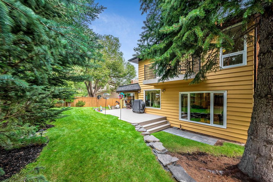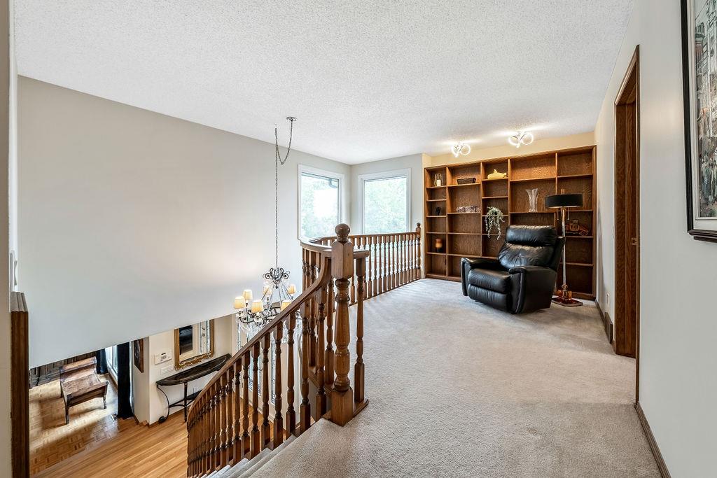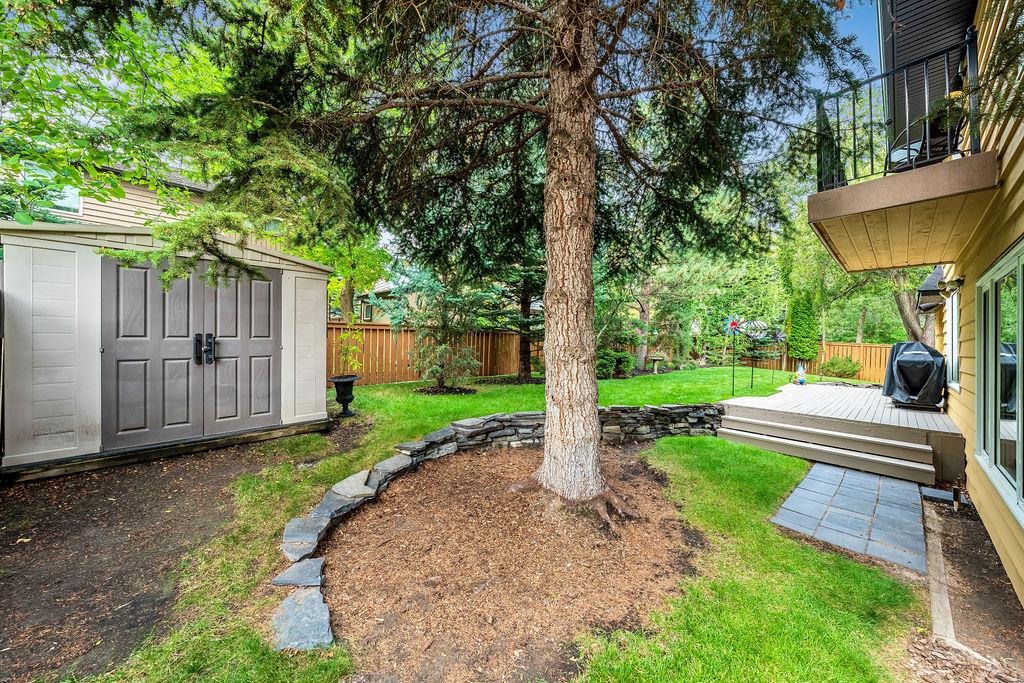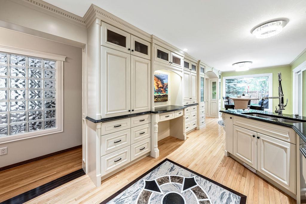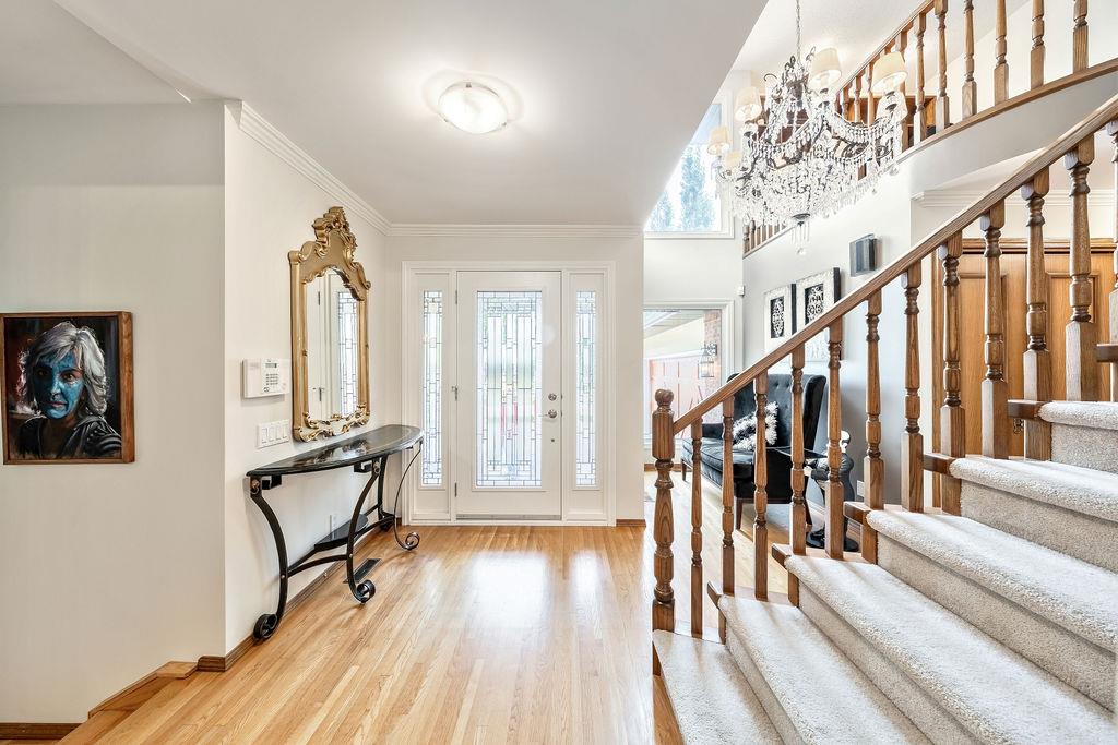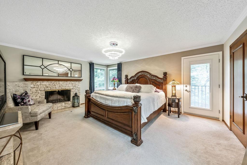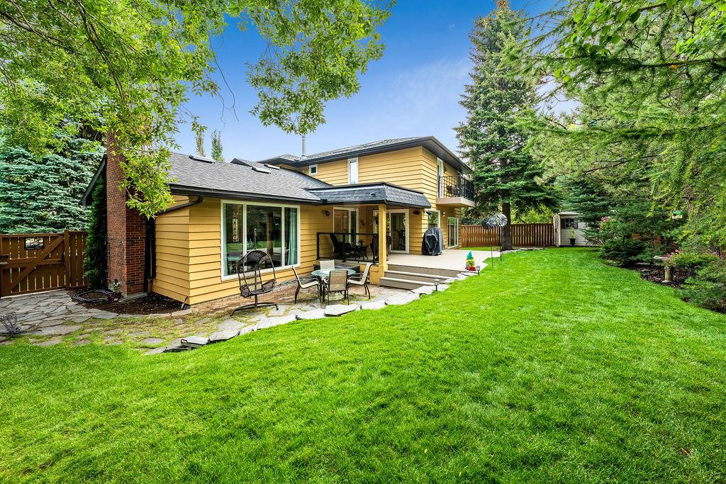 Showcase stopper! Fabulous curb appeal! Elegant custom built “one-of-a-kind “custom built family home that has been extensively renovated and lovingly cared-for over the years that offers both quality, a tasteful Decor and functionality. The foyer sets the tone for this incredible home with a standing chandelier light fixture, sweeping staircase, gleaming on site finished hardwood flooring throughout most of the main level, custom built cornices, and epic living room that highlights a wooden beam accent it vaulted ceiling, formal dining size living room ideal for family or friend get-togethers. Large bright family room with a second stone fireplace, custom cabinetry, main floor den/office/bedroom, beautiful powder room, huge mud/laundry room complete with sink, granite countertops and storage cabinets….But The kitchen is the “centrepiece“ truly a chefs dream. Custom mild timeless cabinetry, stainless steel appliances, gas stove, loads of granite countertops, undermount sink with a dream fossett, upgraded tile backsplash, unique custom designed granite floor piece, at breakfast nook overlooking a manicured backyard. The upper level has a versatile loft that overlooks the foyer-perfect for an open home office or perhaps a quiet reading retreat, a palatial king-sized primary suite with a third fireplace, walk-in closet, french door to a private balcony and surround yourself with a luxury ensuite spa tub walk-in shower. The main four-piece bath has double sinks and oversize granite countertops ideal for the children, to oversized bedrooms complete the upper level. Basement is partially developed and await your personal touch. Your family will enjoy the very large west facing fully fenced yard with mature trees offering privacy, enjoy a large deck, stone patio area, storage shed. Note: Triple pane windows, upgraded asphalt roof shingles, soffits, facia, eves, two high efficient furnaces, two central air conditioning, on-demand hot water heater, water softener & de-chlorinator, underground sprinkler system and more. Conveniently located near shopping, transit, schools, Canyon Meadows Aquatic & Fitness Center and Fish Creek Park. Property shows extremely well with pride of ownership!