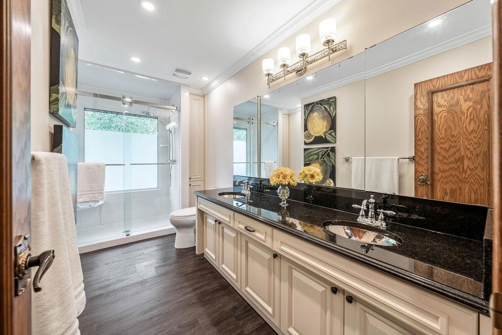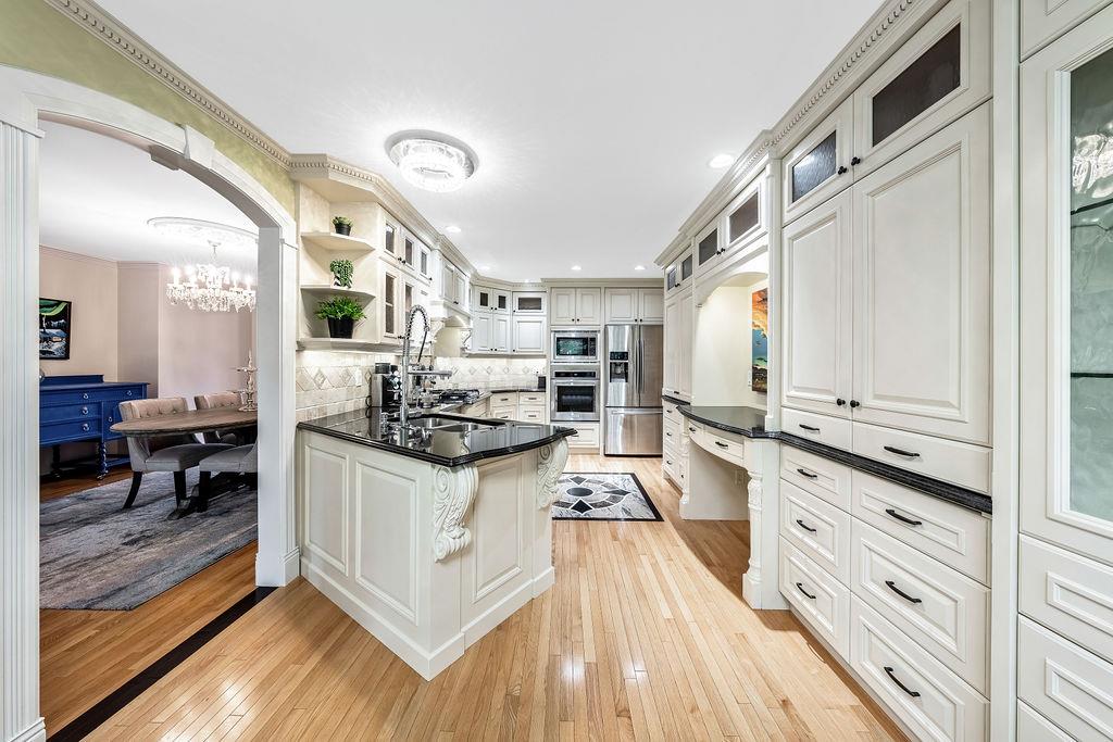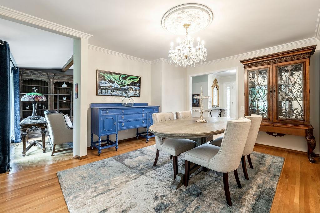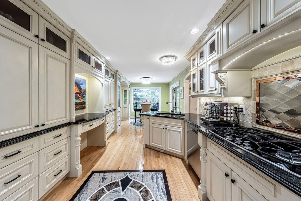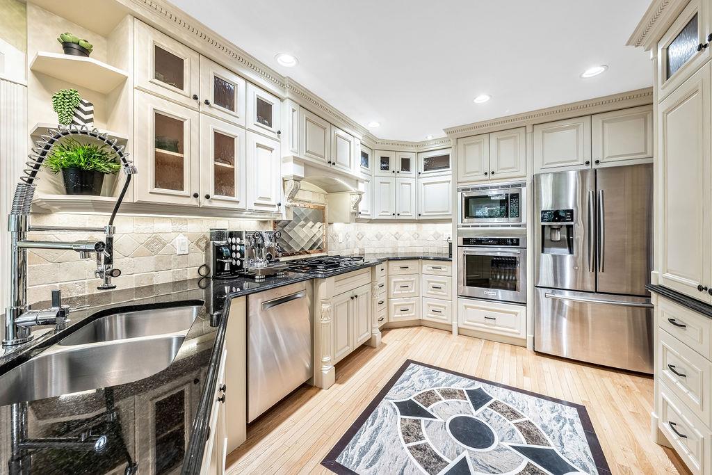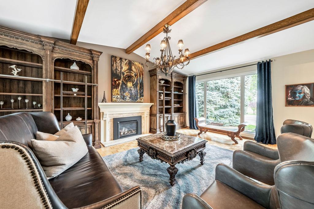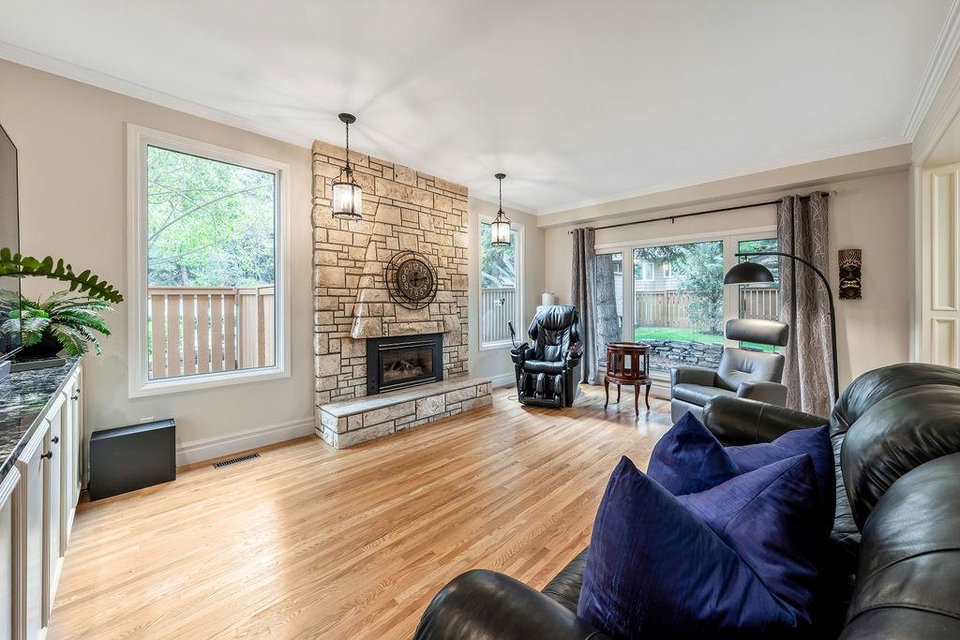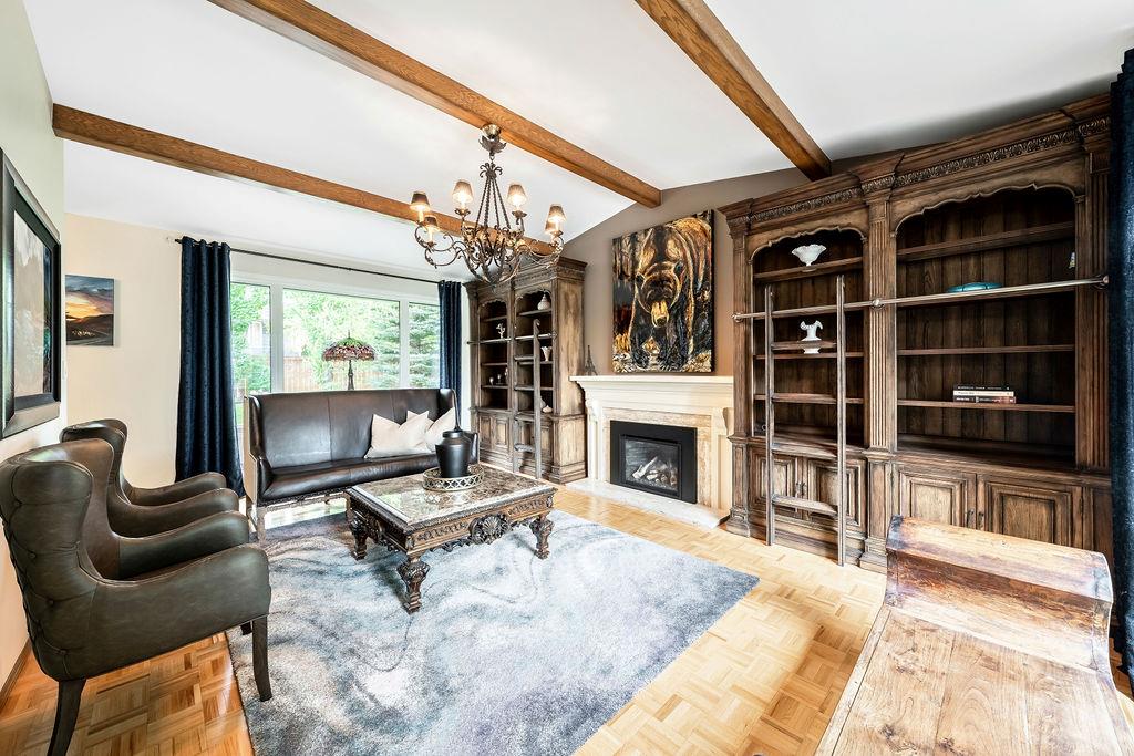 Showcase stopper! Fabulous curb appeal! Elegant custom built “one-of-a-kind “custom built family home that has been extensively renovated and lovingly cared-for over the years that offers both quality, a tasteful Decor and functionality. The foyer sets the tone for this incredible home with a standing chandelier light fixture, sweeping staircase, gleaming on site finished hardwood flooring throughout most of the main level, custom built cornices, and epic living room that highlights a wooden beam accent it vaulted ceiling, formal dining size living room ideal for family or friend get-togethers. Large bright family room with a second stone fireplace, custom cabinetry, main floor den/office/bedroom, beautiful powder room, huge mud/laundry room complete with sink, granite countertops and storage cabinets….But The kitchen is the “centrepiece“ truly a chefs dream. Custom mild timeless cabinetry, stainless steel appliances, gas stove, loads of granite countertops, undermount sink with a dream fossett, upgraded tile backsplash, unique custom designed granite floor piece, at breakfast nook overlooking a manicured backyard. The upper level has a versatile loft that overlooks the foyer-perfect for an open home office or perhaps a quiet reading retreat, a palatial king-sized primary suite with a third fireplace, walk-in closet, french door to a private balcony and surround yourself with a luxury ensuite spa tub walk-in shower. The main four-piece bath has double sinks and oversize granite countertops ideal for the children, to oversized bedrooms complete the upper level. Basement is partially developed and await your personal touch. Your family will enjoy the very large west facing fully fenced yard with mature trees offering privacy, enjoy a large deck, stone patio area, storage shed. Note: Triple pane windows, upgraded asphalt roof shingles, soffits, facia, eves, two high efficient furnaces, two central air conditioning, on-demand hot water heater, water softener & de-chlorinator, underground sprinkler system and more. Conveniently located near shopping, transit, schools, Canyon Meadows Aquatic & Fitness Center and Fish Creek Park. Property shows extremely well with pride of ownership!