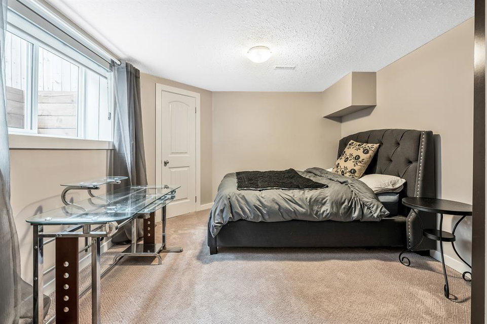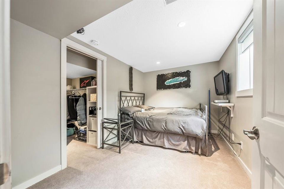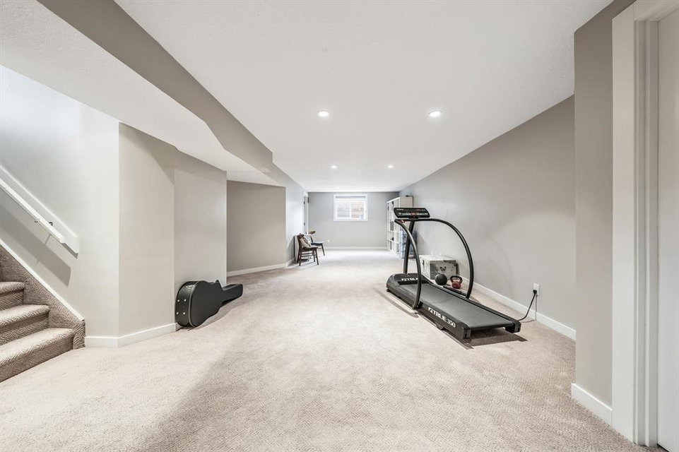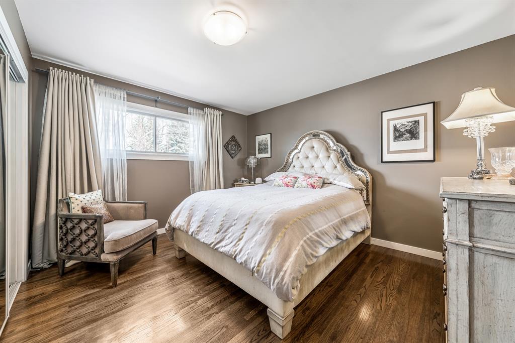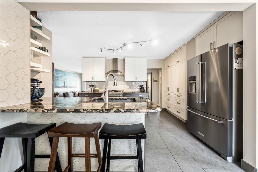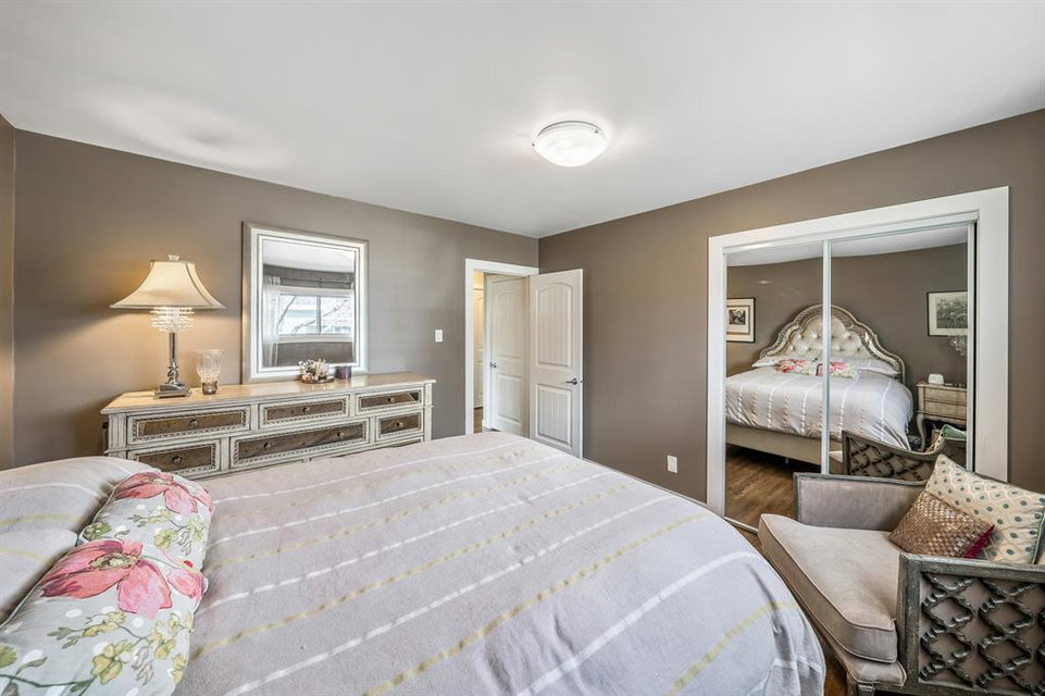 Located in the desirable community of West Haysboro, this is the home you and your family have been waiting for! Boasting over 2400 sq ft of total living space, this beautifully renovated bungalow is sure to impress. Features include 5 bedrooms plus a flex room w/ French doors, 2 full baths, hardwood and heated Italian porcelain flooring, open floor plan, an abundance of natural light, neutral tones throughout, wood fireplace w/ a striking marble/travertine surround and storage hearth and a gourmet kitchen with plenty of contrasting white/dark cabinetry, hidden storage, geometric backsplash, stone countertops, s/s appliances and gas stove. The basement has 2 bedrooms, full bath and a bright rec room with 3 newer large egress windows to really let in the light! Fully landscaped South-facing backyard with deck and lower cobblestone patio and pathway. Location is everything – steps to green space and off-leash park and minutes walk to transit, playgrounds, schools, bike paths around the reservoir, and all shops and amenities that Glenmore Landing has to offer! A great opportunity to purchase a rare larger bungalow, perfect for a family, in such an enviable area!
