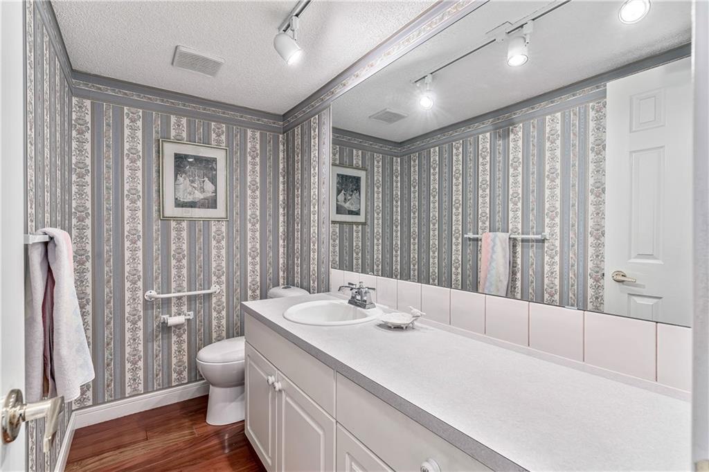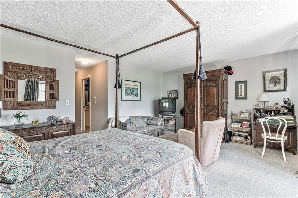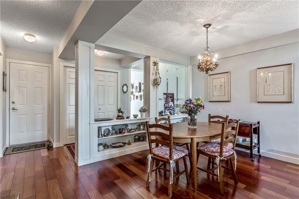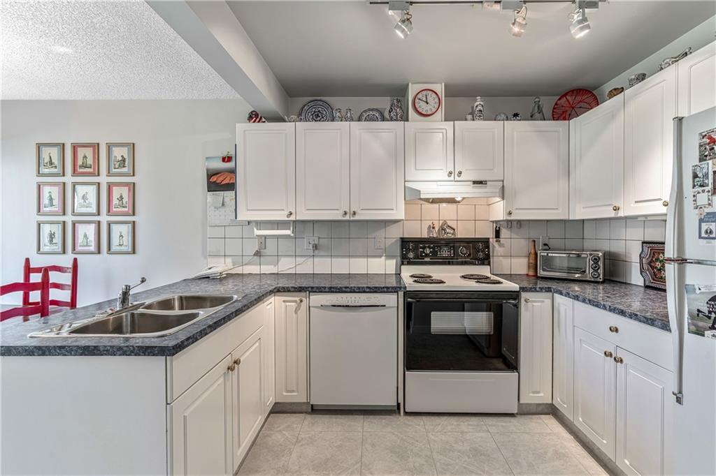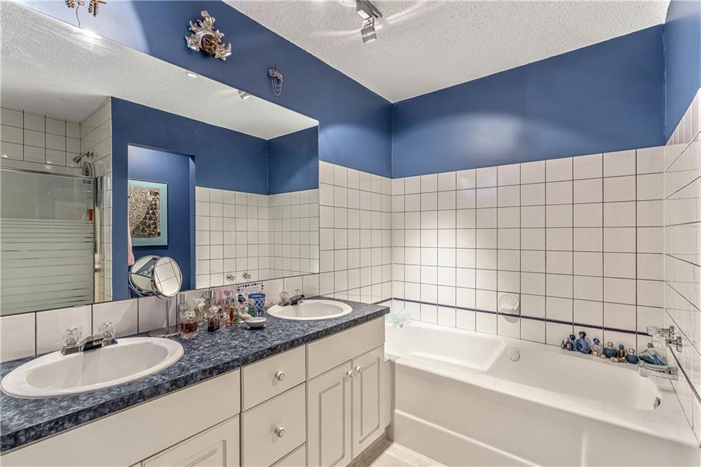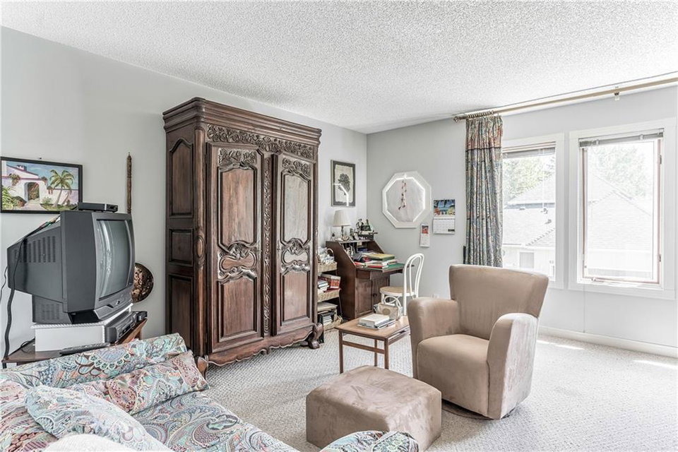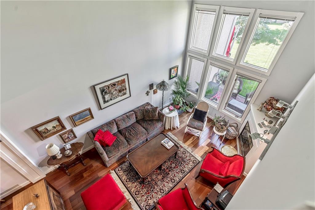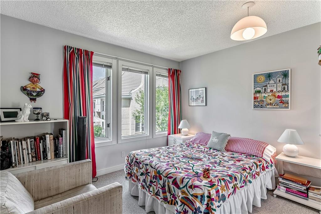 Beautiful maintained executive two storey townhouse with a “special” location backing onto a lovely treed greenspace. Rarely does a unit become available in this desireable complex just steps to Fish Creek Provincial Park which offers stunning mountain views, cycling and walking path, picnic areas-truly outstanding within a city environment. Main floor offers open vaulted living room with floor to ceiling windows for optimal sunlight, cozy corner gas fireplace, access to a wonderful west facing patio, entertaining sized dining room, functional kitchen with white cabinets, eating bar & nook, wall storage cabinets plus gleaming hardwood floors, access to double attached insulated garage, 2pc powder & stunning foyer. Upper floor features king sized master bedroom, large open loft/den (can be converted to 3rd bedroom), 3pc bath & laundry area. lower level is fully developed with 2pc bath, large rec. room, storage/workshop and storage. Great opportunity if you are downsizing to own in this classy complex!!