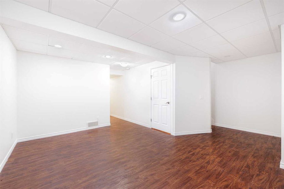 Discover your dream home in this charming two-story house, perfectly situated on a corner lot. This delightful property boasts four bedrooms, three and a half bathrooms, and an impressive 1,358 square feet of living space. The corner location allows for abundant natural light to flood the interior, creating a bright and inviting atmosphere throughout. Step inside to find a versatile layout that adapts to your family’s changing needs. The front living area offers flexibility, whether you prefer a formal living and dining combination or a spacious family room. The well-appointed kitchen features oak cabinetry, a center island, and a corner pantry, overlooking a sunny dining nook with access to a large deck—ideal for outdoor entertaining and family gatherings. Ascend the light-filled staircase to the upper level, where you’ll find two comfortable bedrooms, a full family bathroom, and a generous primary bedroom. The primary suite boasts a wall of closets and a private three-piece ensuite with a shower, providing a peaceful retreat at the end of the day. The finished basement expands your living space further, featuring a large recreation room, a fourth bedroom, and a convenient bathroom/laundry area. Outside, the fully fenced backyard offers a perfect blend of entertainment and relaxation spaces, with a wooden deck, concrete patio, and grassy areas surrounded by mature trees and plantings. Additional features include a detached garage accessible from the rear alley, a storage shed for outdoor equipment, and the convenience of no sidewalks to shovel in winter. With its excellent curb appeal and proximity to a nearby playground, this home is an ideal setting for creating lasting family memories.