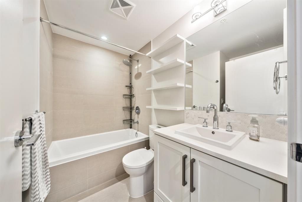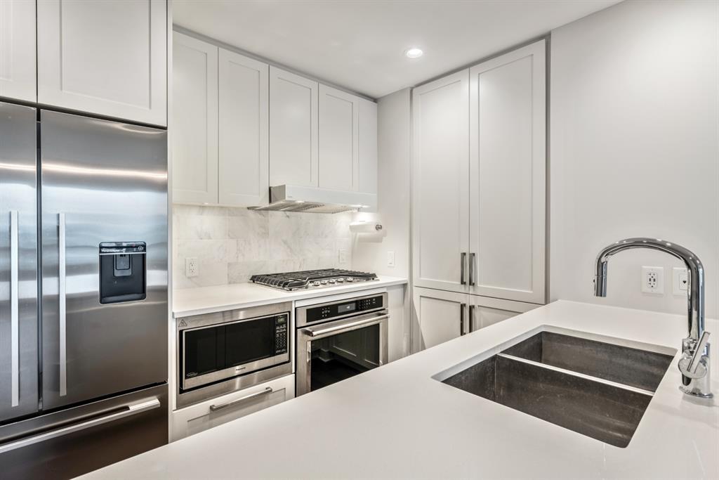 This chic and sophisticated two bedroom condo is located in the heart of Bridgeland. As soon as you enter you will notice the streamlined custom designed cabinetry in kitchen, stone counter tops, premium appliance package with a gas stove, sleek faucet with double under mount stainless steel sink, under cabinetry task lighting for ease and functionality, USB and power outlets for all your hi-tech gadgets. Both bedrooms are generous in sized, bathroom has a modern rectangular tub with rain shower head and oversized floor tile with a matte finish. The patio over looks the court and features a gas BBQ outlet. The incredible amenities in the this building include a fitness centre & yoga studio, sports lounge, movie room, relaxing outdoor patio lounge with barbeque and landscaped courtyard, golf putting green, secure storage lockers, dog wash station, and a guest suite. Desirably located close to parks, downtown, transit / LRT and the expanding list of shops – Una Pizza, Phil & Sebastian, Starbucks, Blue Star Diner, OEB, Shiki Menya, Sushi Bar Zipang, and Made by Marcus or visit the Telus Spark, Calgary Zoo and Tom Campbell Park – start living your best urban life today in trendy Bridgeland!