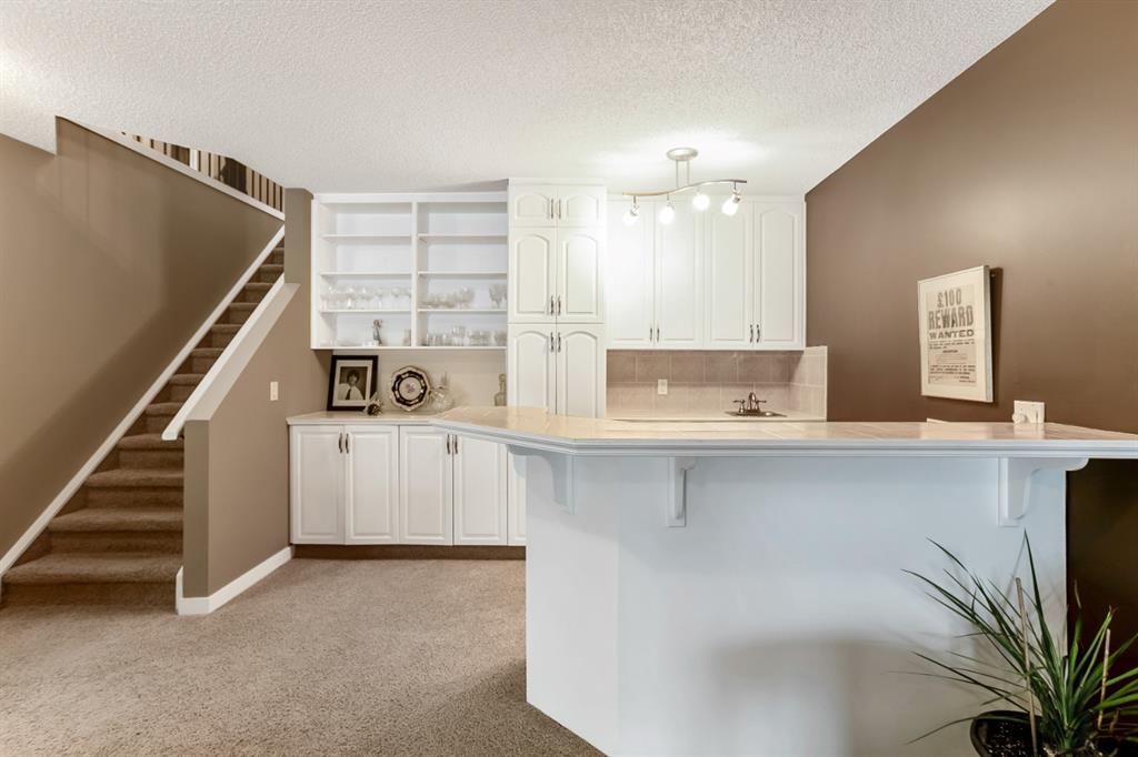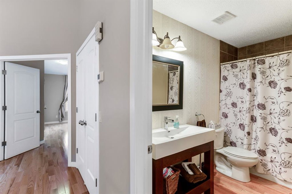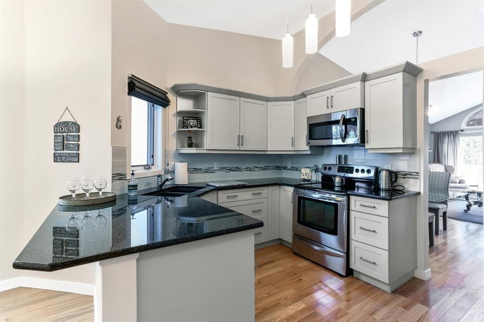 Beautiful walkout bungalow with over 2344sqft of total living space in the amazing community of Woodbine! This home offers gleaming hardwood floors, open concept floor plan, vaulted ceilings, upgraded kitchen that boasts granite countertops, stainless steel appliances, extra cabinets, island area and breakfast nook. Huge living room enjoys gas burning fireplace, dining area and patio door that open to a sunny west backyard. Two generous sized bedrooms with a full “spa like” ensuite off the primary bedroom with extra closet space. Lower level is fully finished includes oversized windows, bar area, large family room with 2nd gas fireplace, rec/games room, 3rd bedroom, 4pc bath and storage areas. Backyard features lane access, mature trees, fully fenced and raised deck. Note: Central air conditioning, double attached garage, newer roof shingles, newer hot water tank and no condo fees. Walking distance to schools, public transit, shopping, playgrounds and Fish Creek Park. Home shows extremely well with pride of ownership!