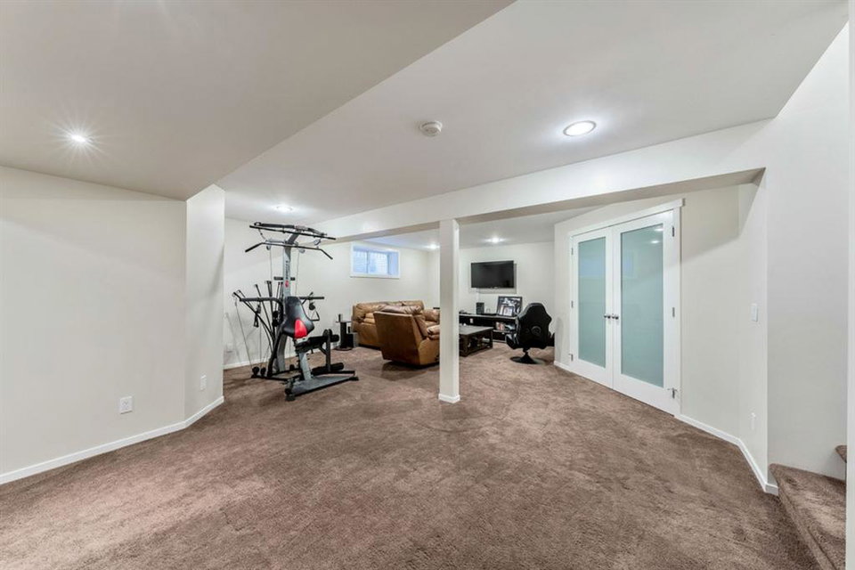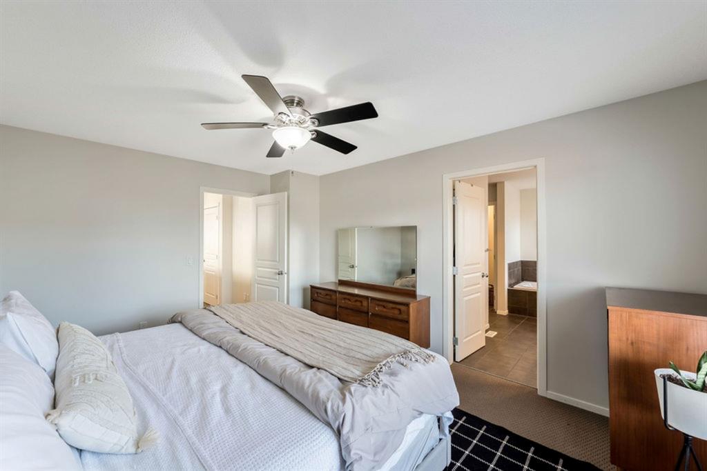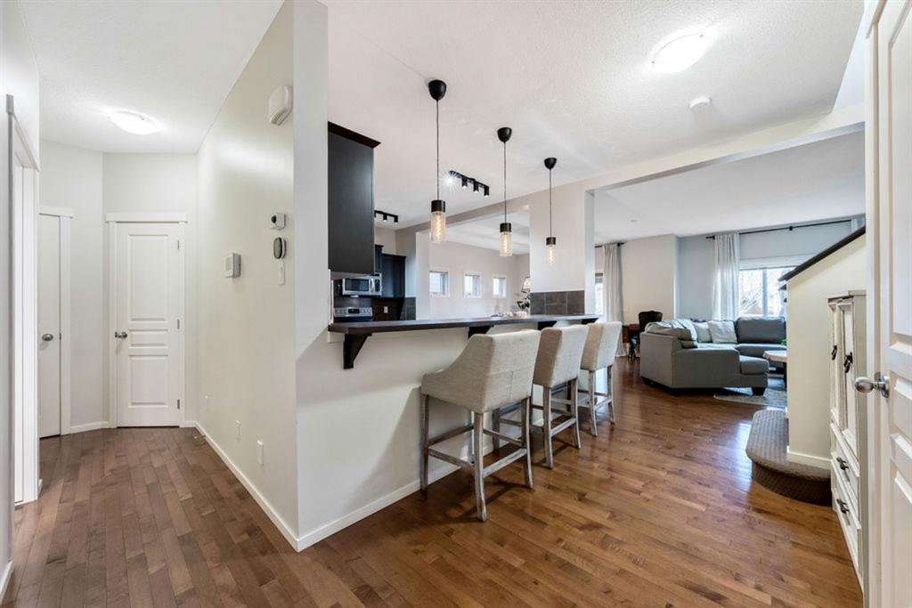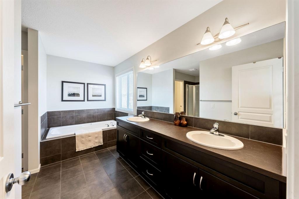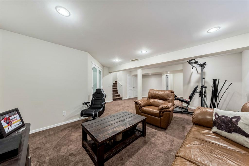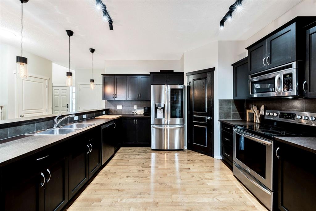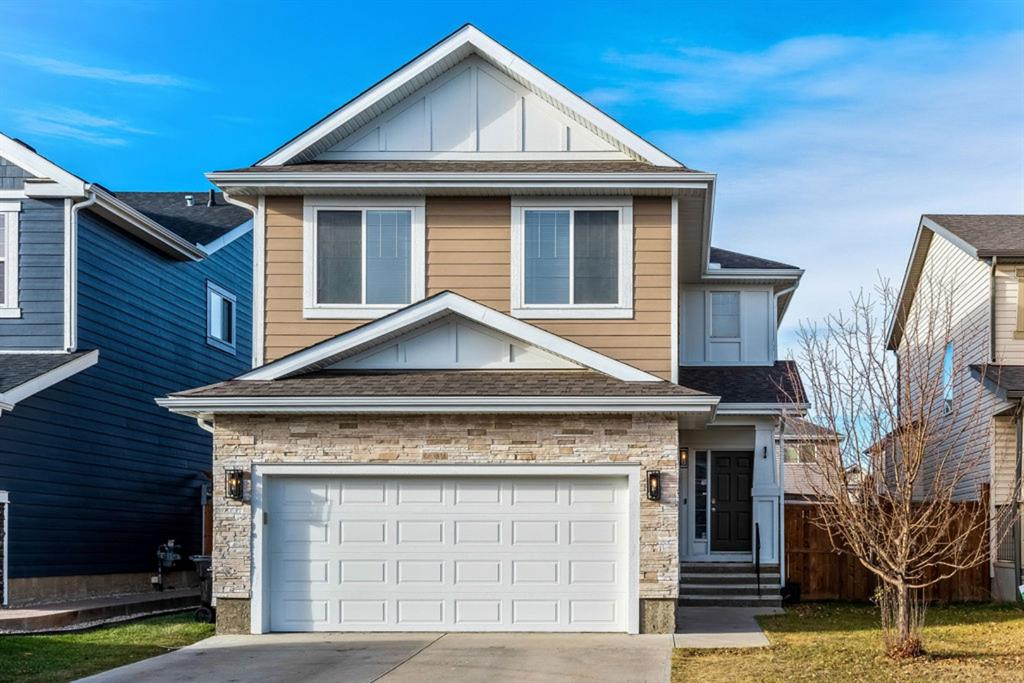 This stunning two story home has it all! Boasting over 2100 sq feet of developed living space, highlights of this impressive home include beautiful maple hardwood flooring, neutral paint, gas fireplace, spacious open layout, large kitchen with dark maple cabinetry, stainless steel appliances w/ smart fridge, corner walk-in pantry, an abundance of counter space/cabinets and an extended raised eating bar. The upper level hosts an oversized bonus room w/ coffered ceiling , laundry and 3 bedrooms, including the master with walk -in closet and 5 pc ensuite w/ soaker tub, oversized shower and long vanity with double sinks! Fully developed basement has lots of free space, an additional bedroom and bathroom. Additional interior attributes include A/C, smart thermostat, Nest doorbell cam and central vac throughout the 3 levels. The landscaped West facing backyard has an expansive two-tiered wood deck and concrete pad (under deck) and pre-wired electrical for a hot tub if you choose. The double garage is insulated, drywalled and painted with loft storage and custom shelving. Exterior all completely redone this year, featuring Hardie-board and Versetta Stone siding, and new shingles. Fabulously located on a quiet close, surrounded by shopping, parks and schools nearby!