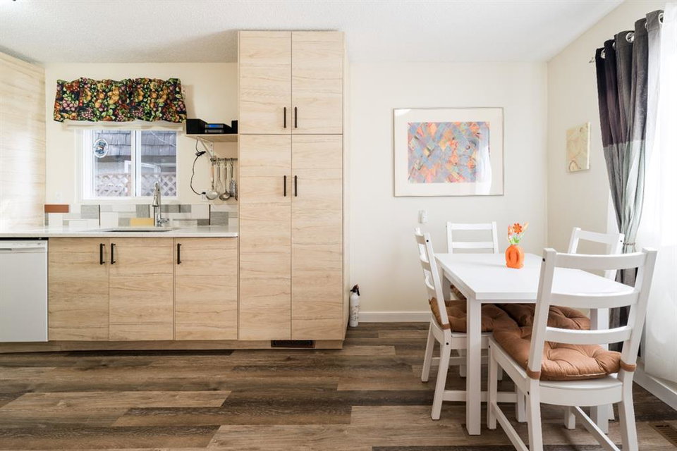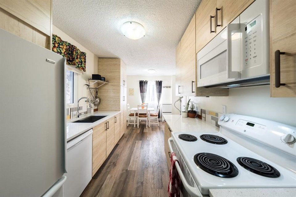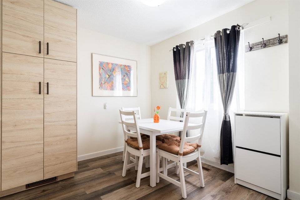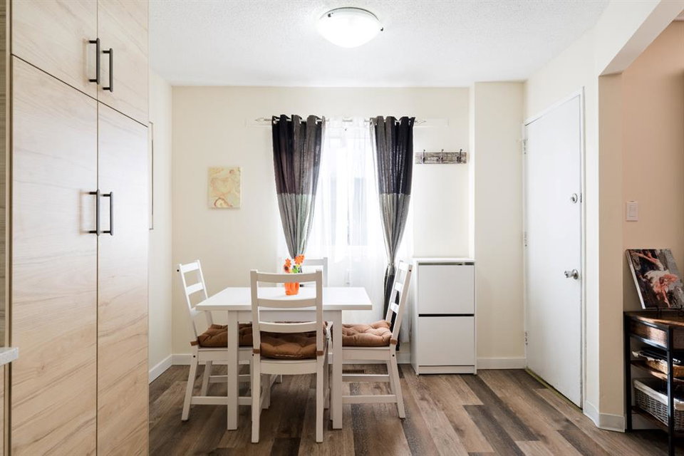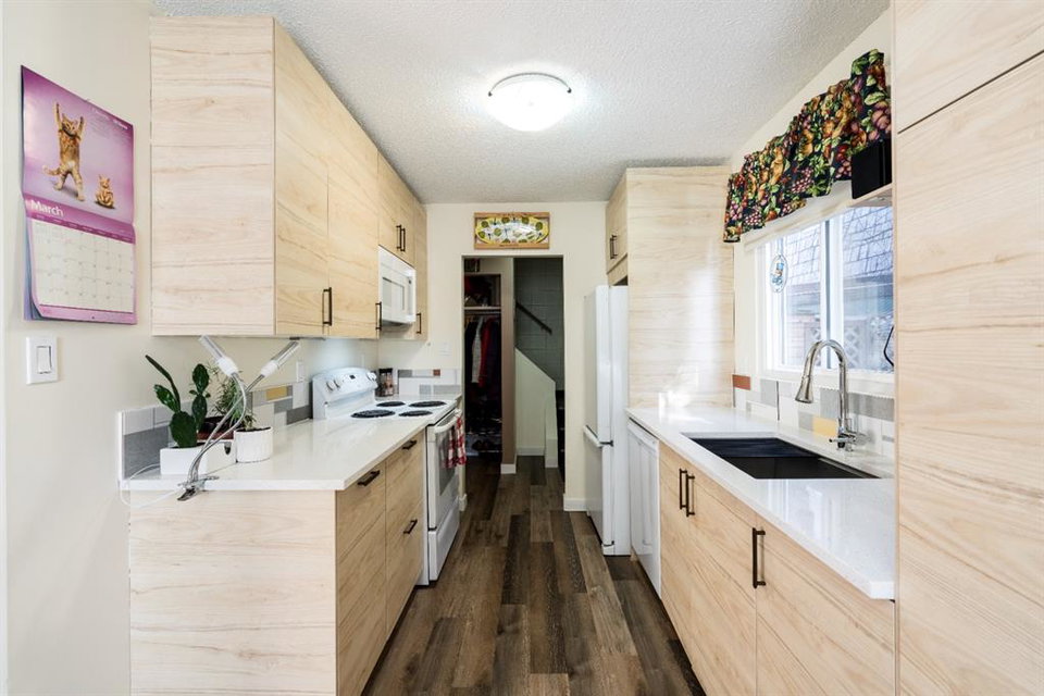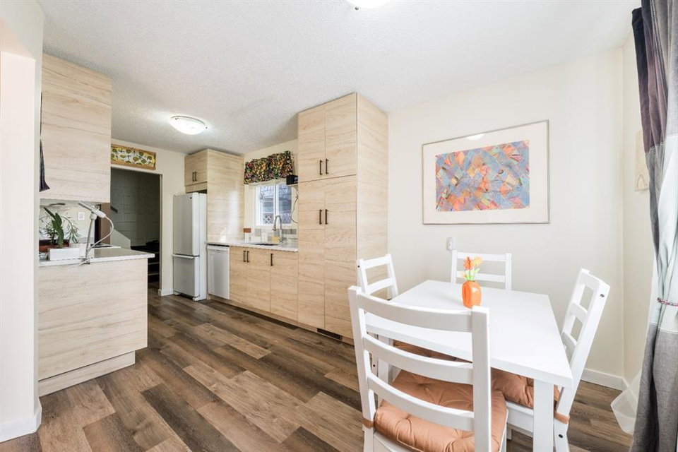 A Rare Gem! This is a beautiful-renovated home in Mint condition, at an unbelievable affordable price. Recent updates include newer gourmet kitchen with quartz counter-tops, trendy backsplash, undermount sink, newer appliances and breakfast nook. Main floor enjoys gleaming vinyl plank floors, large living room and 2pc bath. Upper-level features three generous sized bedrooms and newer 4pc bath. The basement is unfinished and awaits your personal touches. Note: NO condo fees, high efficient furnace, one parking stall and updated roof (torched membrane with extra insulation). Enjoy summer days in your west facing private fenced yard that has a wonderful garden area, stamped concrete patio & sidewalks plus parking pad. Why rent when you can own this fabulous home!