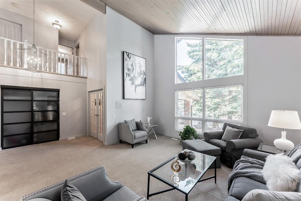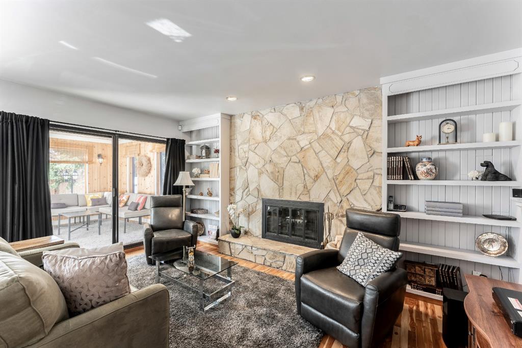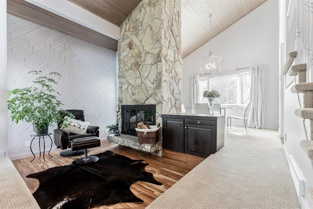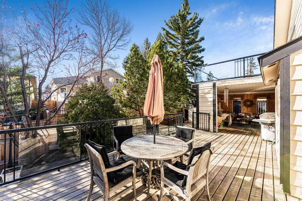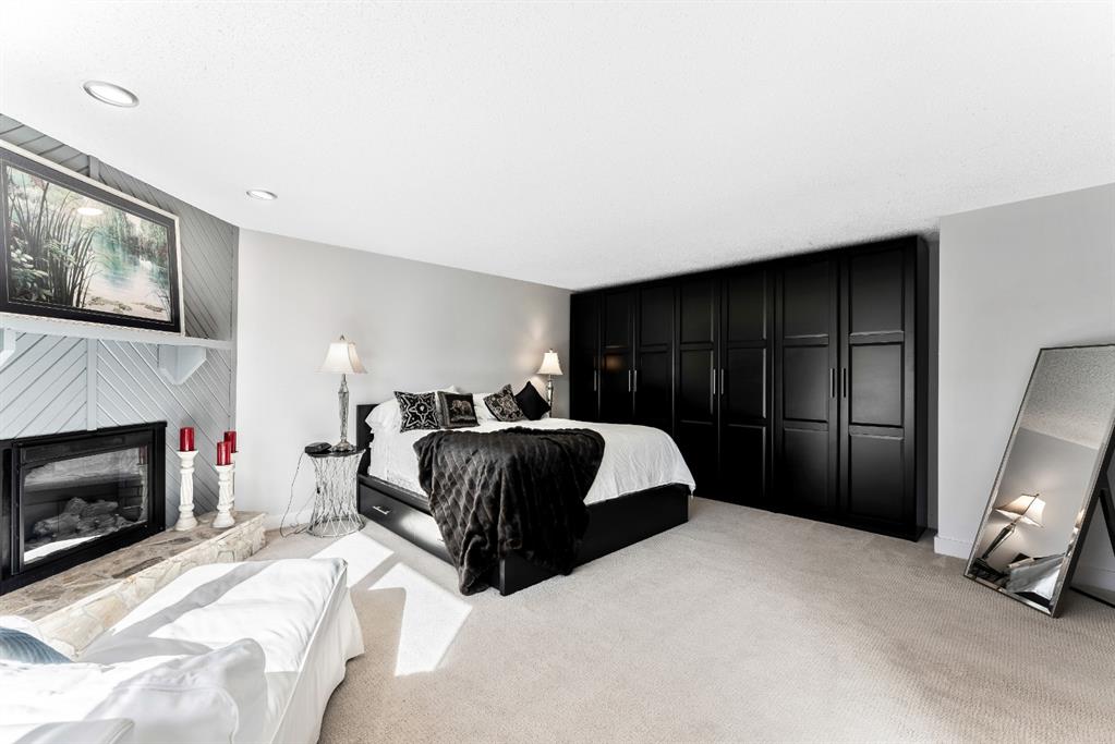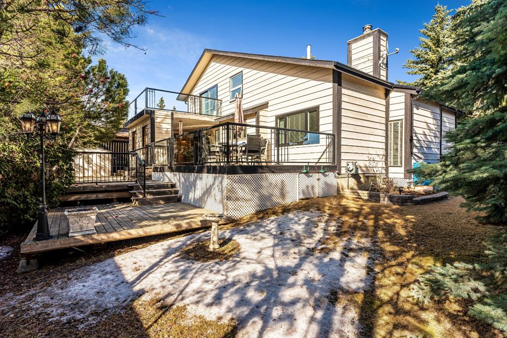 Large estate home in a fantastic quiet cul-de-sac location! This warm & inviting home has been fully renovated with the same owners for the last 20 years. Wonderful traditional design & charm in this vaulted two storey, with spacious formal living & dining rooms that feature a beautiful stone facing fireplace (gas lighted), a sunny family room that is complemented by a second fireplace (gas lighted) and built-in bookcases, large bright windows, hardwood floors, west backyard with mature trees, enjoy the 3 tiered decks with an open room with dimmable lighting and a large teak table & chairs for your outdoor enjoyment. The fully renovated and redesigned kitchen features custom cupboards to the ceiling and soft closing doors, new stainless steel fridge with water and ice maker, super quiet stainless out & in dishwasher, new gas stove with convection electric oven and extra small electric stove drawer for that extra pie or heat your serving dishes, soft warm cork flooring in the kitchen with 3 pantry’s, granite counter tops with waterfalls, huge island with seating for four and loads of storage. The upper level boasts a king sized primary bedroom with a third fireplace, custom lighted wardrobes, huge maintenance free deck. Have a relaxing soak in the large soaker tub in the spa like ensuite while watching your favorite tv program and dry off with your warm towels from your heated towel rack. The two additional bedrooms on this level are generous size and are connected with a fully renovated Jack & Jill bathroom, all shower heads in this home with temp control. The fully developed basement is perfect for a teenager or guests and features a fourth bedroom with a walk-in closet, 3pce cheater/ensuite bathroom, Wet (Swedish type) sauna, rec room and large storage area. Other great features include new roof with transferable 25 year warranty & windows (some with retractable screens), hot water tank, two newer high efficiency furnaces for dual temp control, newer hot water tank, heated garage, heated floors in all bathrooms, new washer & dryer, freshly painted throughout, all set up with panel and electrical wiring for hot tub, and a low maintenance yard. Included in the price, outdoor teak patio table with chairs, tvs in ensuite and office, and electric fireplace in basement rec room. This home shows pride of ownership an is situated on a friendly, quiet cul-de-sac, that just minutes to the Bow River Valley and steps away from parks and pathways, close to a number of CBE schools, a Spanish bilingual school as well as a French Catholic School. This is a must see!