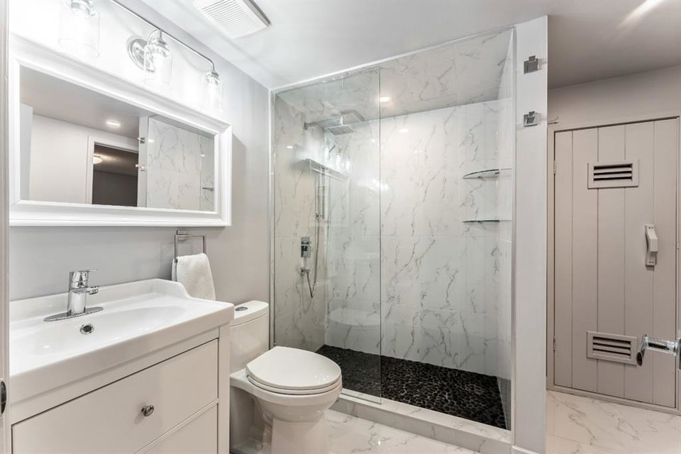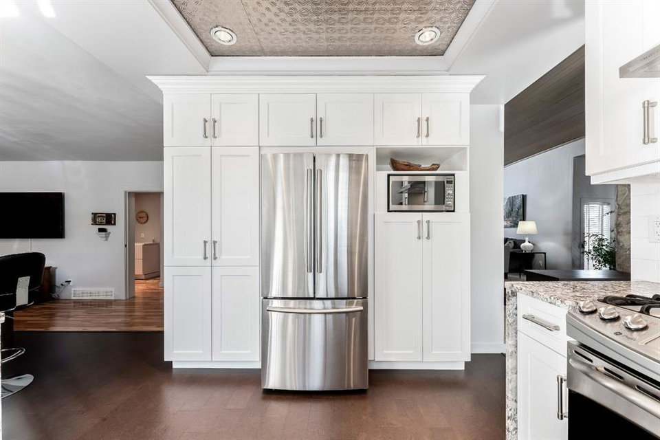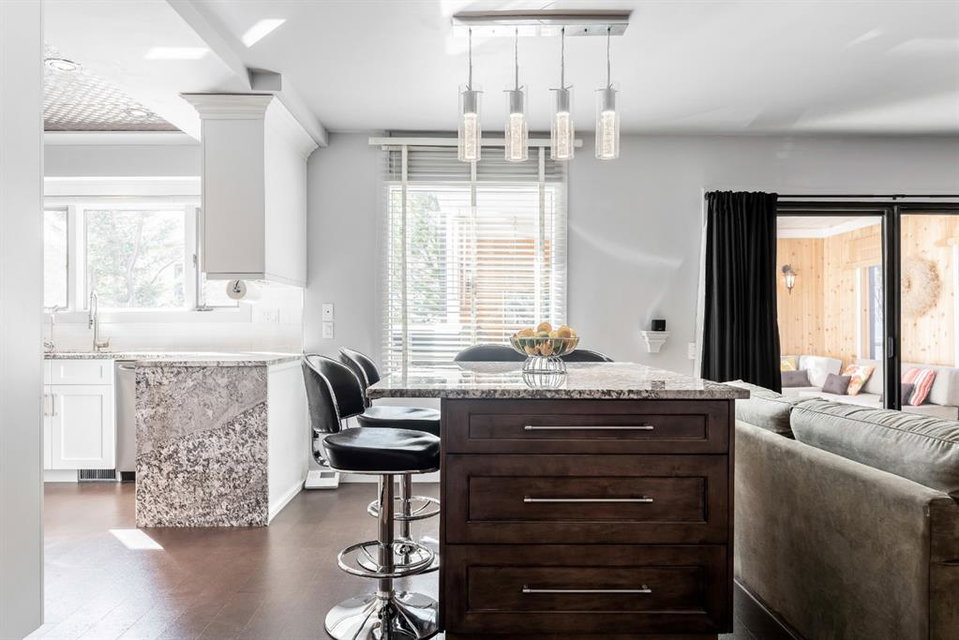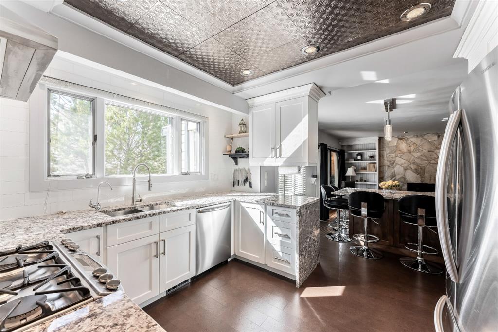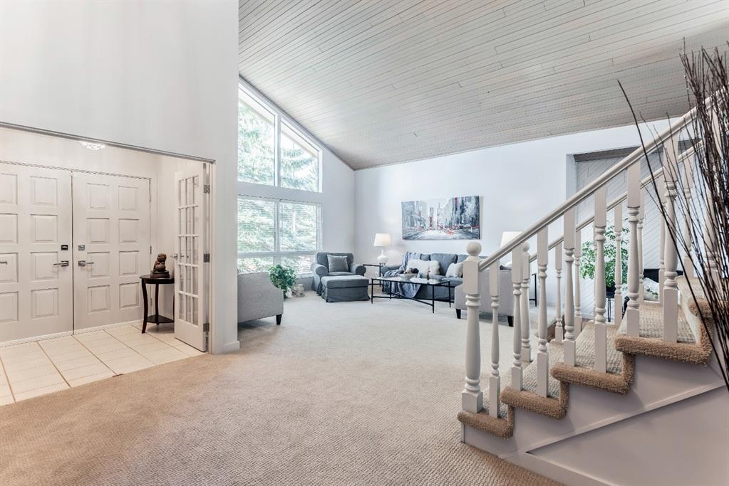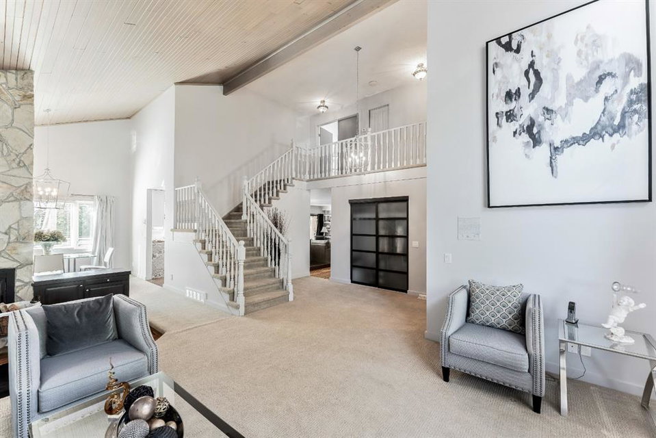 Large estate home in a fantastic quiet cul-de-sac location! This warm & inviting home has been fully renovated with the same owners for the last 20 years. Wonderful traditional design & charm in this vaulted two storey, with spacious formal living & dining rooms that feature a beautiful stone facing fireplace (gas lighted), a sunny family room that is complemented by a second fireplace (gas lighted) and built-in bookcases, large bright windows, hardwood floors, west backyard with mature trees, enjoy the 3 tiered decks with an open room with dimmable lighting and a large teak table & chairs for your outdoor enjoyment. The fully renovated and redesigned kitchen features custom cupboards to the ceiling and soft closing doors, new stainless steel fridge with water and ice maker, super quiet stainless out & in dishwasher, new gas stove with convection electric oven and extra small electric stove drawer for that extra pie or heat your serving dishes, soft warm cork flooring in the kitchen with 3 pantry’s, granite counter tops with waterfalls, huge island with seating for four and loads of storage. The upper level boasts a king sized primary bedroom with a third fireplace, custom lighted wardrobes, huge maintenance free deck. Have a relaxing soak in the large soaker tub in the spa like ensuite while watching your favorite tv program and dry off with your warm towels from your heated towel rack. The two additional bedrooms on this level are generous size and are connected with a fully renovated Jack & Jill bathroom, all shower heads in this home with temp control. The fully developed basement is perfect for a teenager or guests and features a fourth bedroom with a walk-in closet, 3pce cheater/ensuite bathroom, Wet (Swedish type) sauna, rec room and large storage area. Other great features include new roof with transferable 25 year warranty & windows (some with retractable screens), hot water tank, two newer high efficiency furnaces for dual temp control, newer hot water tank, heated garage, heated floors in all bathrooms, new washer & dryer, freshly painted throughout, all set up with panel and electrical wiring for hot tub, and a low maintenance yard. Included in the price, outdoor teak patio table with chairs, tvs in ensuite and office, and electric fireplace in basement rec room. This home shows pride of ownership an is situated on a friendly, quiet cul-de-sac, that just minutes to the Bow River Valley and steps away from parks and pathways, close to a number of CBE schools, a Spanish bilingual school as well as a French Catholic School. This is a must see!