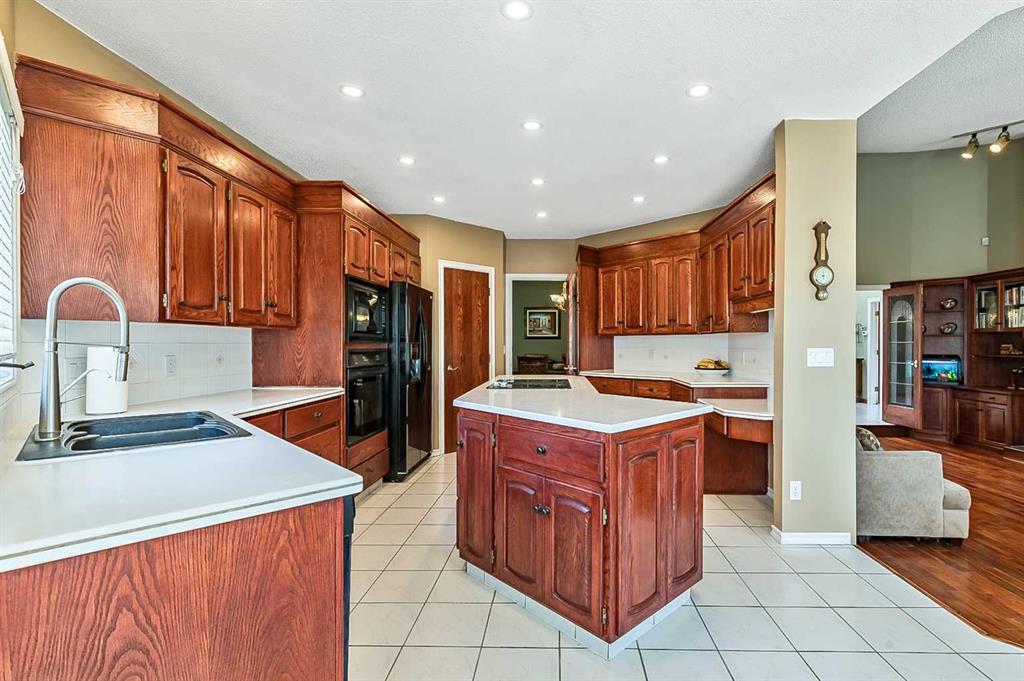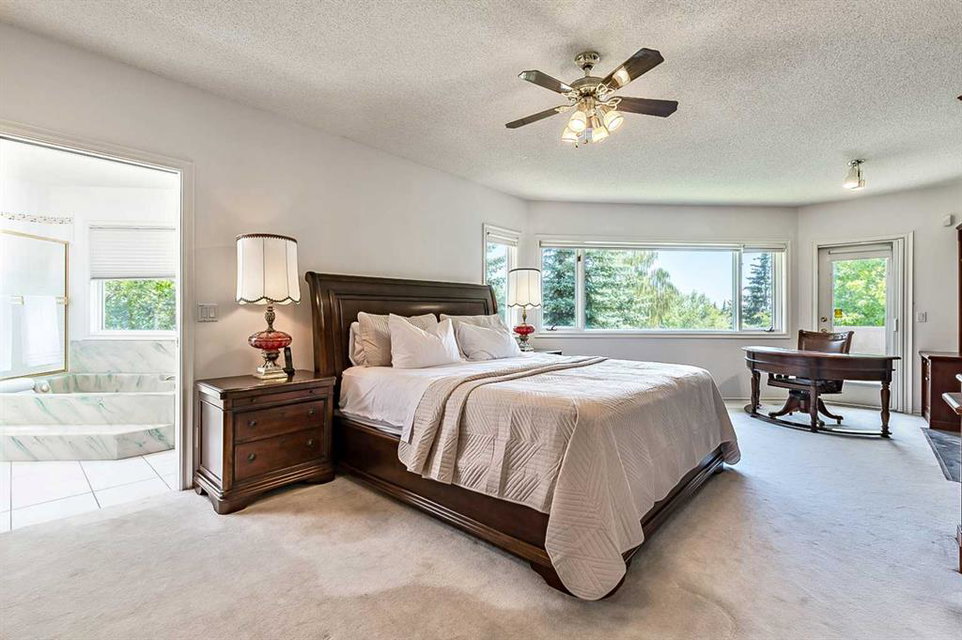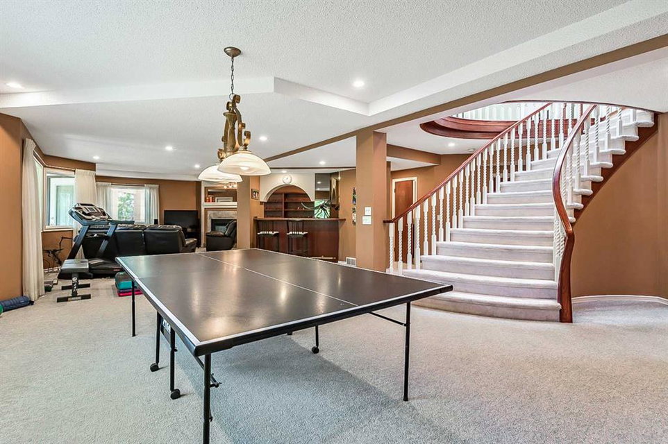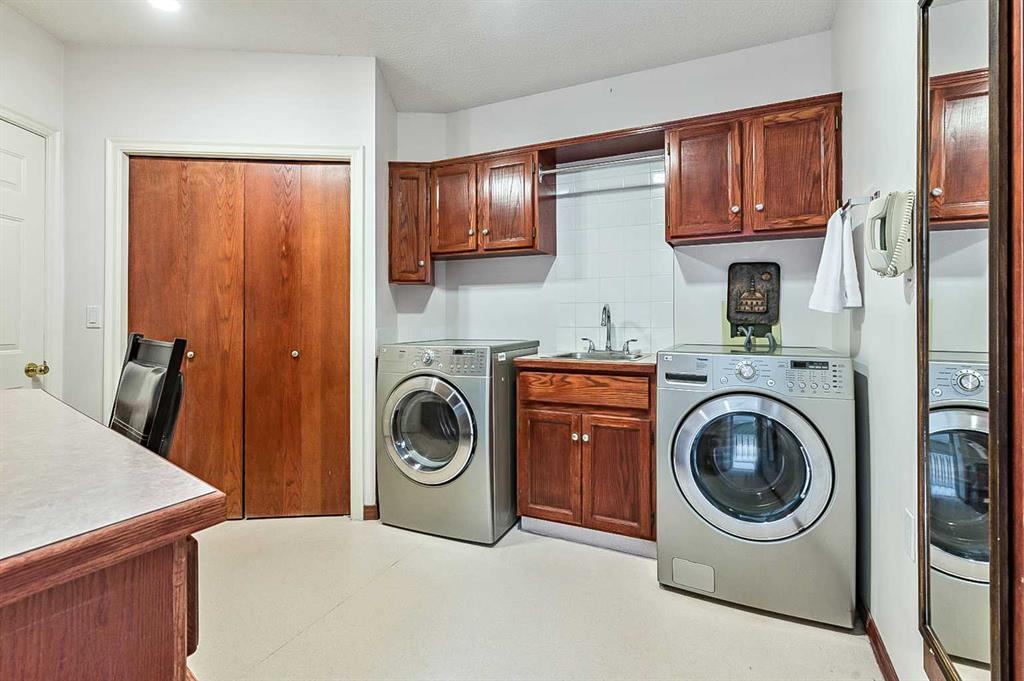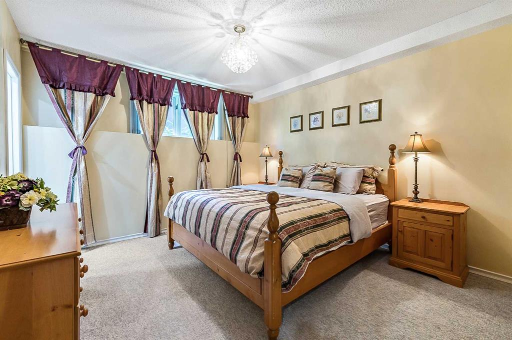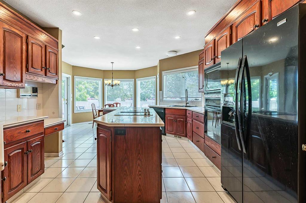 ONE OF A KIND!! Large Beautiful Bungalow, nestled in the prestigious Canyon Meadows Estates. This custom-built home offers 4,378 sq ft of living space and is a perfect blend of luxury and functionality, ideal for both family living and entertaining. As you step inside, you’re greeted by a grand staircase leading to the lower level, setting the tone for the impressive layout that awaits. The heart of this home is the spacious great room, featuring a see-through fireplace surrounded by custom built-in shelves and cupboards, all complemented by lovely hardwood flooring. The primary bedroom is a true retreat with custom built-in wall shelves and cupboards, and direct access to an upper deck. The luxurious five-piece ensuite bathroom includes a makeup vanity, while a walk-in custom closet provides ample storage. Culinary enthusiasts will delight in the large gourmet kitchen, complete with a pantry and breakfast nook. The countertop stove adds a unique touch to this well-appointed space. For more formal occasions, a separate dining room is perfect for hosting dinner parties. The main floor also features a second bedroom, currently used as an office, offering flexibility for your needs. A laundry room and mudroom combination include a sink, built-in ironing table, and abundant storage space near the front entrance. Descending to the lower walkout level, you’ll find 9-foot ceilings and a unique sub-basement feature, ideal for extra storage and maintaining a cozy temperature. This bright and spacious area includes three additional bedrooms, two bathrooms (one being an ensuite), and a combo washer-dryer in one of the bathrooms. An entertainment area with a wet bar leads to a charming sunroom, perfect for relaxation. Outside, the property boasts a private, mature yard in a quiet cul-de-sac. Car enthusiasts will appreciate the attached four-car heated garage, a mechanic’s dream with ample storage and an oversized aggregate driveway. Located within walking distance to schools of all levels, Fish Creek Park, public transit (including LRT), public swimming pool, and tennis courts, this home offers convenience and recreation at your doorstep. Easy access to downtown and the ring road adds to its appeal. With its thoughtful design, luxurious features, and prime location. This property is more than just a house – it’s a home waiting for your personal touch. Early possession is available if needed, so don’t miss this opportunity to make this beautiful bungalow your own! Could be AN IDEAL MULTIPLE GENERATIONAL FAMILY HOME featuring 5 bedrooms ,4 full bathrooms and 4 car garage.