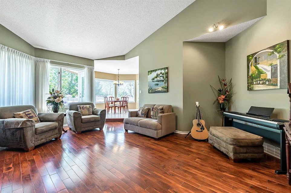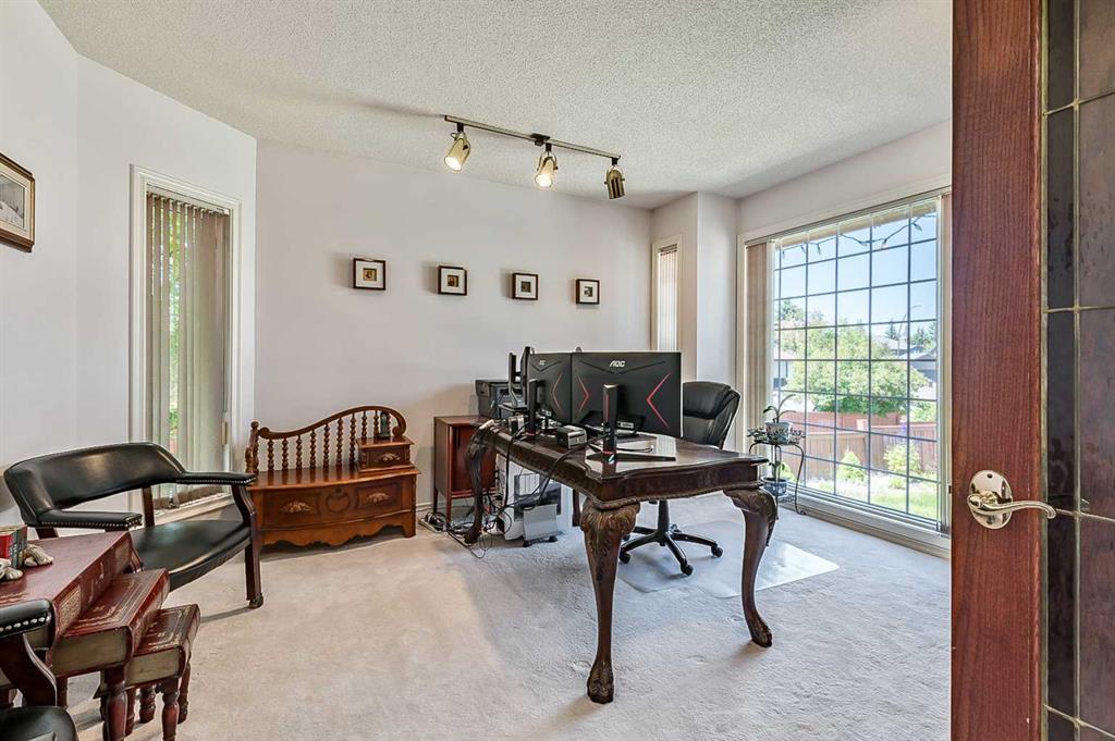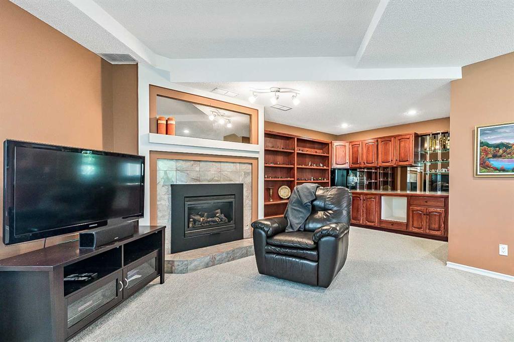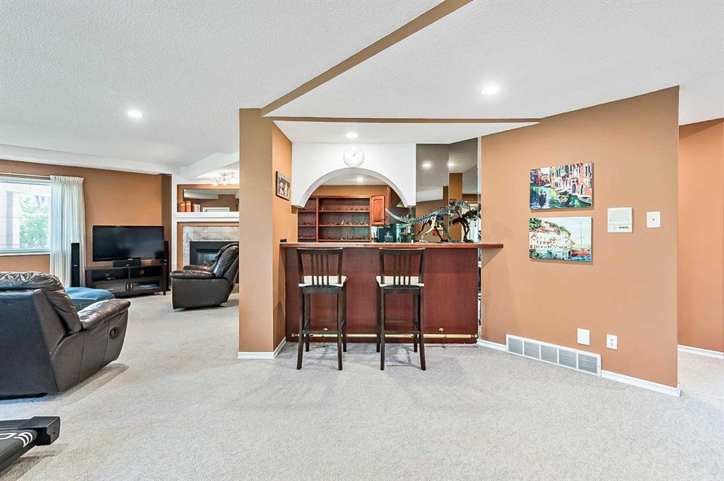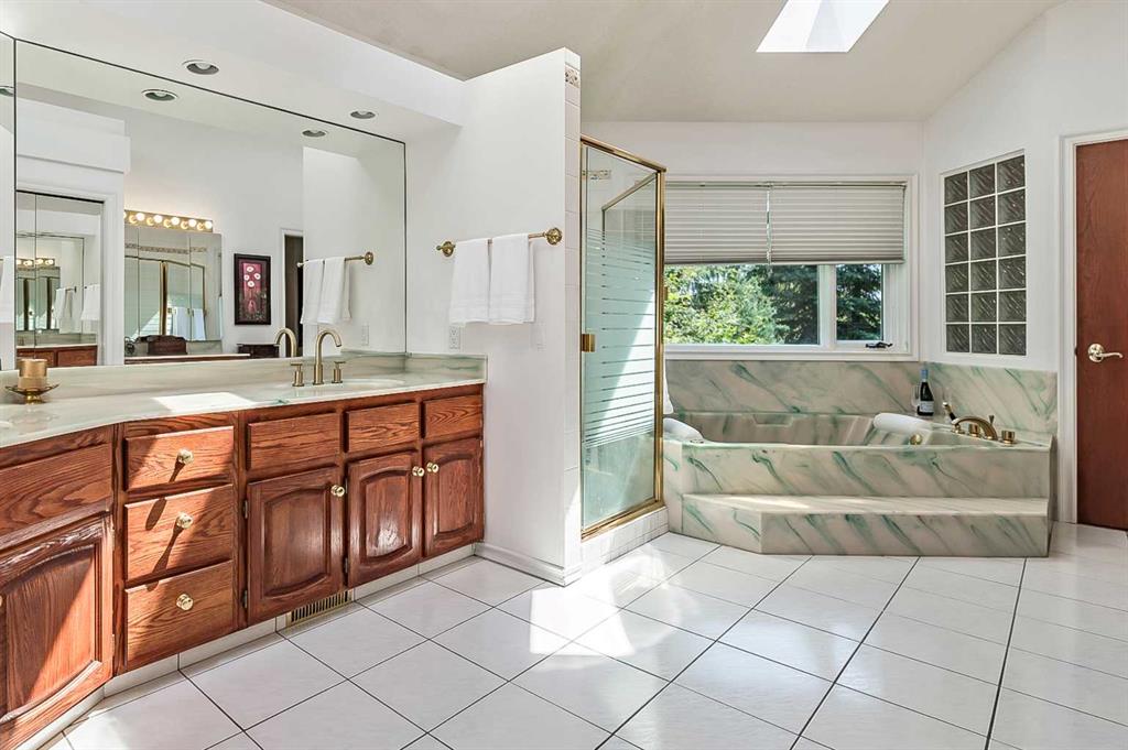 ONE OF A KIND!! Large Beautiful Bungalow, nestled in the prestigious Canyon Meadows Estates. This custom-built home offers 4,378 sq ft of living space and is a perfect blend of luxury and functionality, ideal for both family living and entertaining. As you step inside, you’re greeted by a grand staircase leading to the lower level, setting the tone for the impressive layout that awaits. The heart of this home is the spacious great room, featuring a see-through fireplace surrounded by custom built-in shelves and cupboards, all complemented by lovely hardwood flooring. The primary bedroom is a true retreat with custom built-in wall shelves and cupboards, and direct access to an upper deck. The luxurious five-piece ensuite bathroom includes a makeup vanity, while a walk-in custom closet provides ample storage. Culinary enthusiasts will delight in the large gourmet kitchen, complete with a pantry and breakfast nook. The countertop stove adds a unique touch to this well-appointed space. For more formal occasions, a separate dining room is perfect for hosting dinner parties. The main floor also features a second bedroom, currently used as an office, offering flexibility for your needs. A laundry room and mudroom combination include a sink, built-in ironing table, and abundant storage space near the front entrance. Descending to the lower walkout level, you’ll find 9-foot ceilings and a unique sub-basement feature, ideal for extra storage and maintaining a cozy temperature. This bright and spacious area includes three additional bedrooms, two bathrooms (one being an ensuite), and a combo washer-dryer in one of the bathrooms. An entertainment area with a wet bar leads to a charming sunroom, perfect for relaxation. Outside, the property boasts a private, mature yard in a quiet cul-de-sac. Car enthusiasts will appreciate the attached four-car heated garage, a mechanic’s dream with ample storage and an oversized aggregate driveway. Located within walking distance to schools of all levels, Fish Creek Park, public transit (including LRT), public swimming pool, and tennis courts, this home offers convenience and recreation at your doorstep. Easy access to downtown and the ring road adds to its appeal. With its thoughtful design, luxurious features, and prime location. This property is more than just a house – it’s a home waiting for your personal touch. Early possession is available if needed, so don’t miss this opportunity to make this beautiful bungalow your own! Could be AN IDEAL MULTIPLE GENERATIONAL FAMILY HOME featuring 5 bedrooms ,4 full bathrooms and 4 car garage.