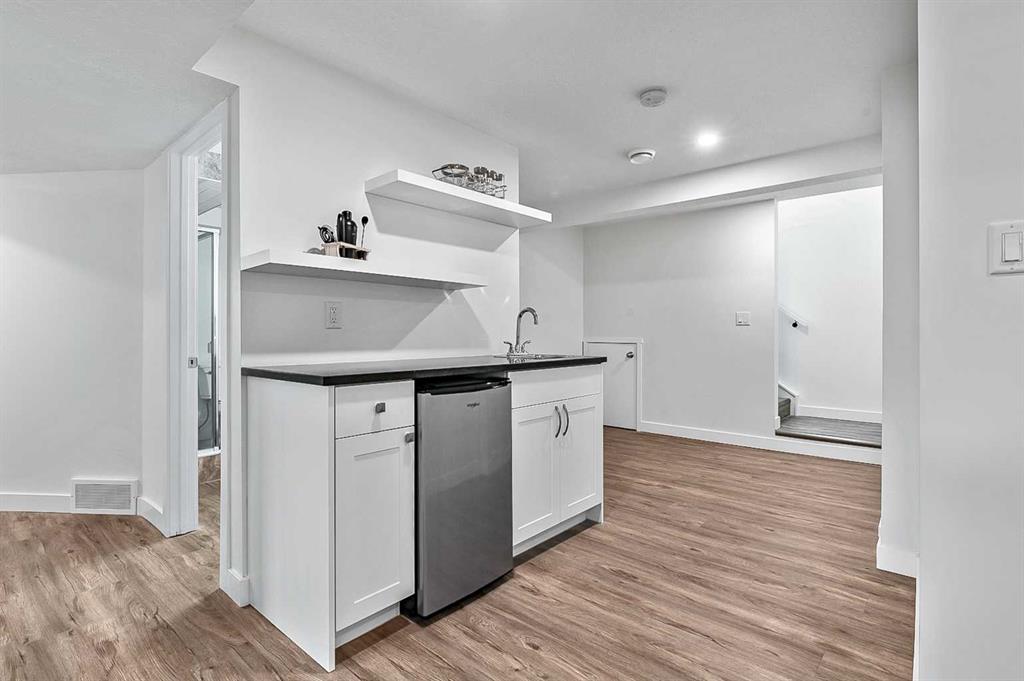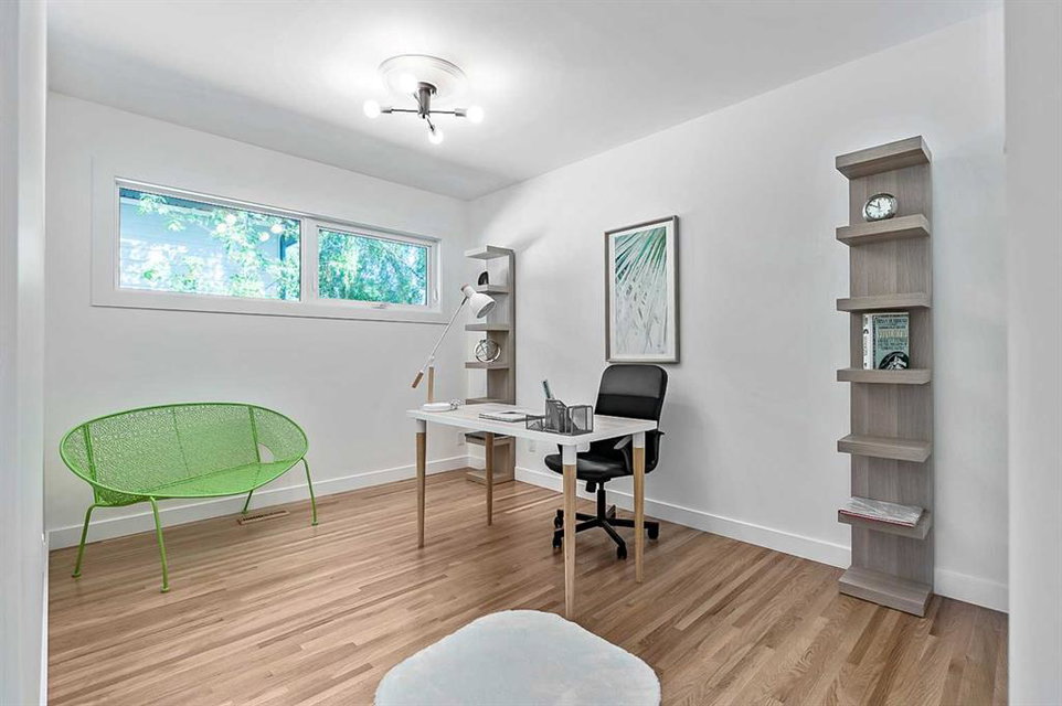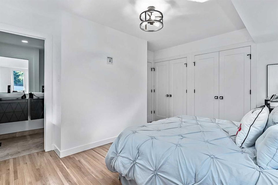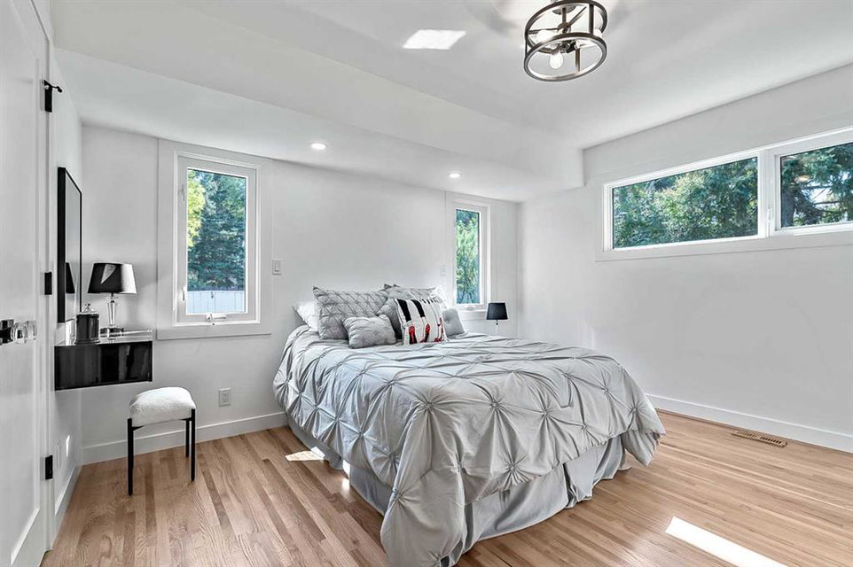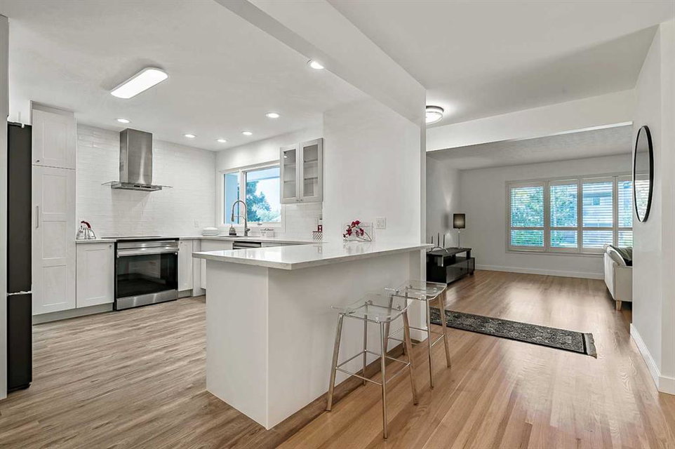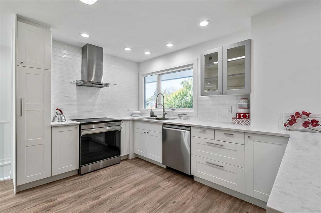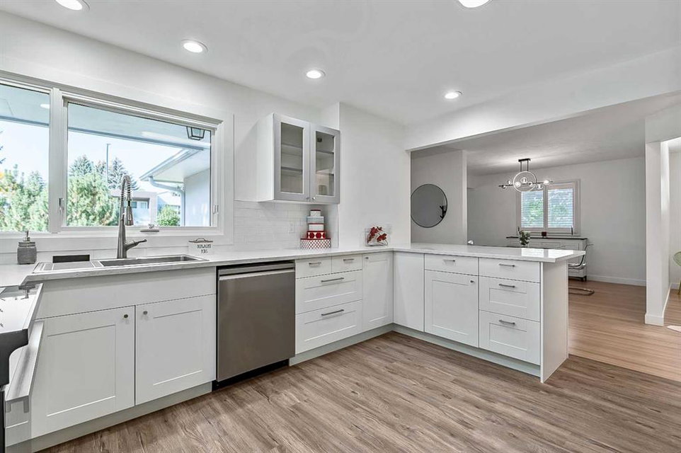 Discover unparalleled elegance in this extensively renovated executive bungalow, gracefully positioned on an extraordinary 70×100 lot within the prestigious Chinook Park community. This meticulously restored sanctuary spans nearly 2400 square feet of luminous, thoughtfully designed living space that seamlessly marries contemporary sophistication with timeless architectural integrity. The main floor unveils stunning hardwood flooring throughout, establishing an effortless flow between sophisticated living spaces bathed in natural light. The culinary centerpiece features a completely reimagined kitchen showcasing sleek contemporary cabinetry, premium stainless steel appliances, expansive quartz countertops, and peninsula seating that facilitates both intimate gatherings and grand entertaining. The private primary suite provides a tranquil retreat with dual closets and an exquisitely updated four-piece ensuite. A generous secondary bedroom is ideal for children or accommodates guests. An inspiring home office completes the main level. The thoughtfully finished lower level expands possibilities with a spacious family room perfect for cinematic evenings, complemented by two additional bedrooms and a substantial laundry storage area. The magnificent lot presents endless opportunities for outdoor enjoyment, highlighted by an oversized patio ideal for basking in summer evenings or hosting memorable gatherings. Every detail reflects meticulous maintenance and sophisticated upgrades throughout this distinguished residence. This remarkable property represents a rare opportunity to experience refined living in one of Calgary’s most coveted neighborhoods, where modern luxury harmonizes beautifully with established community charm and convenient urban accessibility.