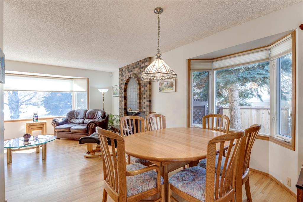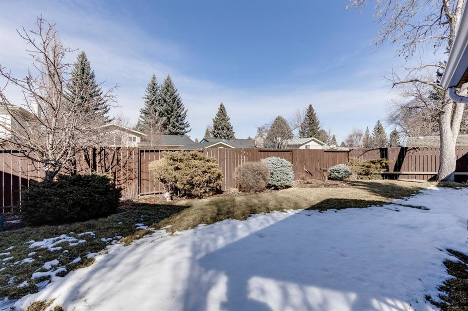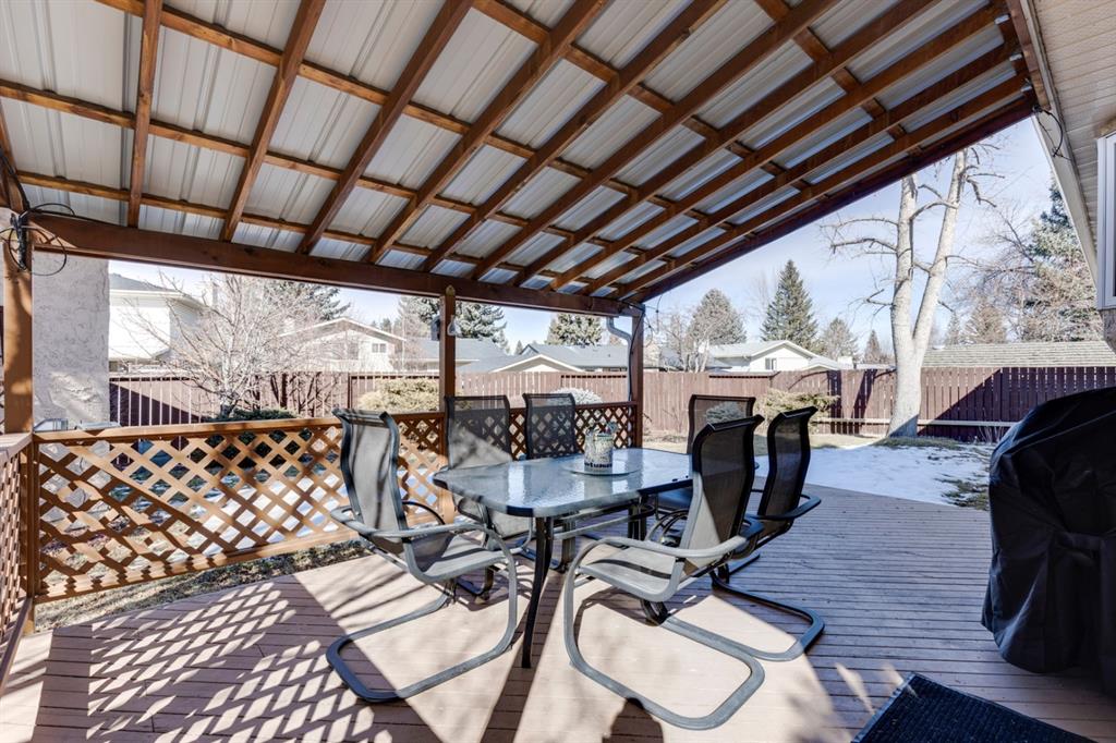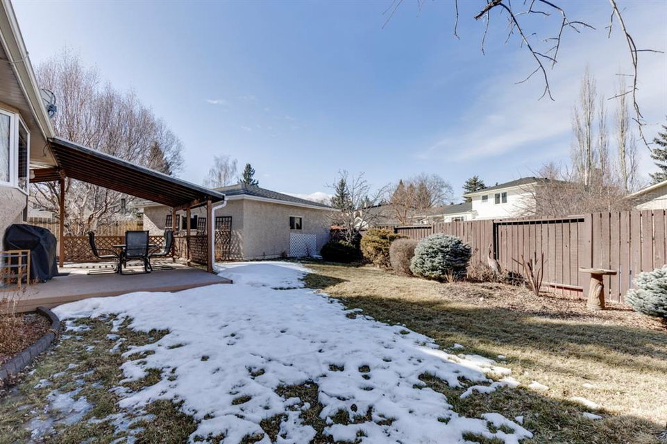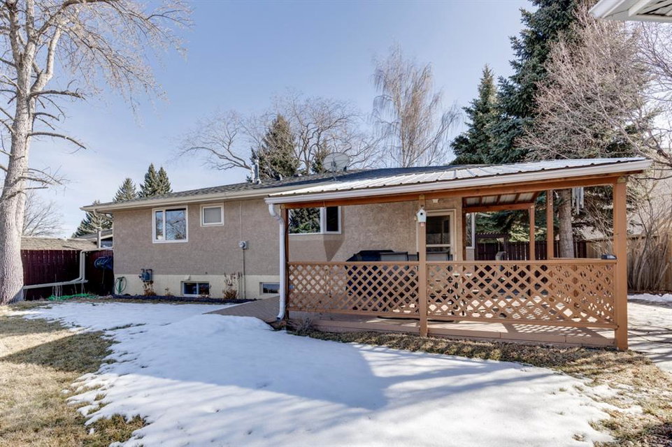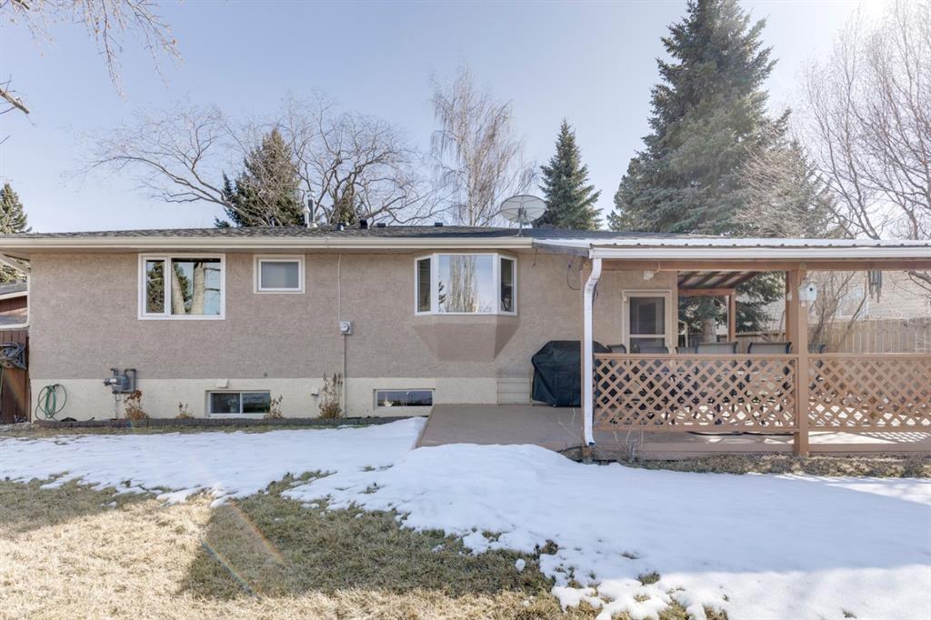 Rarely does a home become available for a new family on this most desirable street in the heart of Canyon Meadows. This home has been meticulously cared for and has had numerous upgrades thru the years. Main level boasts three generous sized bedrooms, master bedroom has a stunning new 3pce ensuite. Kitchen has been remodeled and features newer appliances, loads of custom cupboards and counter space, plus a garden box window at the sink so that you can enjoy the lovely backyard. Bright airy living room is highlighted with brick faced fireplace, entertaining sized dining area, gleaming onsite finished hardwood flooring. Excellent lower level development including a second gas burning fireplace in this open designed floor plan, wet bar with extra counter-top and storage, a huge fourth bedroom has oversized windows, 3pce bathroom, den/office, laundry room, replaced newer furnace. Home sits on a large pie shaped matured treed fully fenced lot. Has a covered patio that’s ideal for summer entertaining or just sitting and listening to all the birds in the super quiet neighborhood. All the windows on the main level have been replaced and the shingles as well. Walking distance to LRT, all levels of schools, two communities halls, two outdoor ice rinks, Canyon Meadows indoor pool/fitness centre, tennis counters, numerous parks and Fish Creek Park. Easy access to downtown, major shopping and all amenities. This is an opportunity to own this beautiful home with an outstanding location! It just doesn’t get much better.