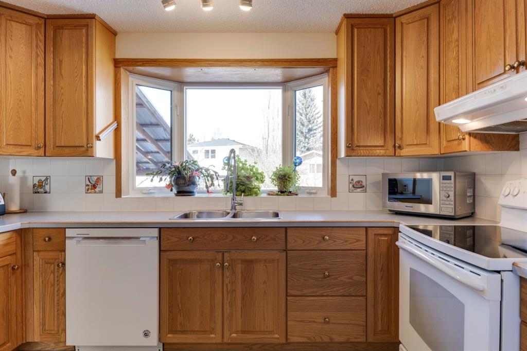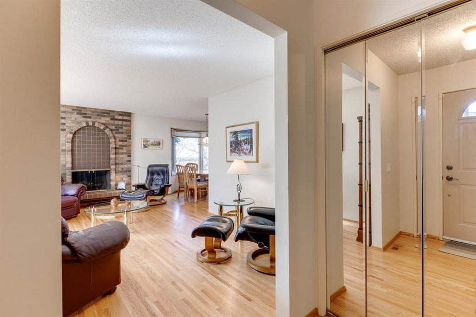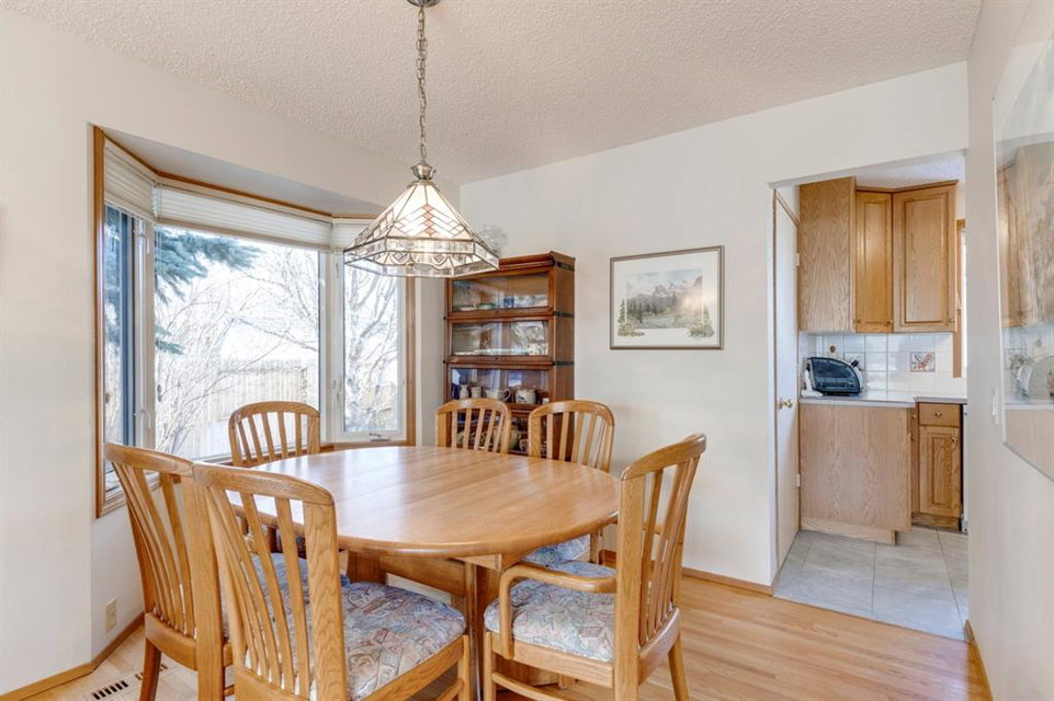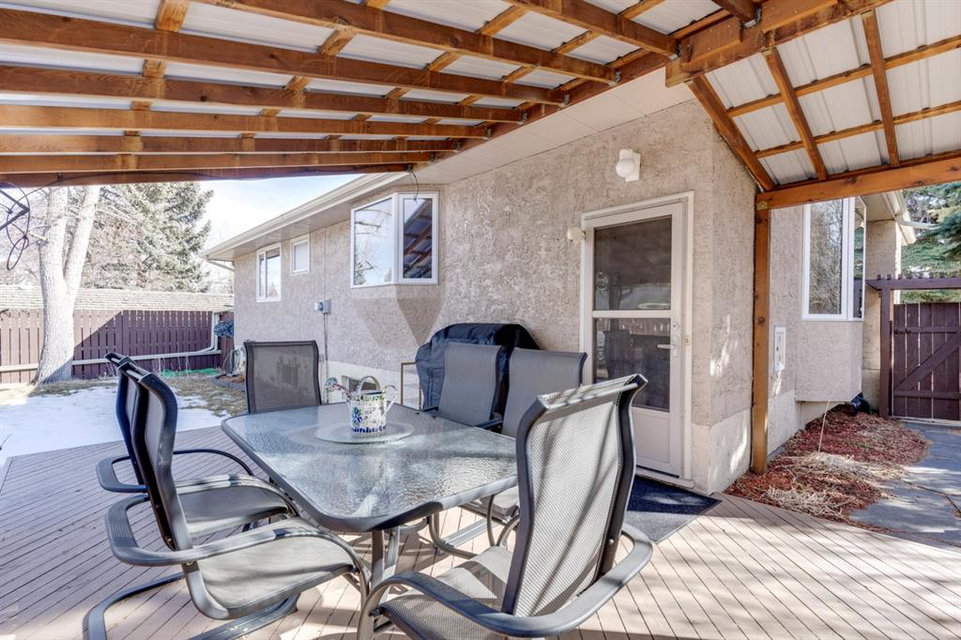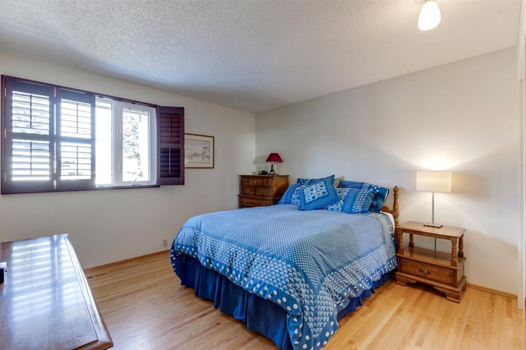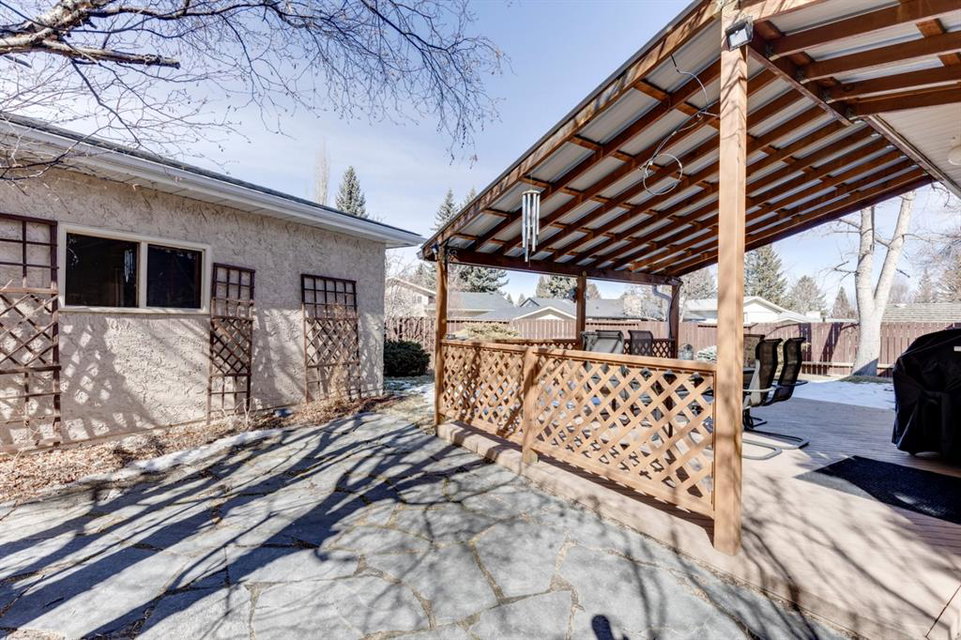 Rarely does a home become available for a new family on this most desirable street in the heart of Canyon Meadows. This home has been meticulously cared for and has had numerous upgrades thru the years. Main level boasts three generous sized bedrooms, master bedroom has a stunning new 3pce ensuite. Kitchen has been remodeled and features newer appliances, loads of custom cupboards and counter space, plus a garden box window at the sink so that you can enjoy the lovely backyard. Bright airy living room is highlighted with brick faced fireplace, entertaining sized dining area, gleaming onsite finished hardwood flooring. Excellent lower level development including a second gas burning fireplace in this open designed floor plan, wet bar with extra counter-top and storage, a huge fourth bedroom has oversized windows, 3pce bathroom, den/office, laundry room, replaced newer furnace. Home sits on a large pie shaped matured treed fully fenced lot. Has a covered patio that’s ideal for summer entertaining or just sitting and listening to all the birds in the super quiet neighborhood. All the windows on the main level have been replaced and the shingles as well. Walking distance to LRT, all levels of schools, two communities halls, two outdoor ice rinks, Canyon Meadows indoor pool/fitness centre, tennis counters, numerous parks and Fish Creek Park. Easy access to downtown, major shopping and all amenities. This is an opportunity to own this beautiful home with an outstanding location! It just doesn’t get much better.
