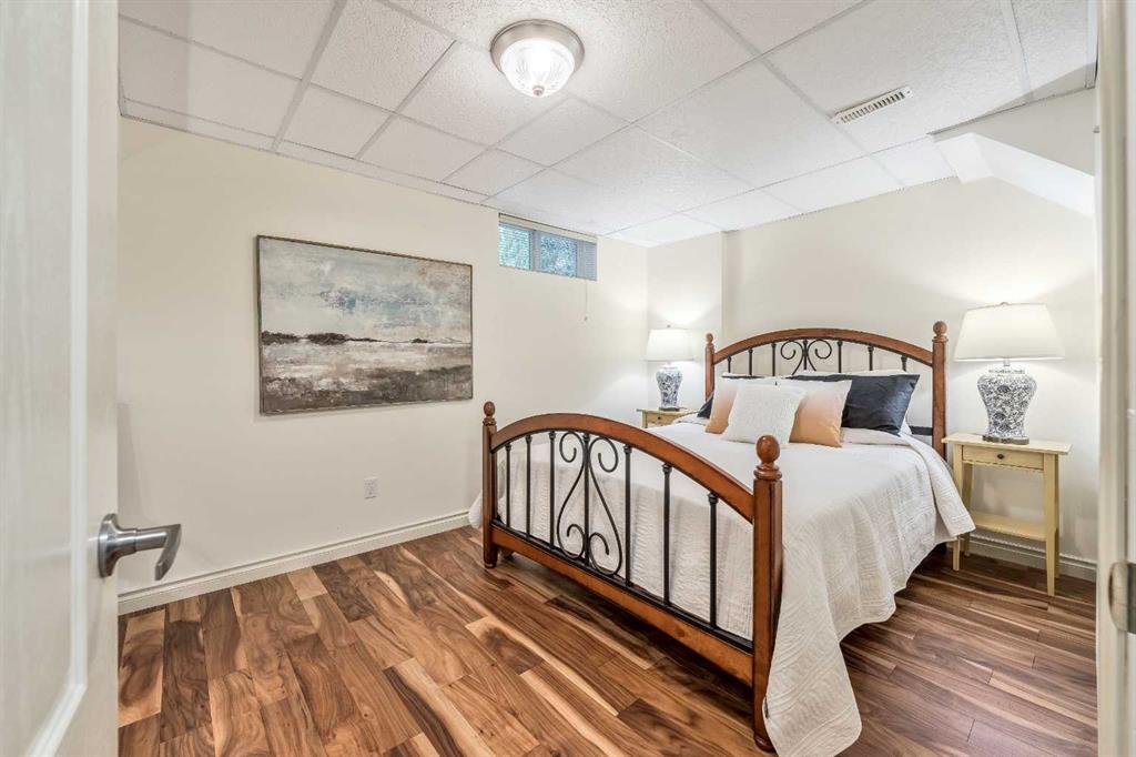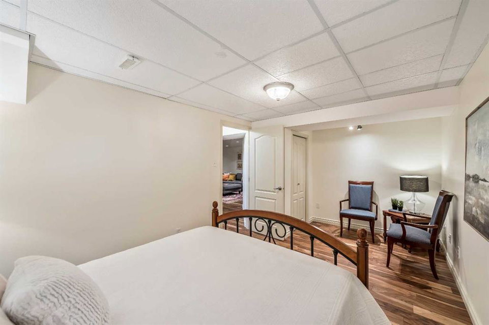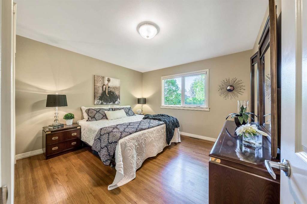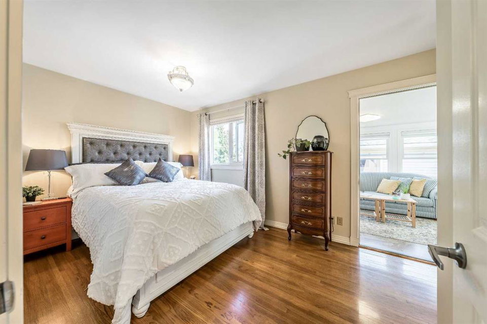 Nestled in a highly convenient location! With quick and seamless access to downtown, you can enjoy all the vibrant amenities while still embracing the serenity of a residential neighborhood. This beautifully updated bungalow is on one of the best streets in the community. The home has been extensively renovated over the years and shows pride of ownership throughout. With a total of four bedrooms and three full bathrooms this home has plenty to offer for the next family. The main floor features gorgeous original hardwood floors, newer windows and shingles, renovated kitchen with a great dining area, and a bright living room. This home has two generous bedrooms on the main floor, a primary ensuite and main bath that have both been tastefully updated. There is also a sunny sunroom off the south rear yard that has a ton of privacy and wonderfully landscaped with mature trees. The lower level is fully developed with two additional bedrooms, your third fully renovated bathroom, storage/laundry room with updated furnace and hot water tank. The massive oversized garage (22×27) that is drywalled insulated with roughed-in gas. There is also gas BBQ hook up on the side deck off the kitchen that perfect for entertaining.