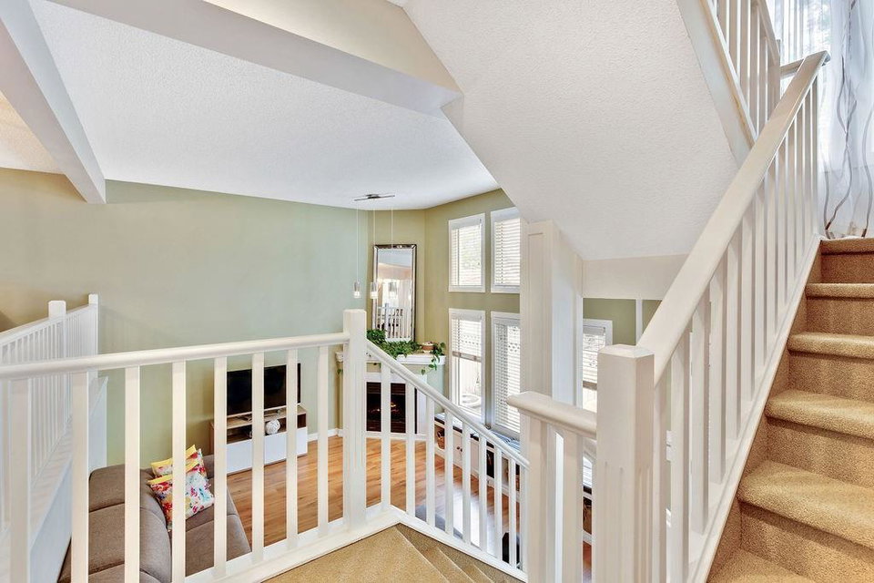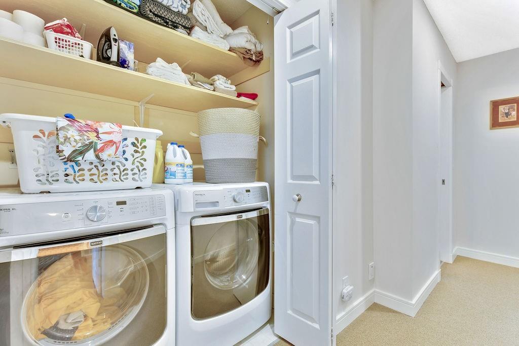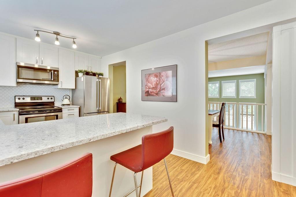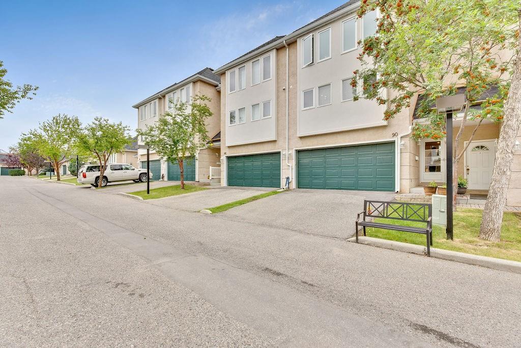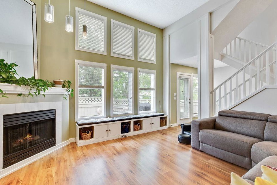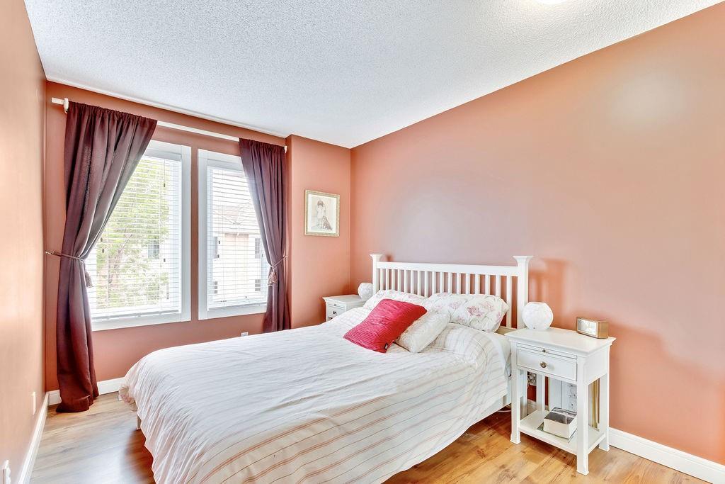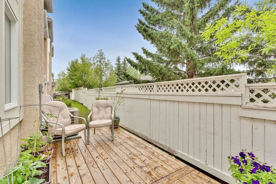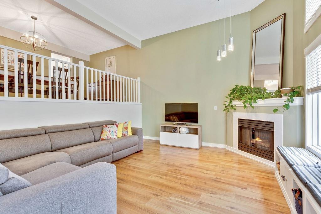 Beautiful executive townhouse in MINT condition! Main floor features open vaulted ceilings in the living room with floor to ceiling windows for optimal sunlight, gas burning fireplace, wonderful east facing private patio, large sized dining room, newly renovated kitchen with quartz countertops, stainless steel appliances, white cabinets, pantry and eating bar. Upper floor boasts three generous bedrooms, laundry area, 3pc bath and full ensuite off the master bedroom that can accommodate king sized bed. Basement is fully finished that includes storage room and rec/games room. Note: Low condo fee of $278, central air conditioning, newer paint, newer flooring & double insulated attached garage. This desirable complex is just steps to Fish Creek Provincial Park with offers stunning mountain views, cycling, walking paths and picnic areas. Walking distances to all levels of schools, shopping, public transit, LRT, fitness center & outdoor hockey rinks. Home shows extremely well with pride of ownership!
