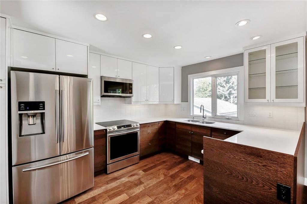 This beautifully updated & renovated home is located on a great street in desirable Southwood. The main floor is outstanding with a completely renovated kitchen with quartz counter tops, new modern cabinets, stainless steel appliances, gorgeous hardwood, large dining area, living room with a wood burning fireplace, The upper level has 3 generous bedrooms and two completely renovated spa inspired bathrooms. The entrance level features a main floor office, tiled entrance, flex room/ family room that’s perfect for a children’s play room. The lower level includes a large rec room with a 2nd wood burning fireplace, another fully renovated 4th bathroom, 2nd den and storage area with laundry. Completing this home is the massive 715 m2 lot with private backyard patio, all new fencing and sod, lane access with RV parking, and a heated oversized double garage w/220V. This well cared for property has newer windows, shingles, furnace, new hot water tank, updated plumbing, electrical & so much more.